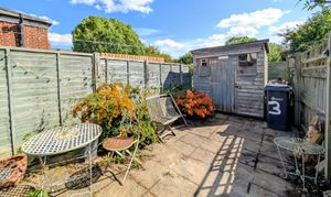 Upstairs is a double bedroom with built-in storage and a shower room ready for updating. Outside, the property enjoys a private enclosed garden (detached from the cottage) with paving, mature shrubs, a shed and the bonus of off street parking for one.