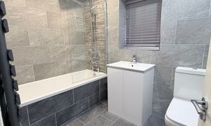 First Floor: Two well-proportioned bedrooms, including a generous master bedroom. The family bathroom is fully tiled and fitted with a modern three-piece suite and shower overhead.