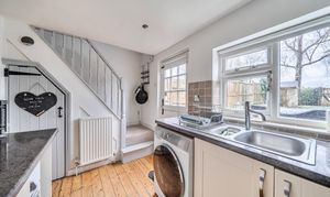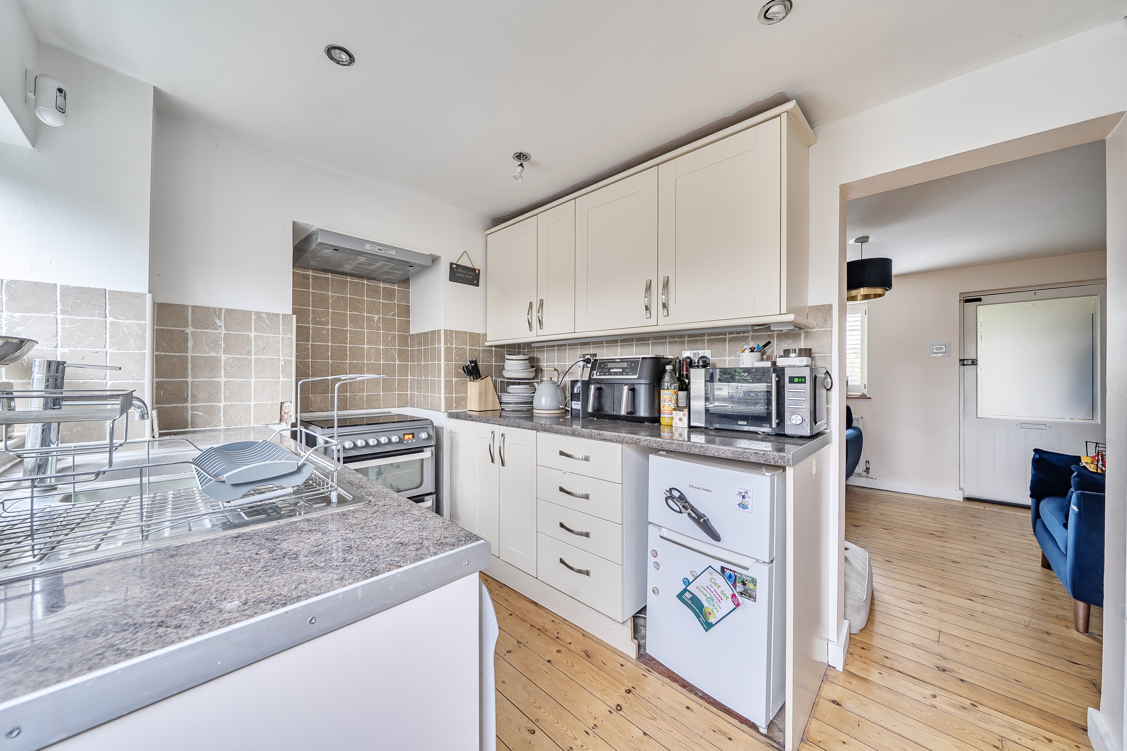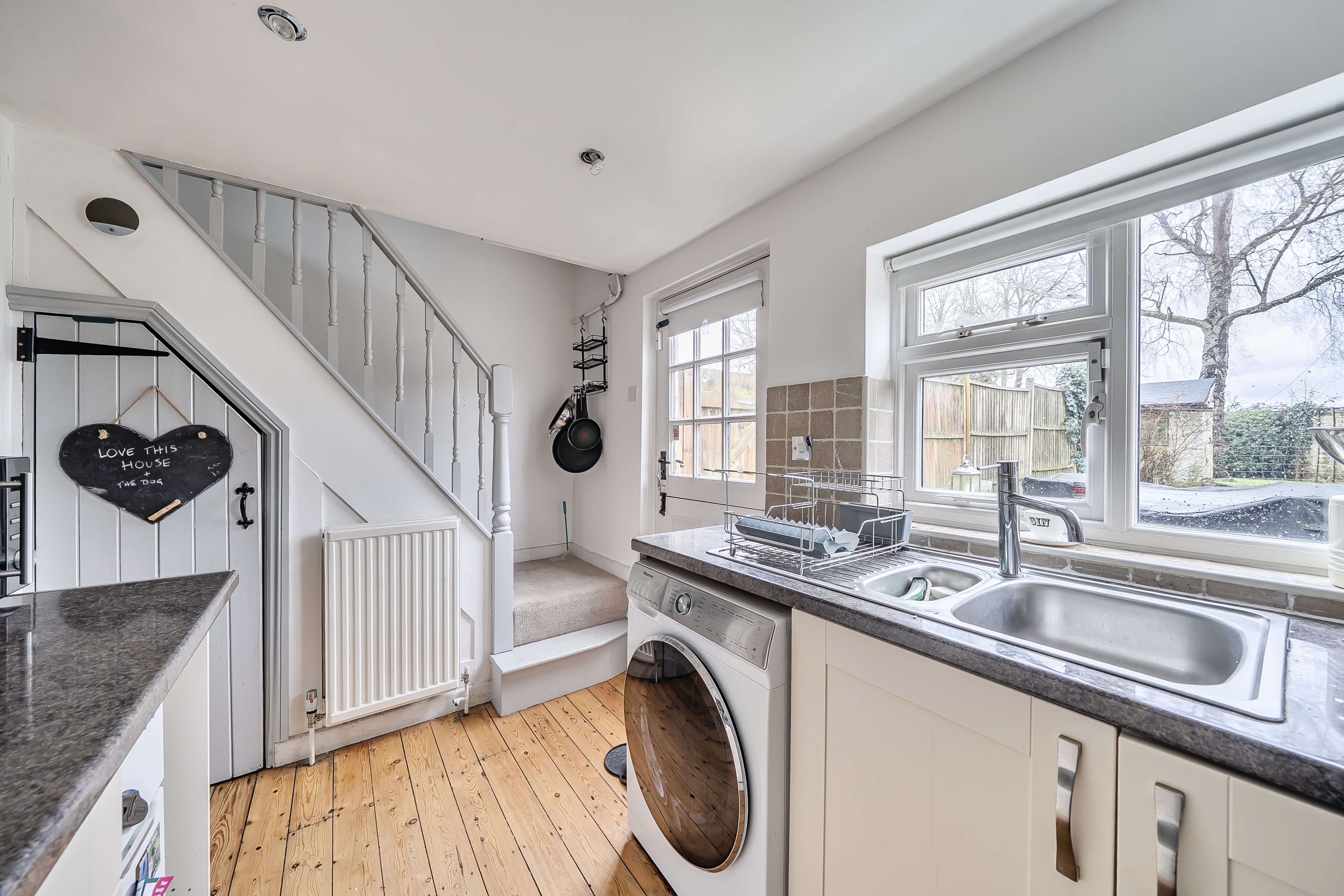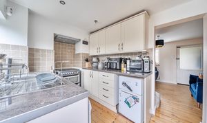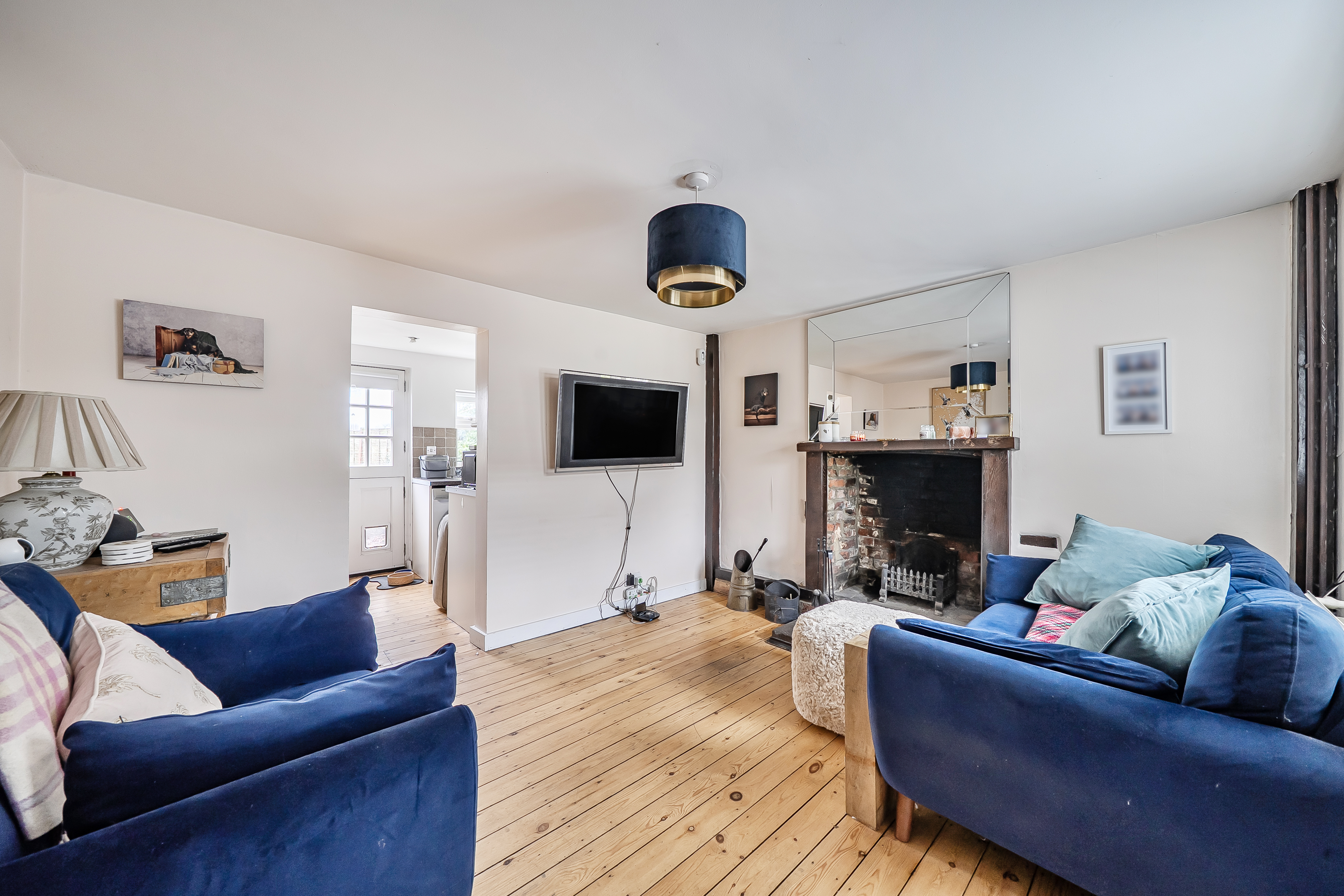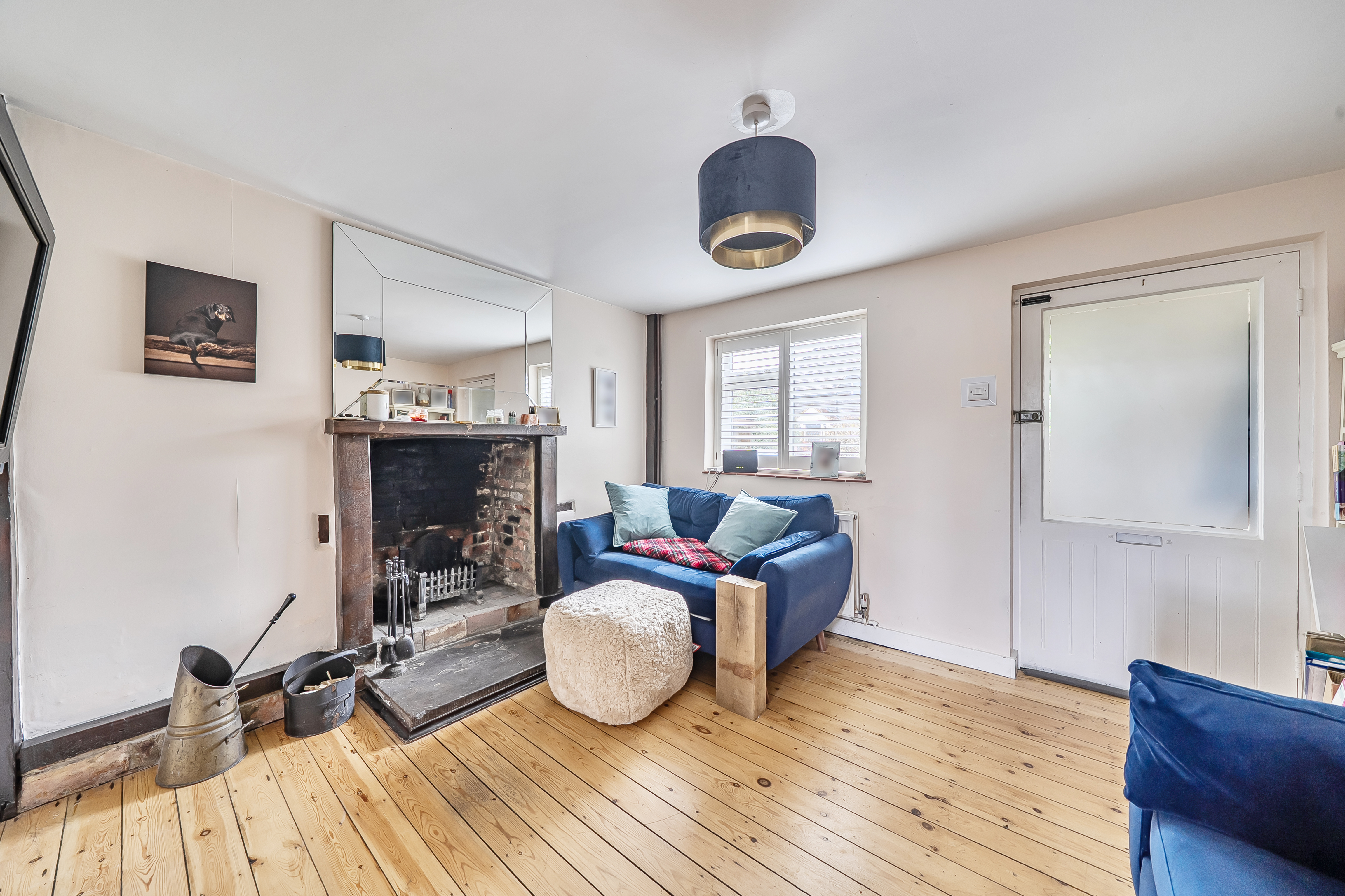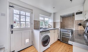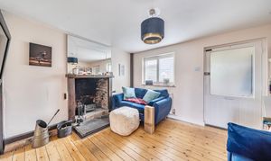 The entrance porch leads into a cosy reception room with an open fireplace, creating a warm and inviting atmosphere. The fitted kitchen has space for free standing white goods and direct access through a stable door out into the rear garden.