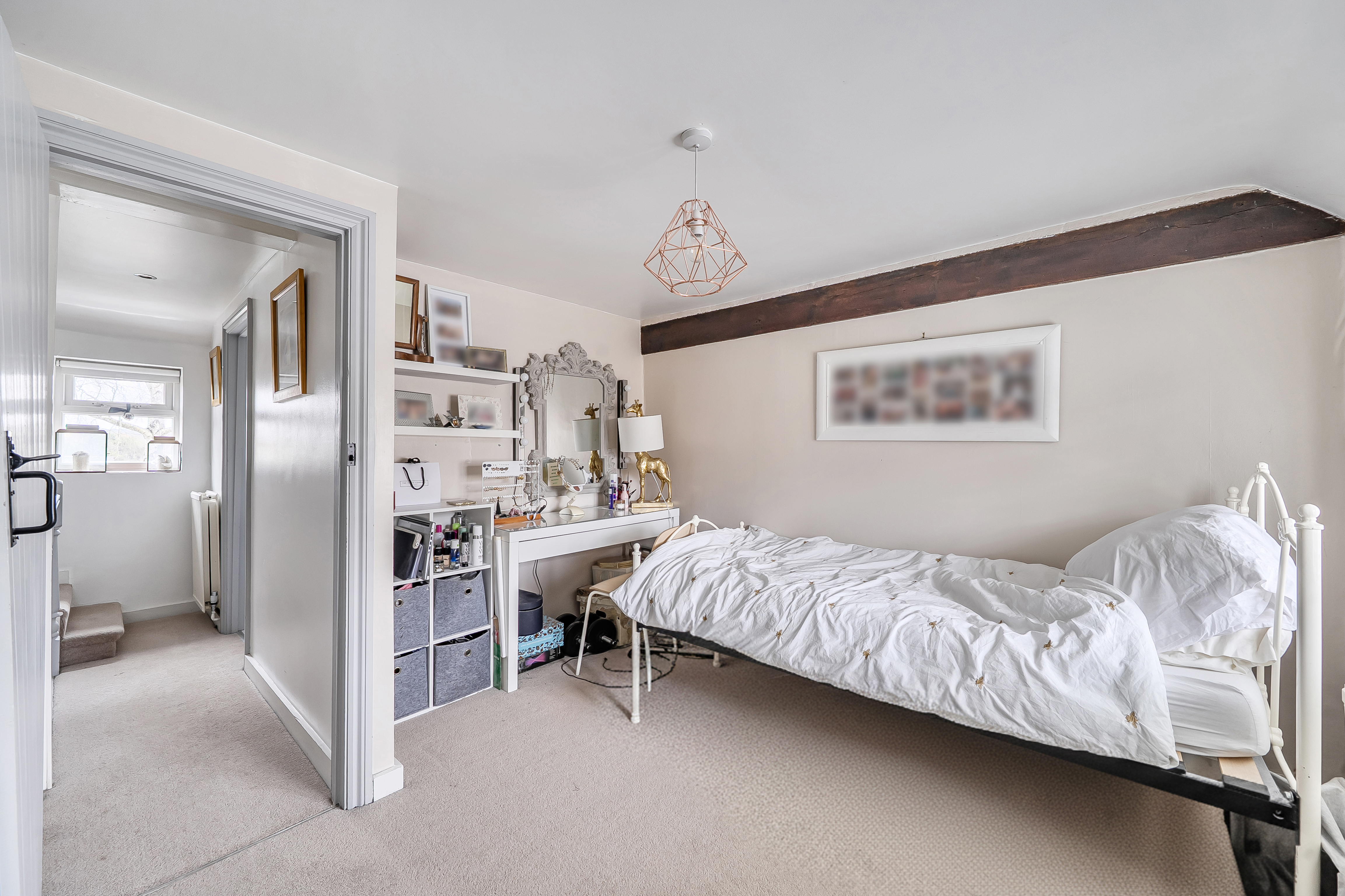 Stairs lead to a bonus room which is currently being used as a bedroom. The room is double aspect with dormer windows to the front and rear providing plenty of natural light.