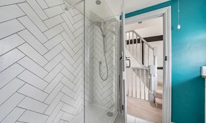 On the first floor is a charming good-sized bedroom with fitted wardrobes and a family shower room which has been recently updated.