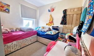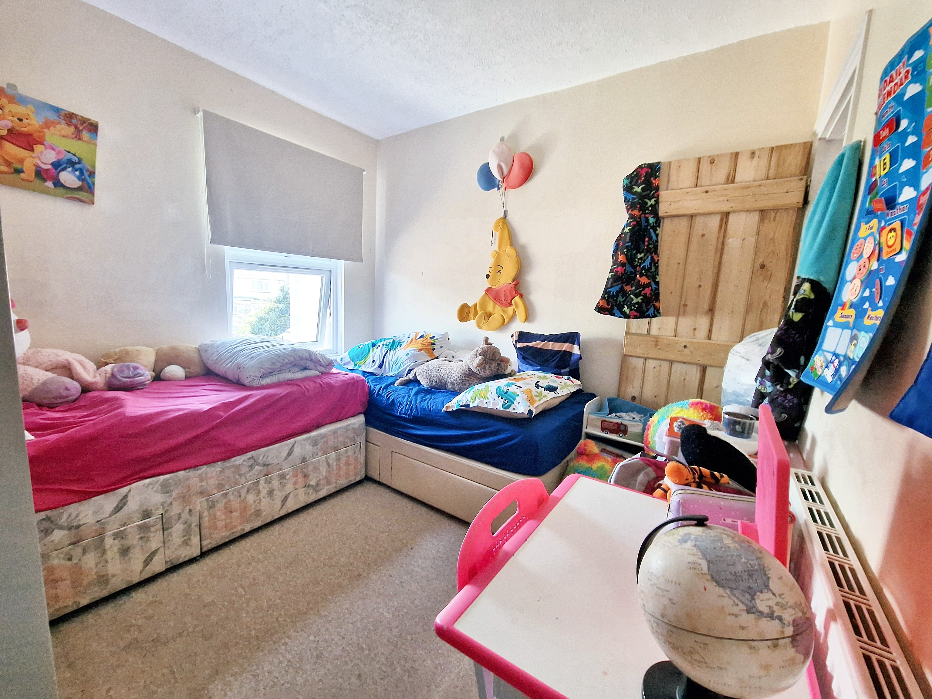 Bedroom 2: with carpet to floor, cupboard over stairs, 2.92m x 3.37m at max