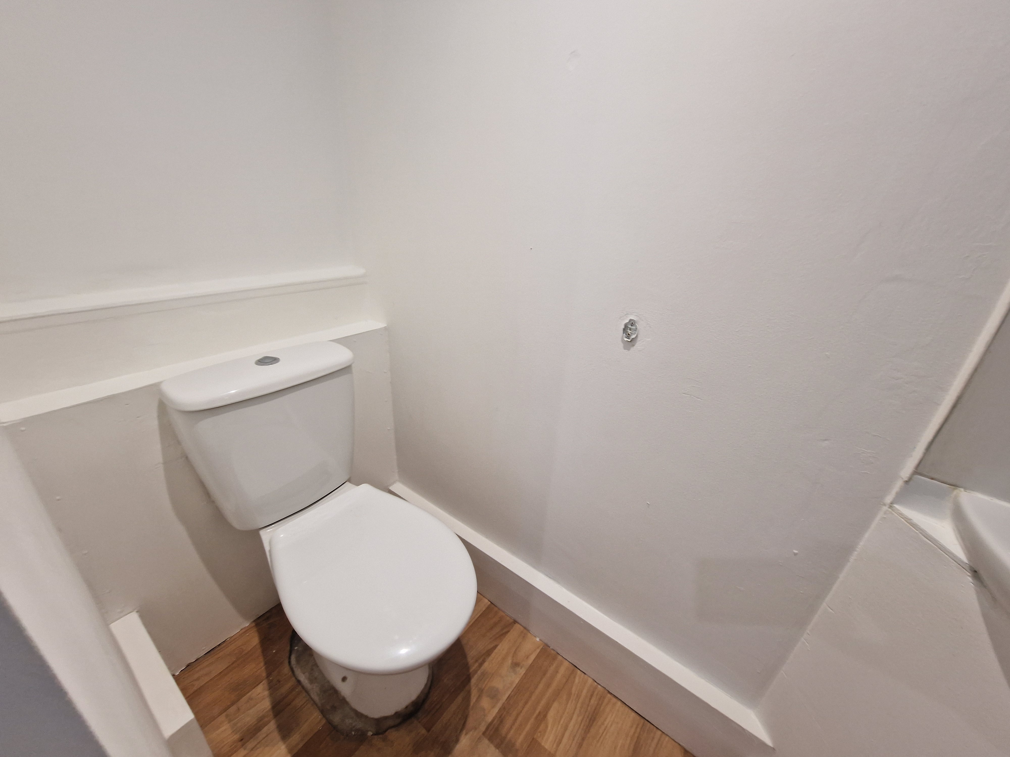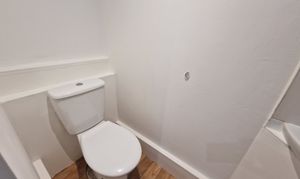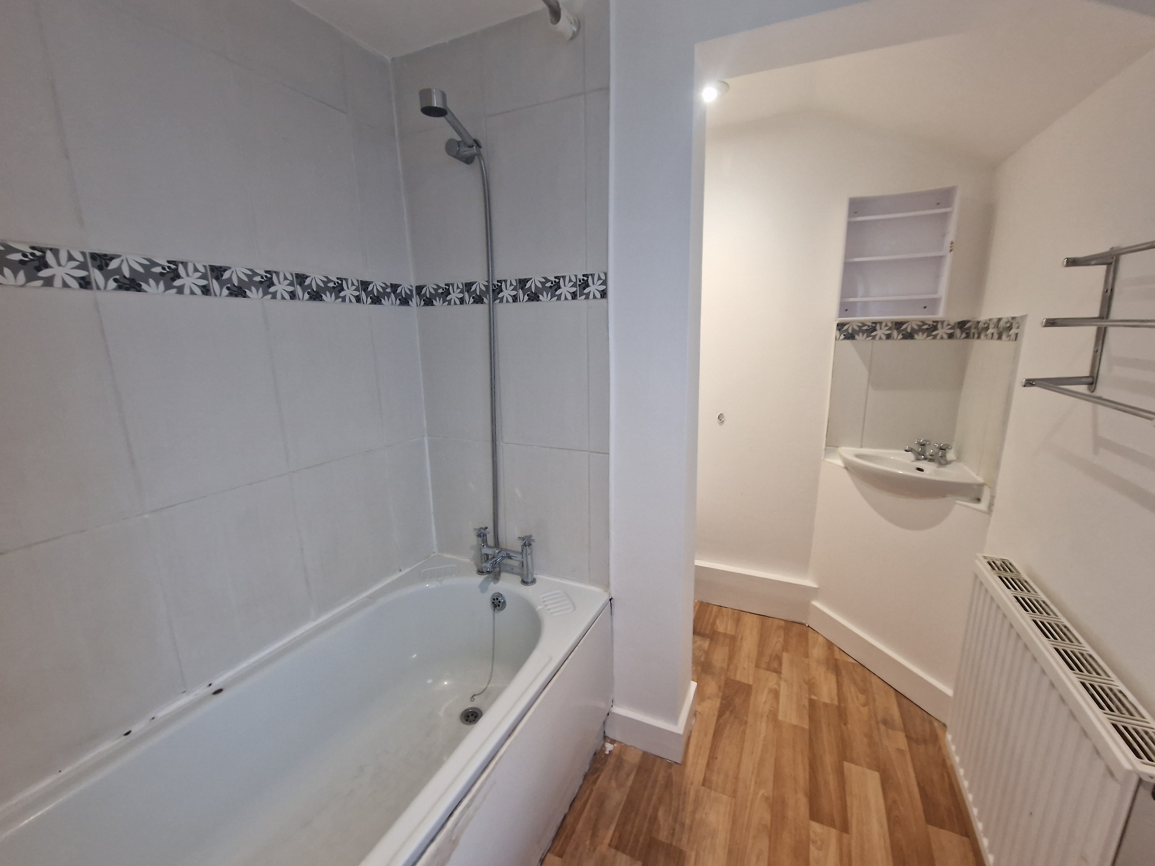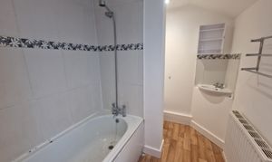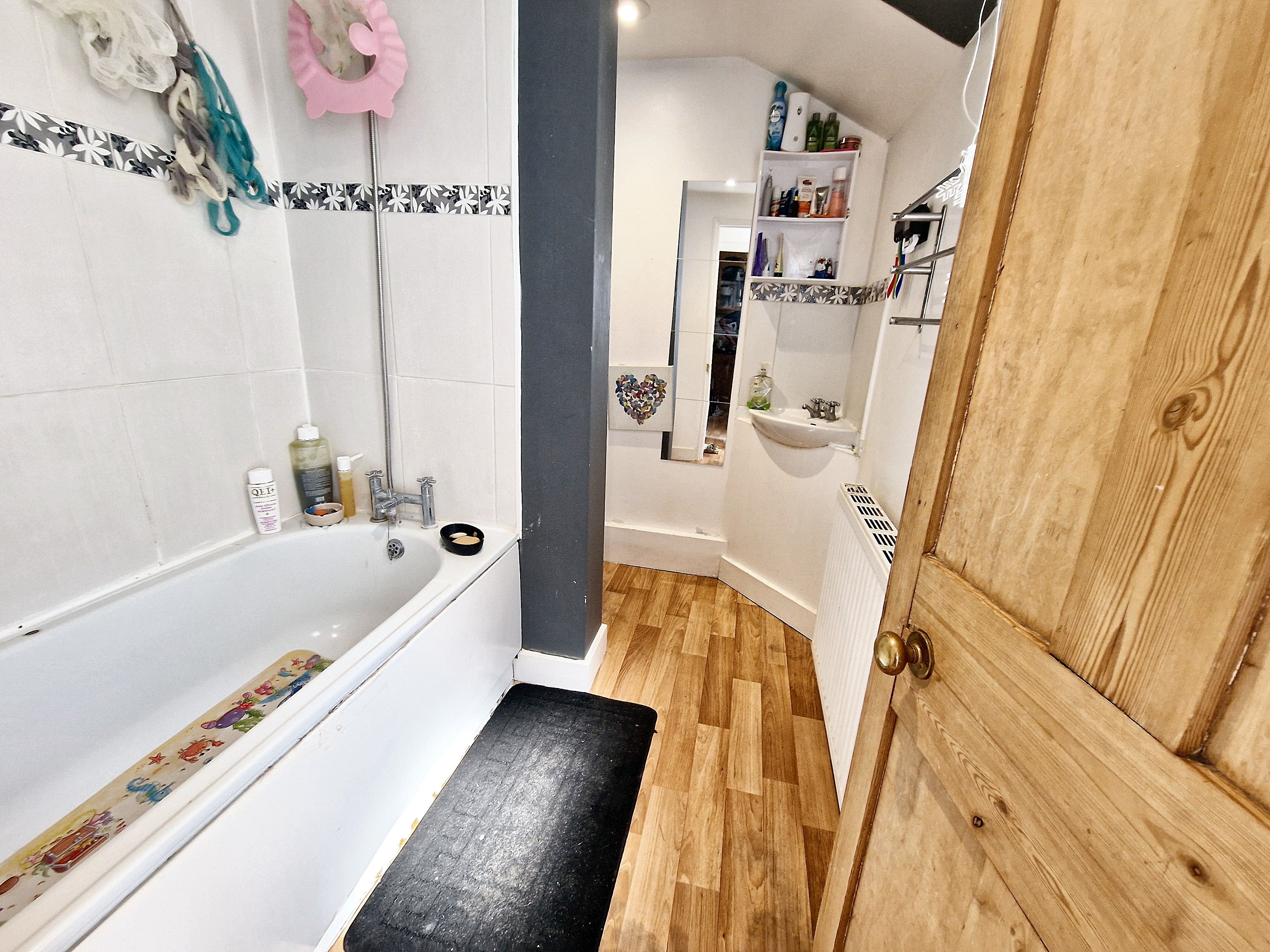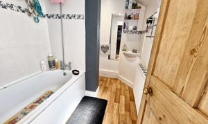Bathroom: with white sanitary suite with shower over bath, vinyl to floor, part-tiled walls 2.40m x 1.70m