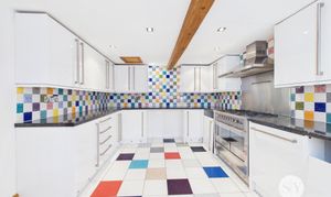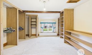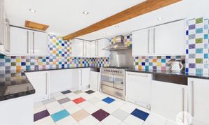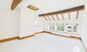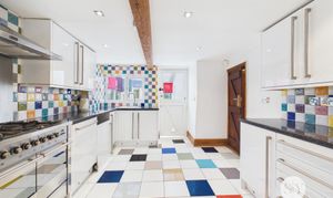 The interior accommodation is meticulously designed to meet the demands of modern living while retaining its charming heritage. Both reception rooms feature exposed wooden beams, period fireplaces, and large windows that bathe the spaces in natural light - perfect for cosy evenings or lively gatherings. The contemporary kitchen showcases modern white cabinetry, space for integrated appliances, a vibrant tiled backsplash, and a spacious layout ideal for both every-day dining and entertaining. A bright conservatory with colourful blinds and French doors seamlessly connects the indoors with the private garden, offering a setting for some outdoor furniture or a small parking space. Upstairs, three well-proportioned bedrooms provide ample built-in storage, garden views, and continued period detailing, while two stylish bathrooms boast modern fixtures, walk-in showers, a luxurious clawfoot freestanding bath, and elegant tiling.