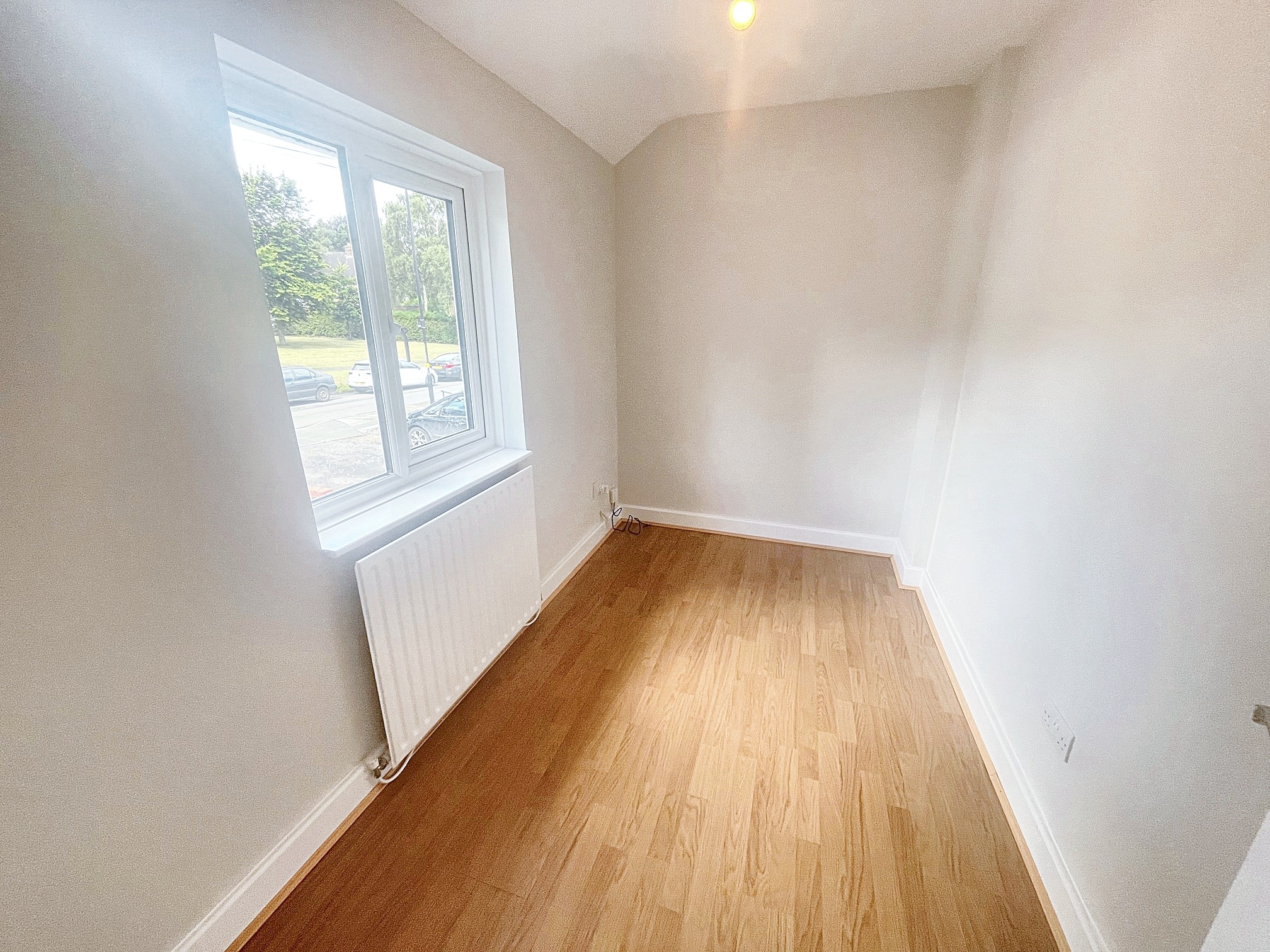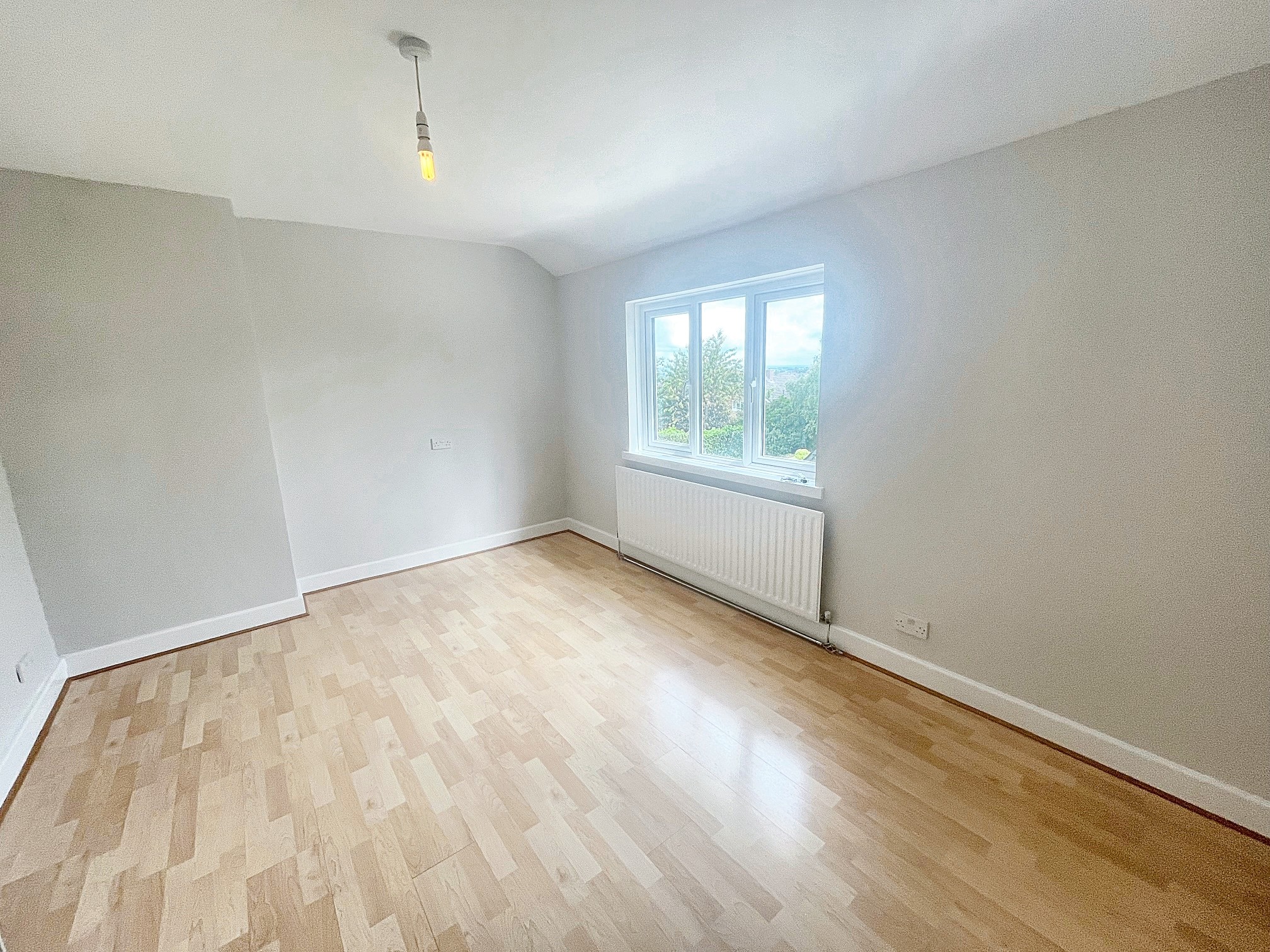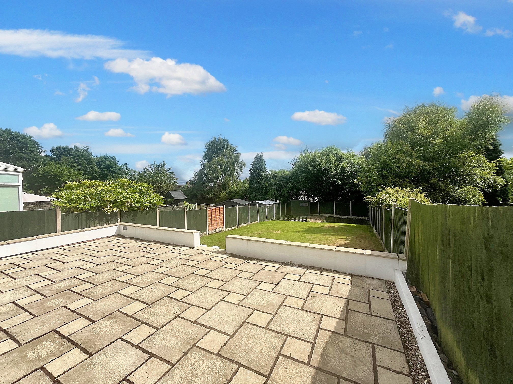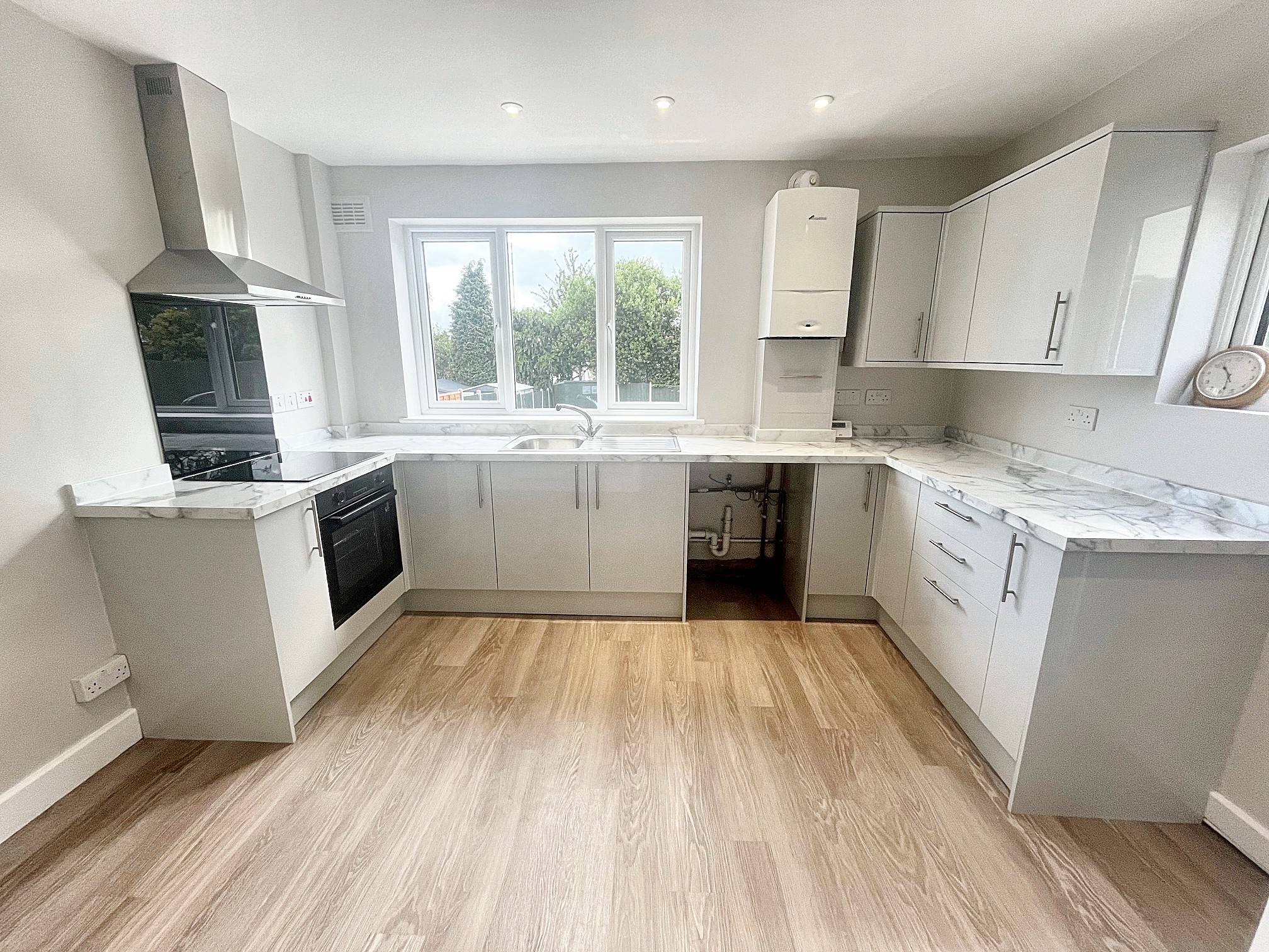 Entrance hall with staircase, spacious reception room, modern fitted kitchen with integrated oven and hob, bathroom, first floor landing, three bedrooms - two doubles, front garden incorporating car parking space for 2 cars, large rear garden with patio area.
