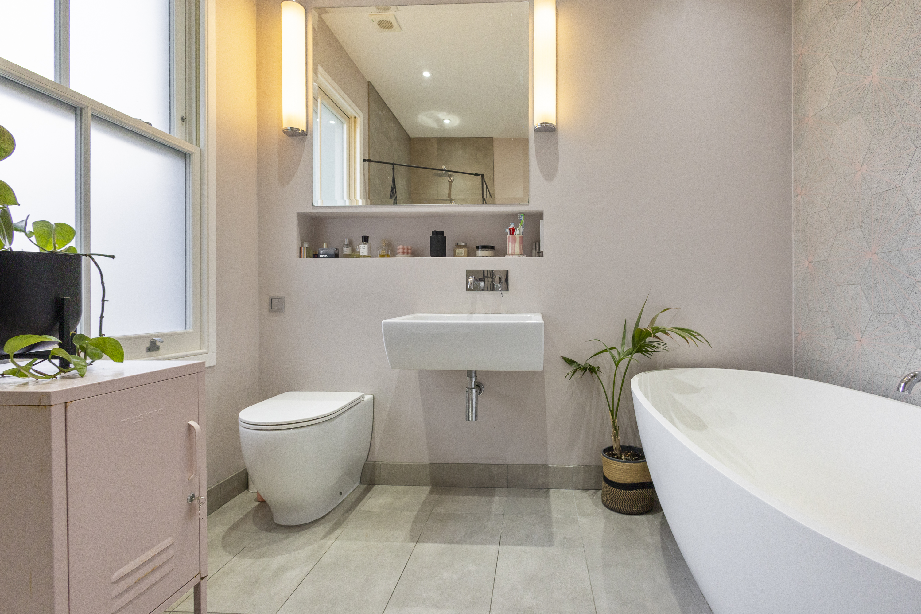 Luxury bathrooms featuring freestanding tub, underfloor heating, and flawless finishes