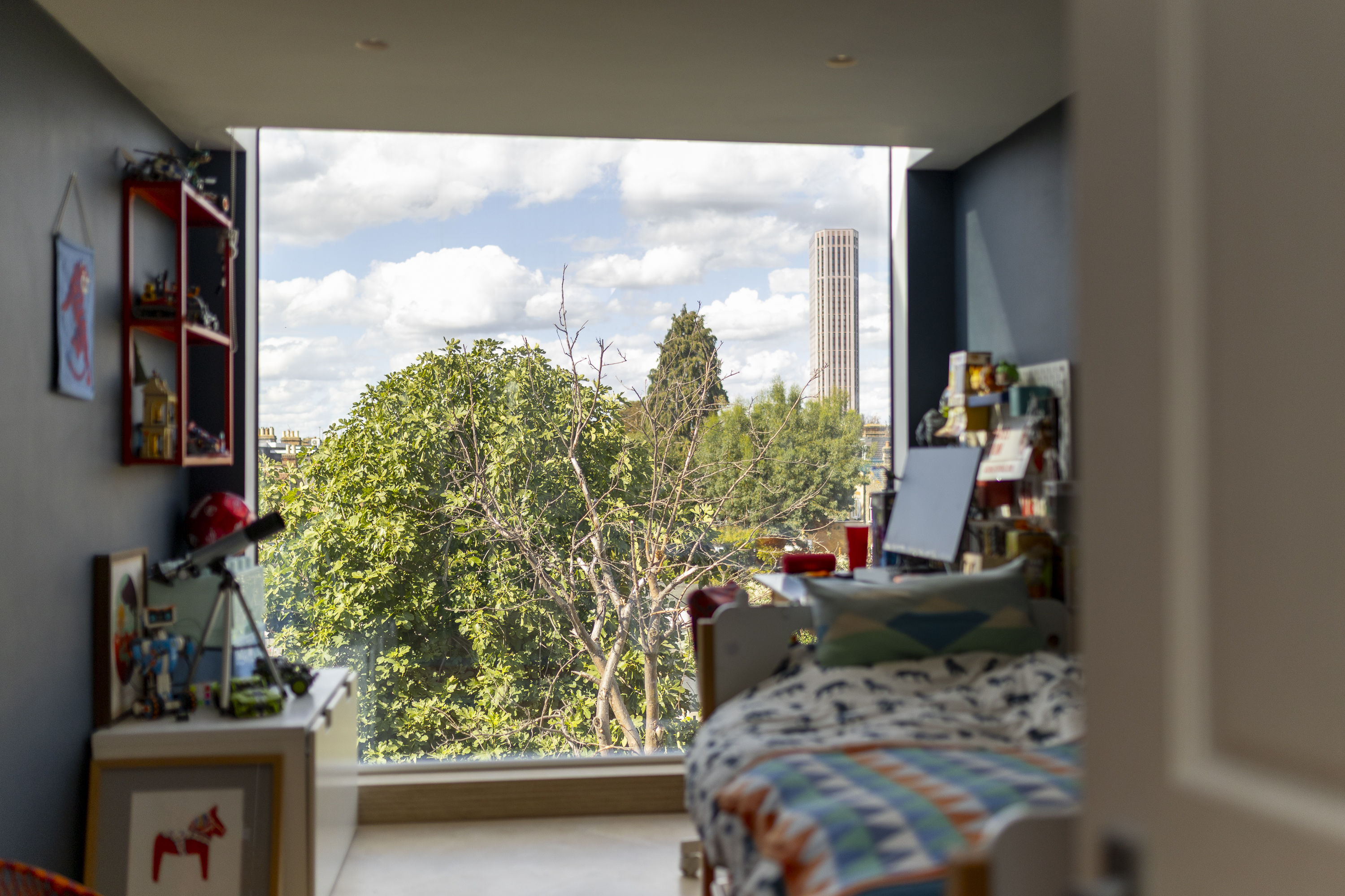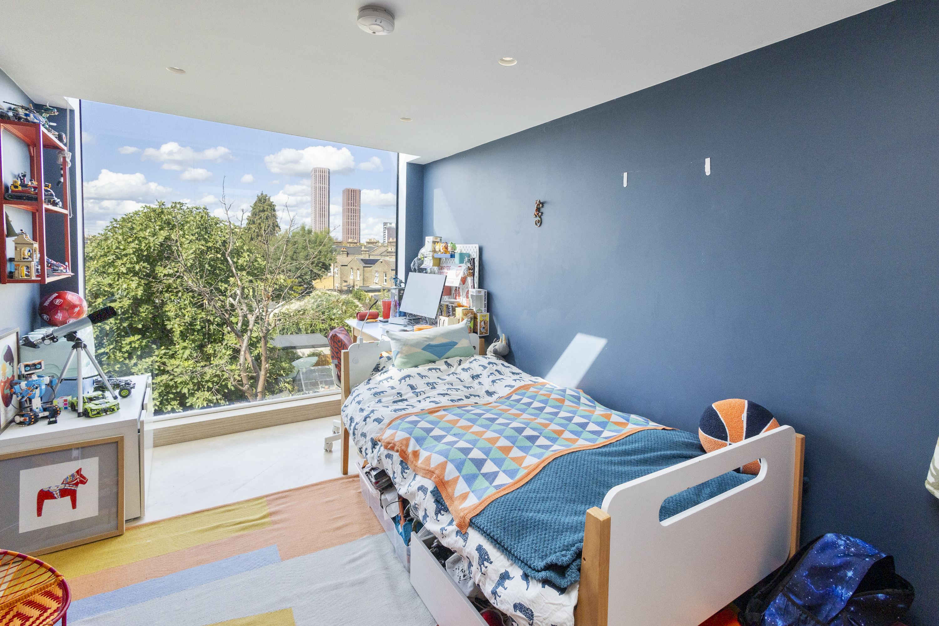 - Four generous bedrooms including a versatile architecturally striking top floor