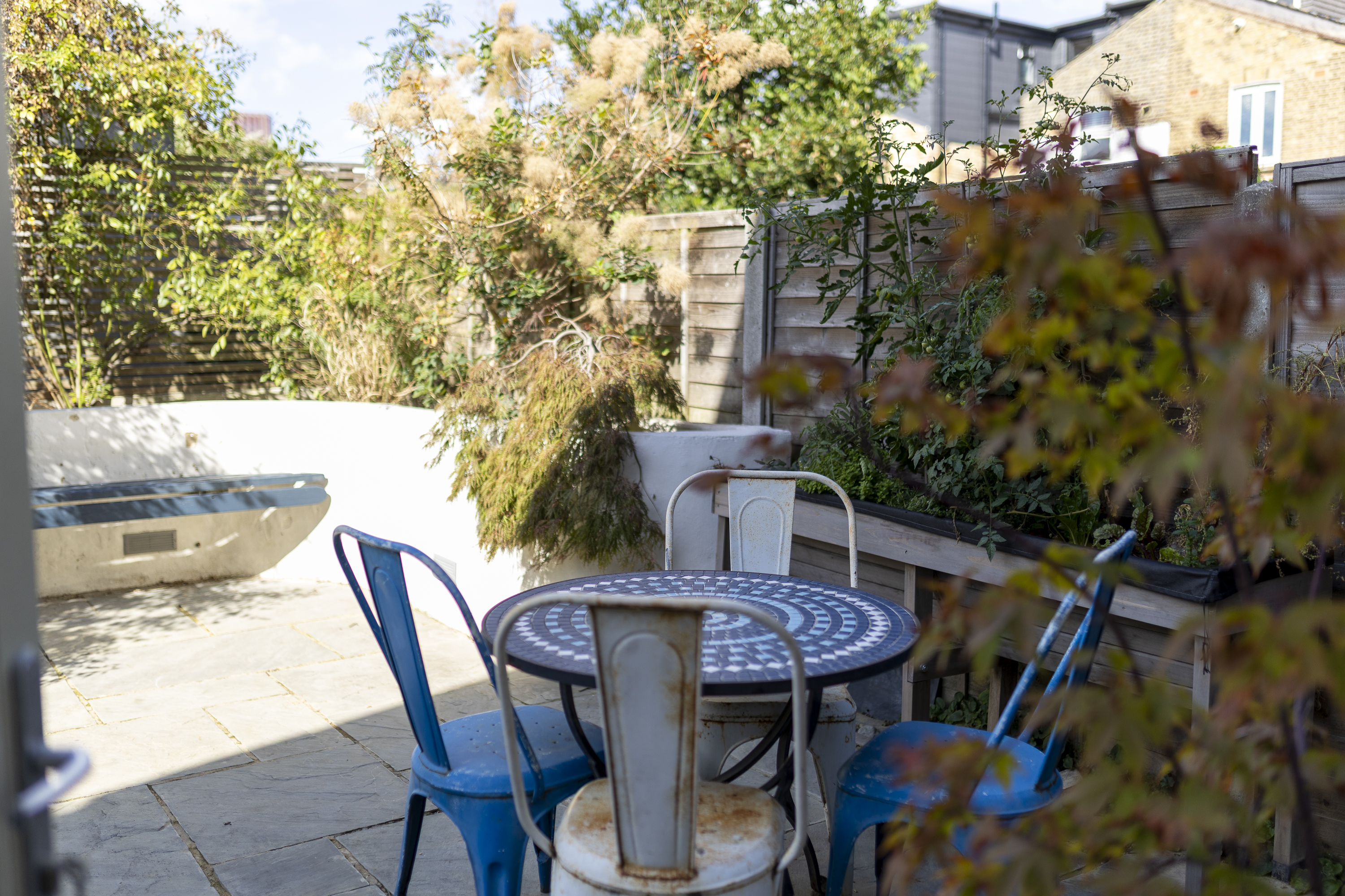 Outside, a 40ft landscaped garden offers integrated lighting, raised flowerbeds, and elegant Venetian-style fencing – the perfect setting for entertaining or relaxing.
