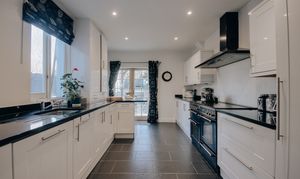 - Striking open plan kitchen and dining space with bespoke cabinetry and integrated appliances.