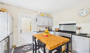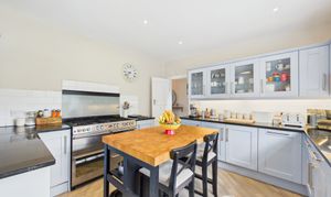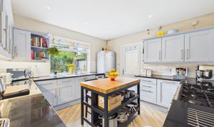 This good sized kitchen offers space for a central breakfast table and benefits from direct access to the garden, ample storage and work surface space and room for all expected appliances.