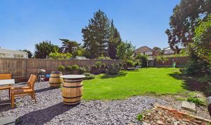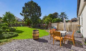 Measuring approx 82 x 34 ft, this easy to maintain garden is south facing and offers both lawned and gravelled areas, side access and a shed.