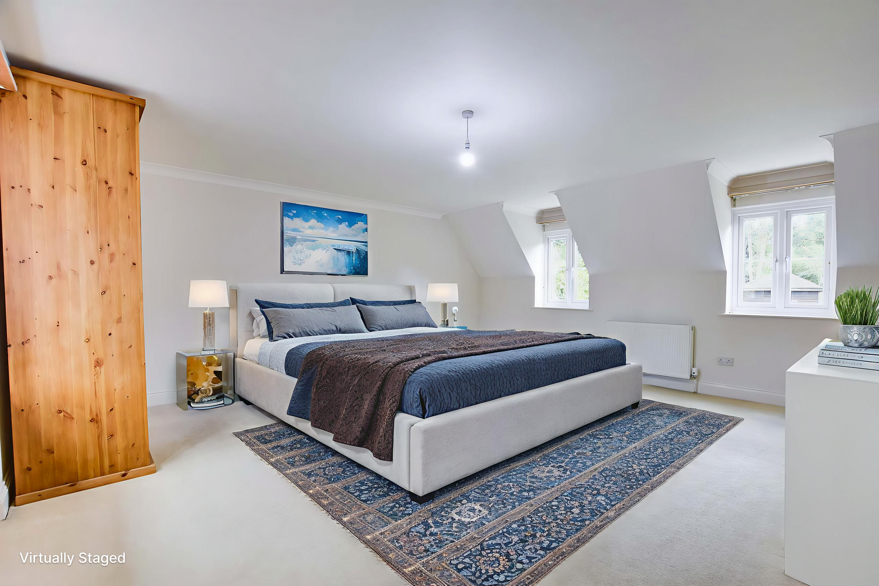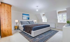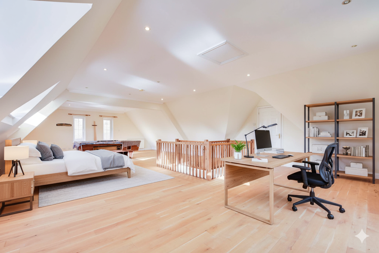 Upstairs, the principal bedroom offers a walk-in wardrobe and sleek en-suite. A second bedroom also boasts an en-suite, with four additional bedrooms served by a contemporary family bathroom featuring both a bathtub and walk-in shower. The top floor hosts a versatile loft/recreational room, perfect for a games room, studio, or additional living space alongside ample storage.