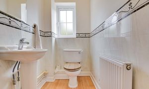 With a double-glazed window to the side elevation, bamboo flooring, WC, wash hand basin, part tiled walls, radiator.