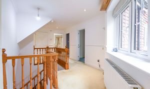 With a double-glazed window to the front elevation, stairs to the second floor, storage cupboard, radiator.