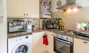 The modern kitchen comes fully equipped with integrated appliances, sleek cabinetry, ample countertop space, and a stylish tiled backsplash that will appeal to keen cooks. Both bedrooms are generously proportioned, benefiting from built-in storage solutions, soft carpeting, and plenty of natural light. The contemporary bathroom features a walk-in shower, modern fixtures, and ample storage for every-day convenience. Residents enjoy the added advantage of off-road parking and access to beautifully maintained communal gardens, mature trees, and landscaped outdoor areas that provide a tranquil retreat within the development. This apartment offers an exceptional balance of style, functionality, and comfort, making it an attractive opportunity for buyers seeking a modern urban home.