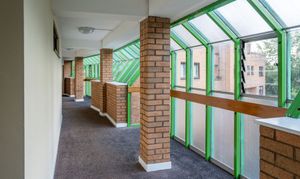 This stylish two-bedroom, one-bathroom apartment is set within a modern development and showcases a host of desirable features designed for comfortable, contemporary living. The property welcomes you with a secure entry system and an attractive brick façade surrounded by landscaped greenery. Inside, the spacious open plan living area is brightened by large windows and sliding glass doors, creating an airy atmosphere and offering seamless access to a private balcony for indoor-outdoor enjoyment. The living space easily accommodates both a comfortable seating area and a dedicated dining zone, making it ideal for both relaxation and entertaining.