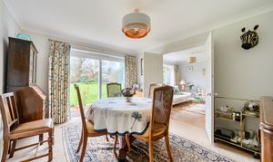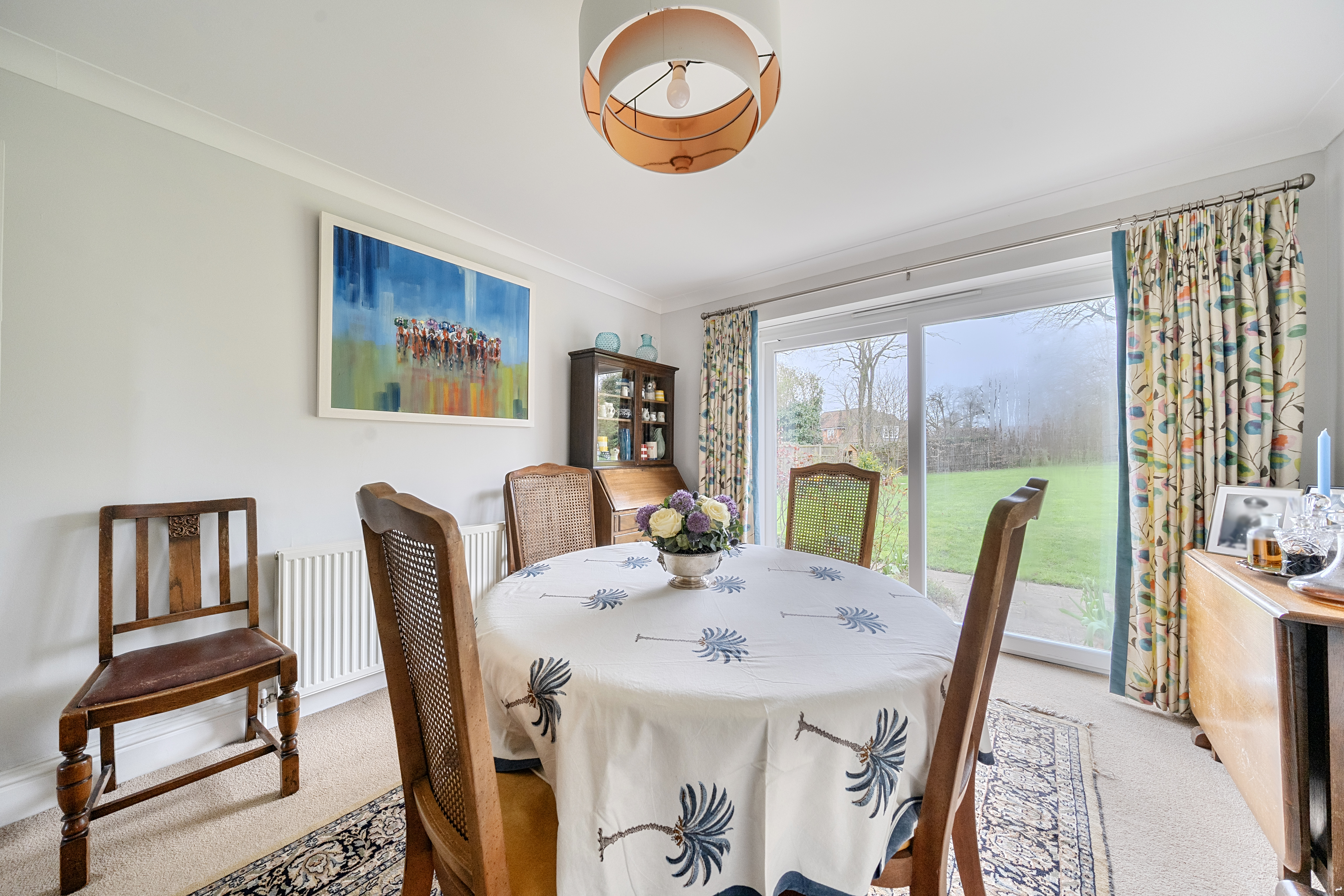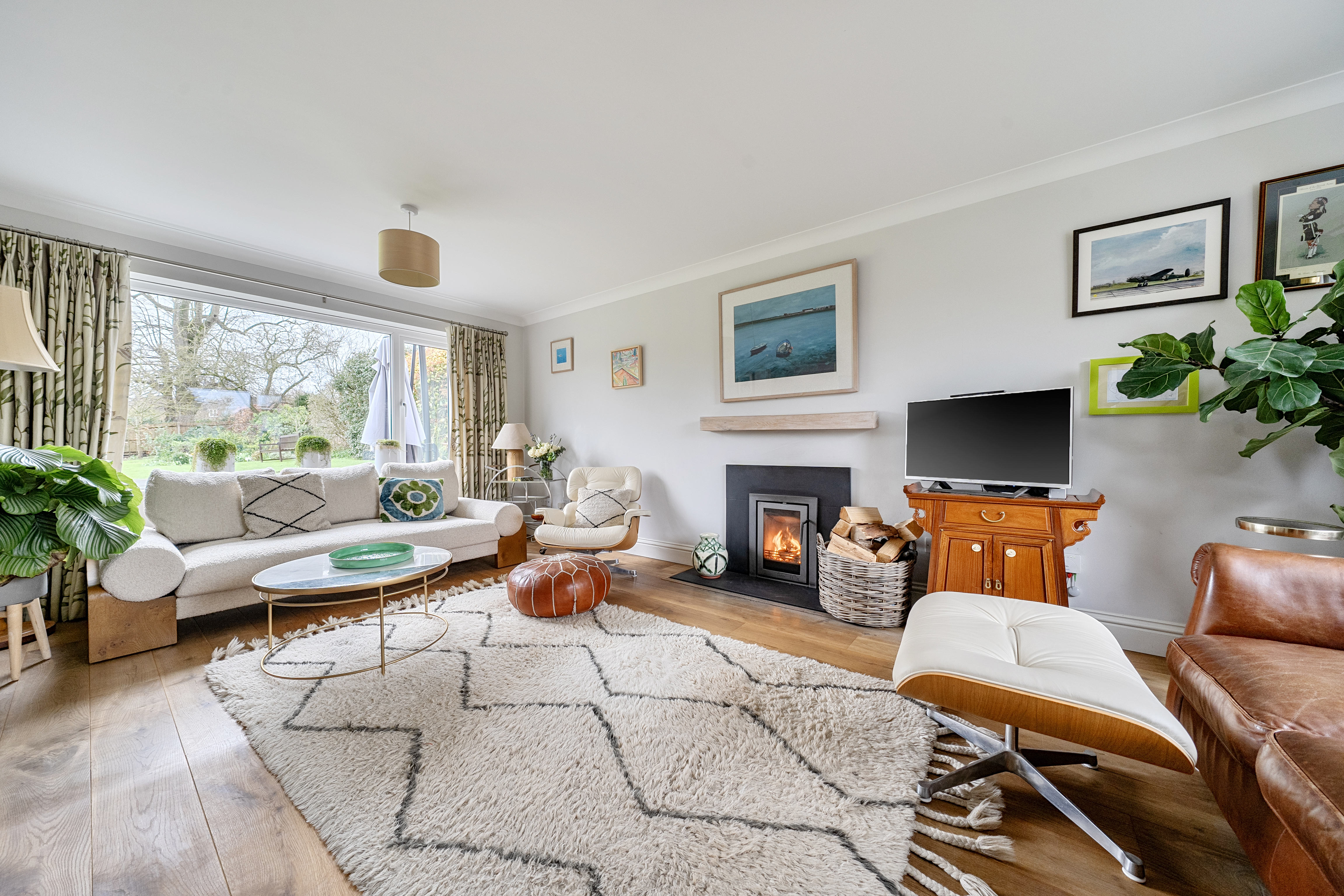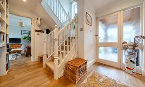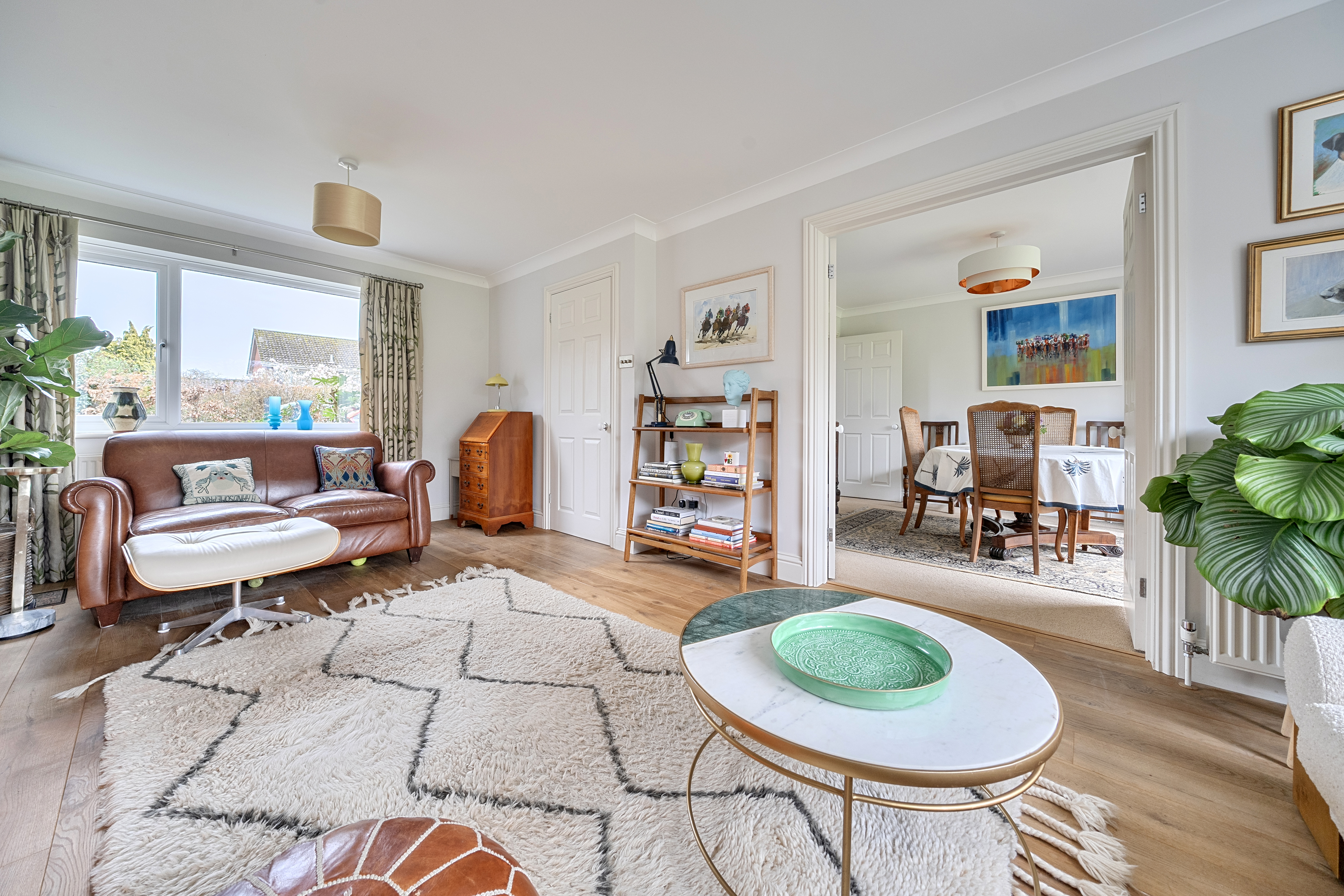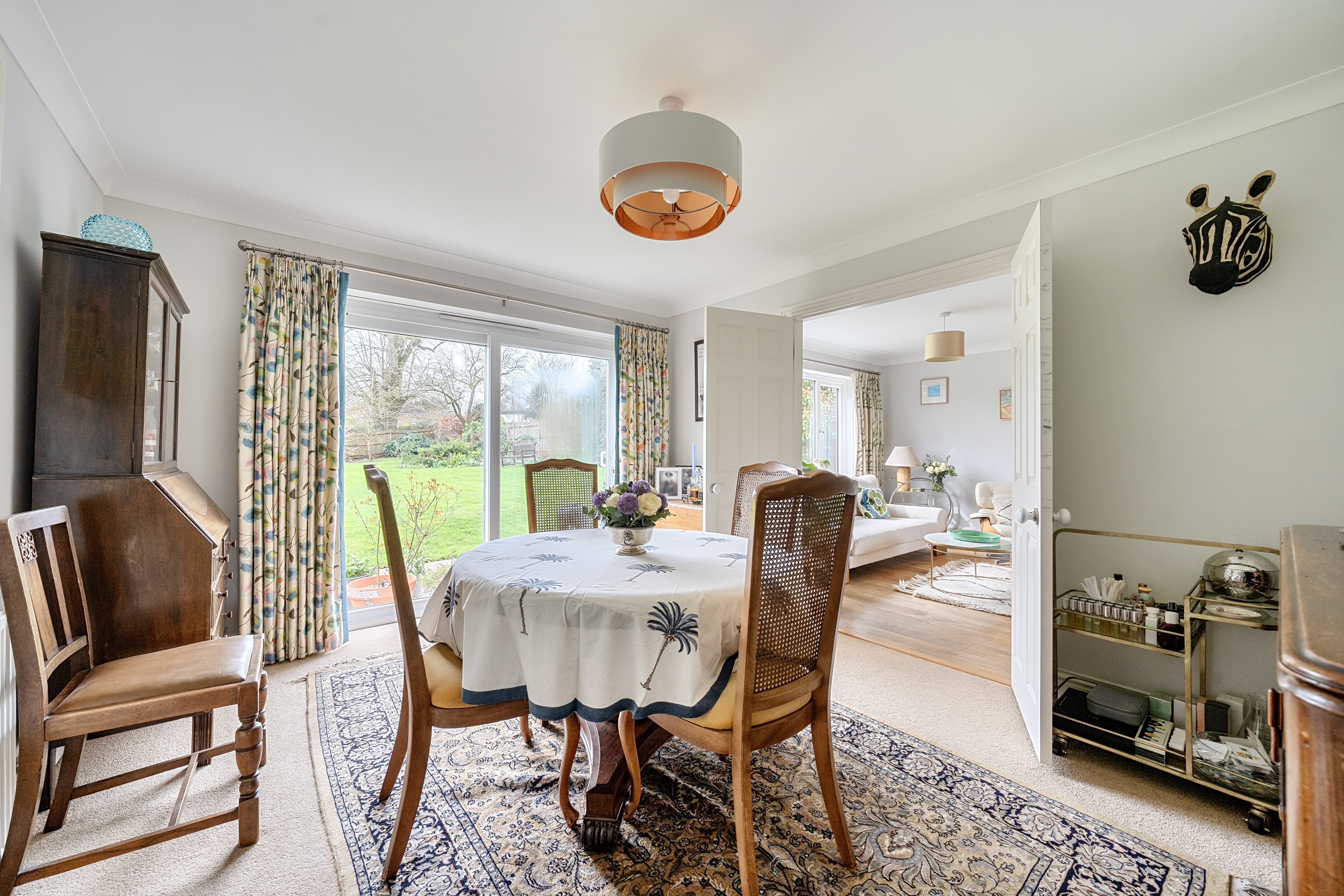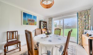 A welcoming entrance hall provides access to the downstairs cloakroom, sitting room and separate dining room. The light and airy sitting room features a charming log burner and opens through to the dining room, creating an ideal space for entertaining. Patio doors from the dining room lead out to the rear garden. The kitchen overlooks the garden and is fitted with a range of units, integrated appliances and additional space for freestanding appliances. A further reception room offers a versatile space, ideal for home working or a fifth bedroom.