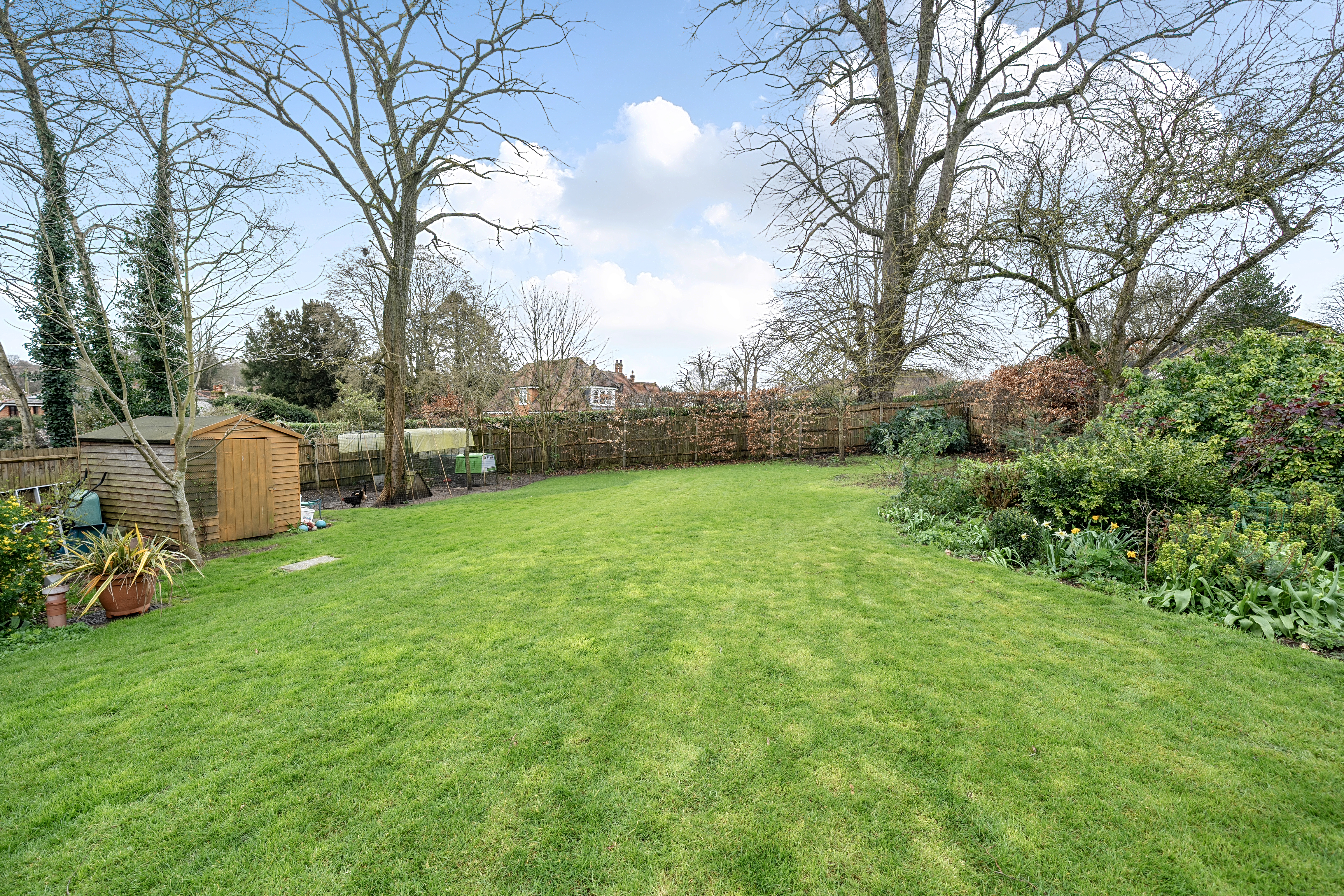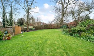 To the rear, is a generous, well-presented, private south-facing garden, mainly laid to lawn, complemented by established flower beds, shrubs, and mature trees. A patio area provides an ideal space for al fresco dining. There is convenient side access from the garden to the front of the property.