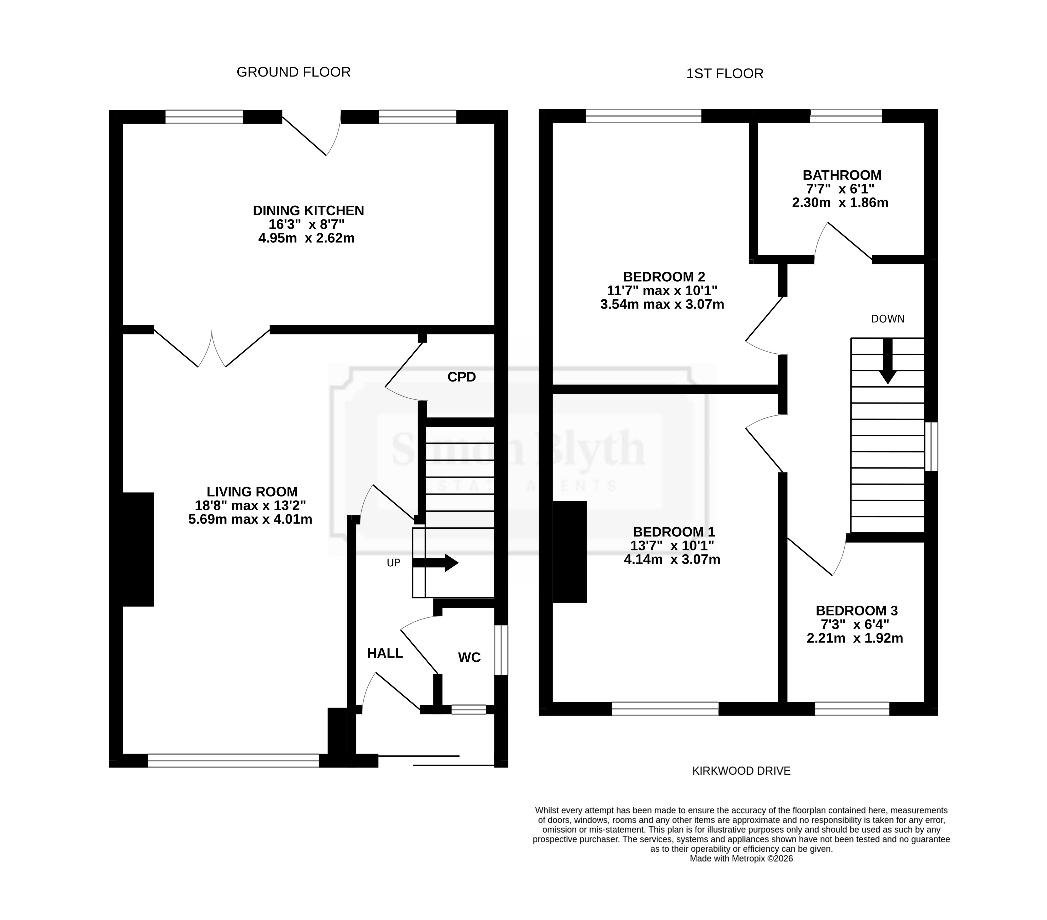 To the rear of the property and accessed from Birkdale Avenue there is a garage block of four with the property owning the garage immediately to the rear of the house with a black up and over door. Garage Measurements- 17'8" x 8'5" With power and light.