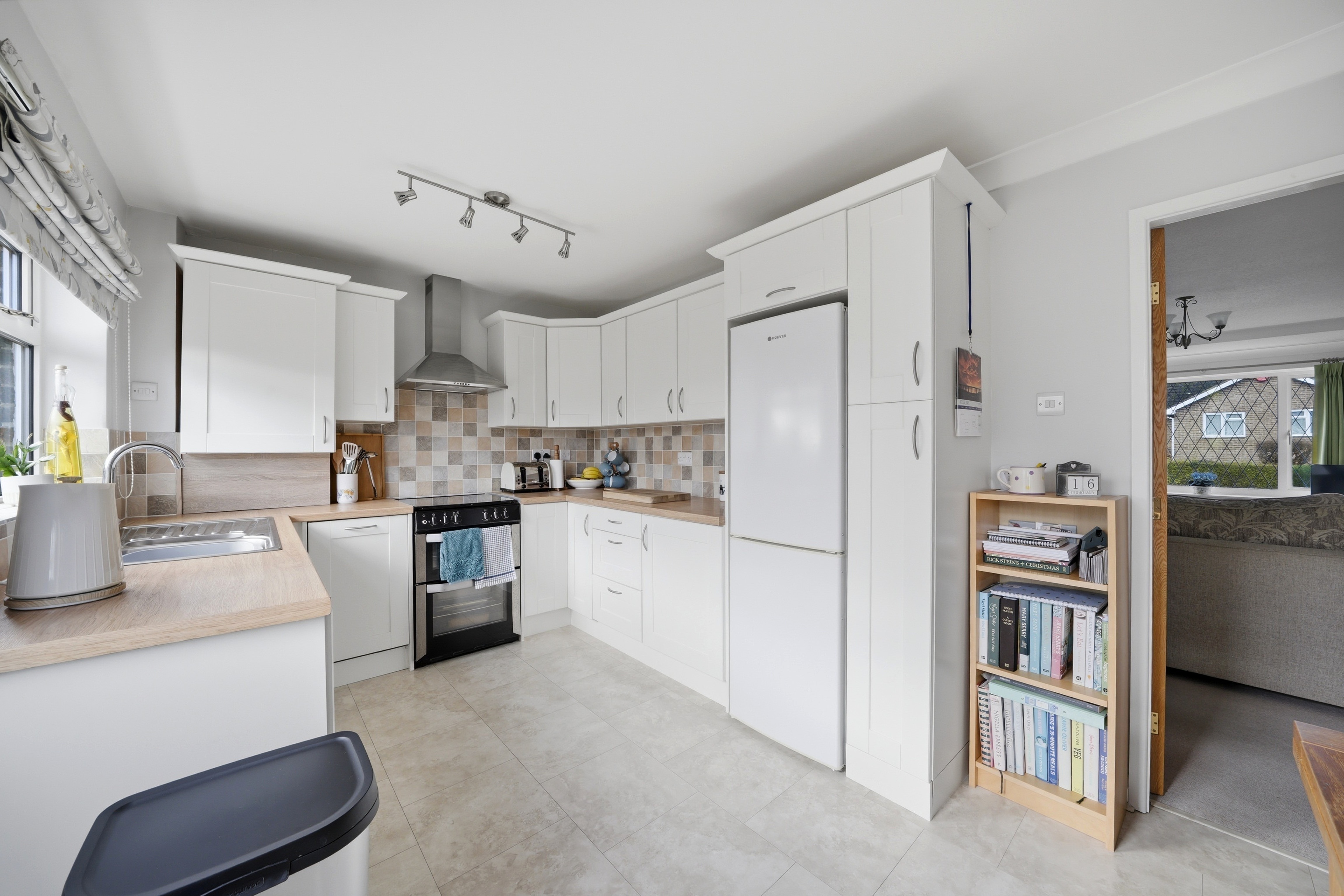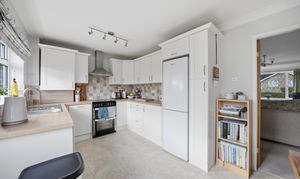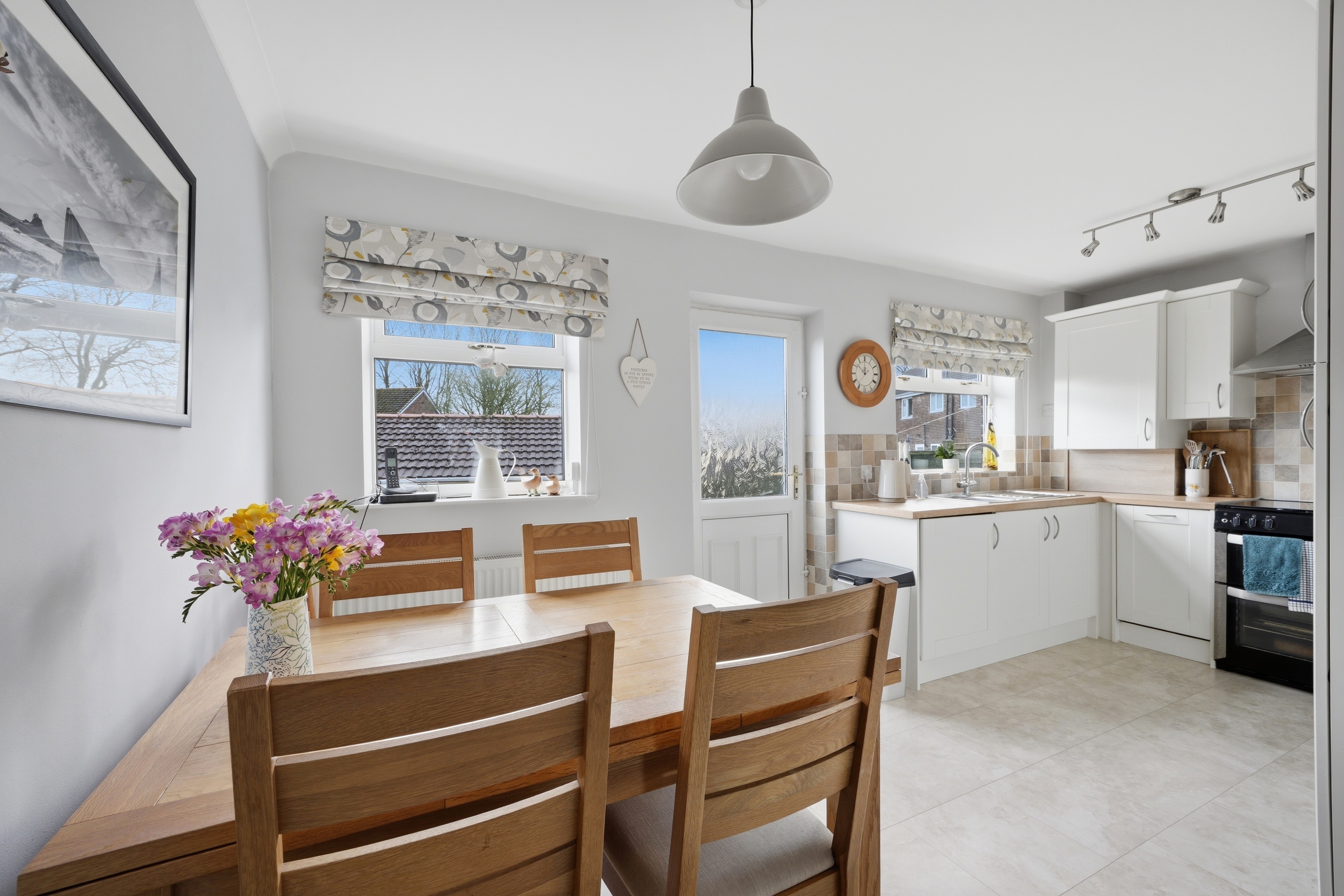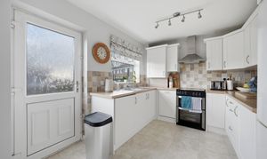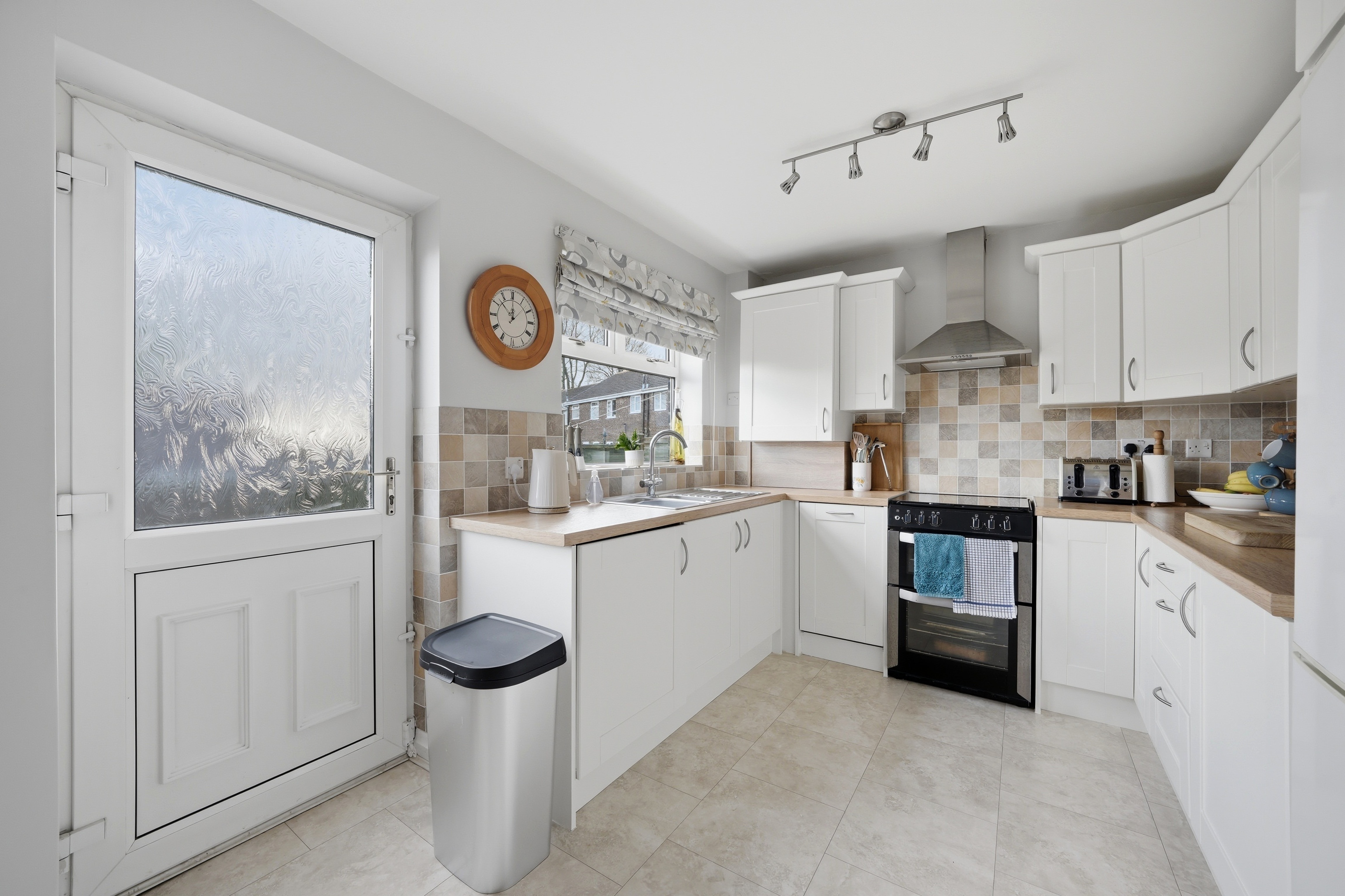 This is situated to the rear of the property and has two uPVC double glazed windows together with a central frosted uPVC double glazed door all of which provide an abundance of natural light. There are two ceiling light points, click laminate tile effect flooring, central heating radiator and fitted with a range of ivory shaker style base and wall cupboards, drawers and pan drawers, contrasting overlying timber effect worktops with tiled splashbacks, inset one and half bowl single drainer stainless steel sink with chrome mixer tap, cupboard housing a Baxi gas fired combination central heating boiler, housing for fridge freezer, integrated washing machine, integrated slim line dishwasher and with a free standing cooker with four ring gas hob and electric double oven with stainless steel extractor hood over.