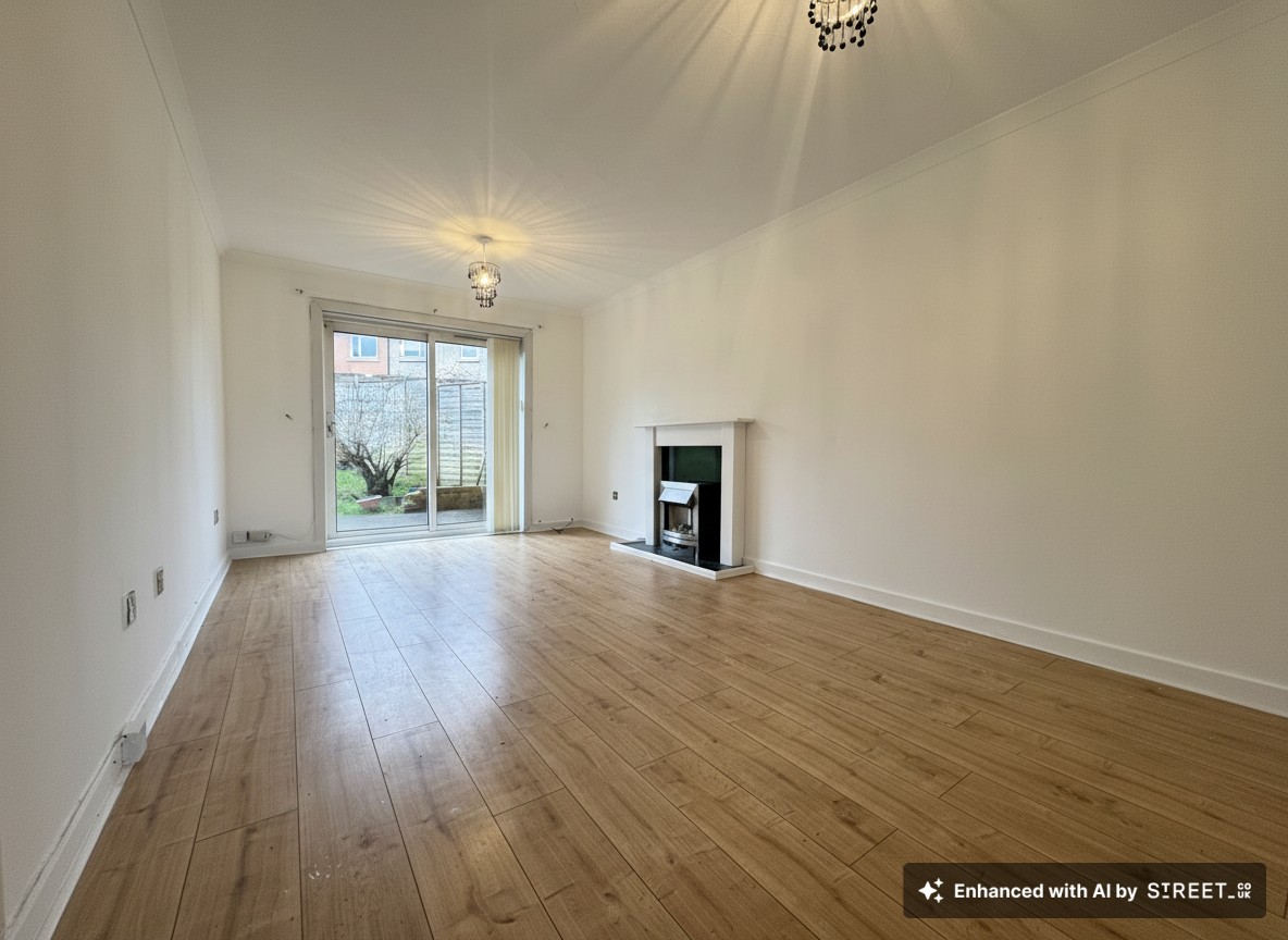 The property provides bright and well-proportioned accommodation over two levels. The generous lounge is a standout feature, complete with an attractive fire surround and patio doors that slide open onto a decked patio area within the rear garden, perfect for relaxing or entertaining.