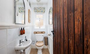 To the rear is the kitchen/breakfast room with dual fuel range cooker & twin butler sinks. There is also a utility room with door to side, cloakroom/wc and ground floor 4th bedroom with en suite shower room.