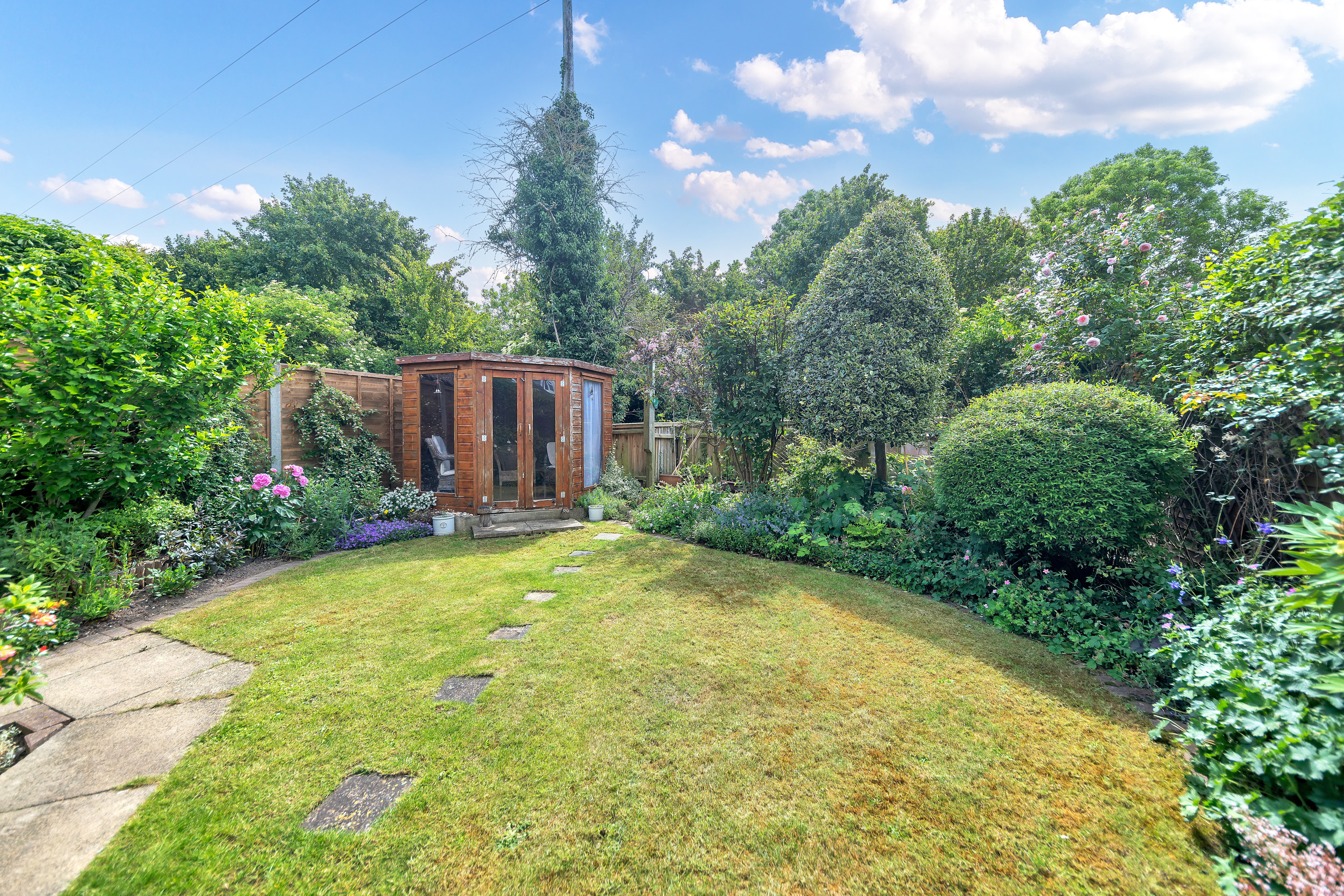 Outside, to the rear, the garden is a good size, fully enclosed by fencing and hedgerows and offering a lovely private spot to relax in the sun. It is laid to lawn and paved patio, providing space for garden furniture and enjoying family meals al fresco. There are stunning established borders, brimming with flowers, plants and shrubs, access to a pretty summerhouse, and scope for new owners to put their own touches on things.