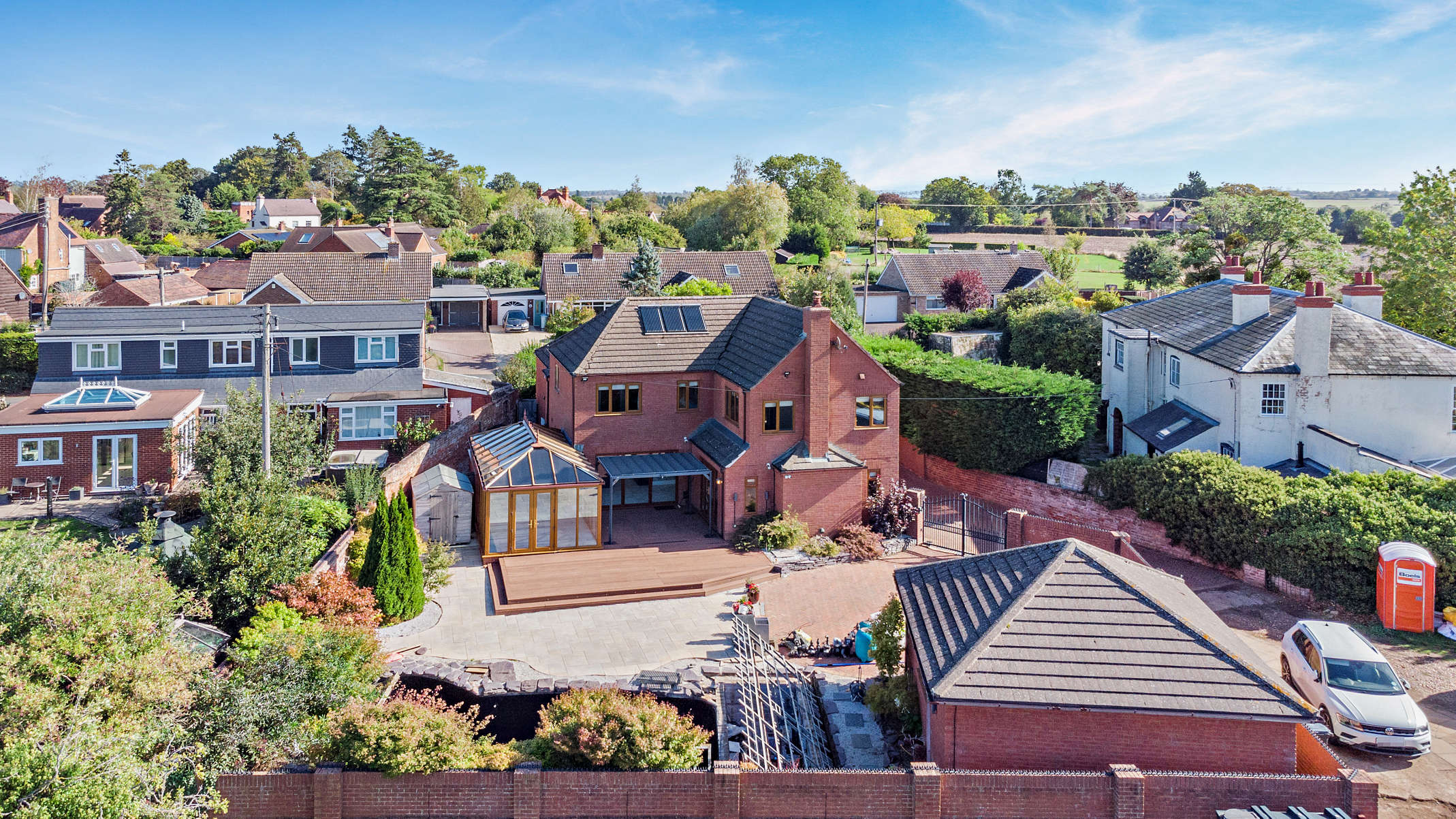 An exceptional five bedroom home with panoramic Malvern Hill views, flexible living space, and landscaped gardens just minutes from Worcester and the M5.