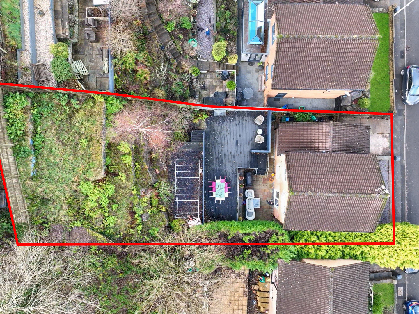 Great sized rear garden with patio section, large composite decking area and upper area with bags of potential.