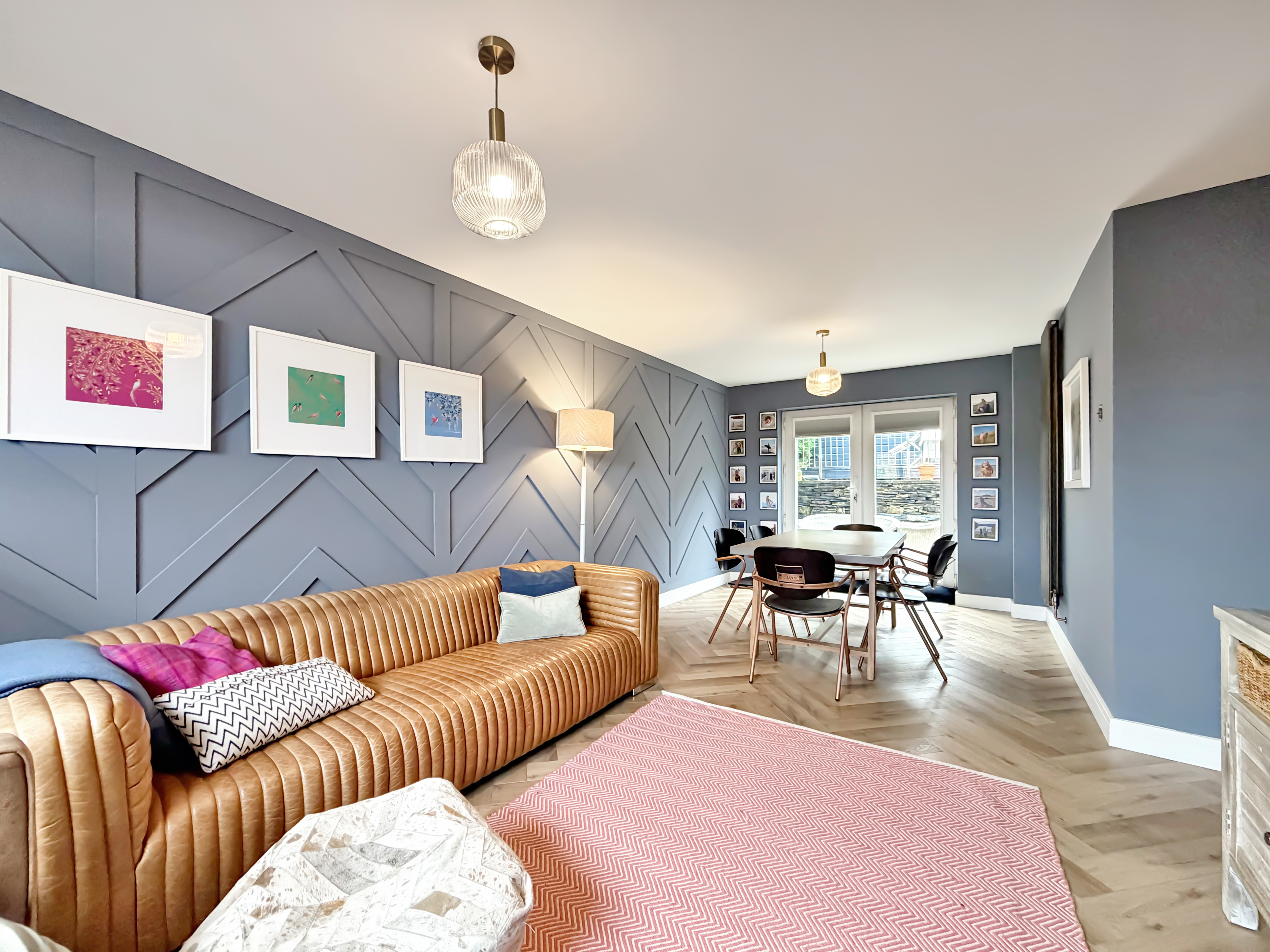The generous lounge and diner, featuring double doors that open to the garden, create a bright and welcoming space perfect for relaxing or entertaining guests.