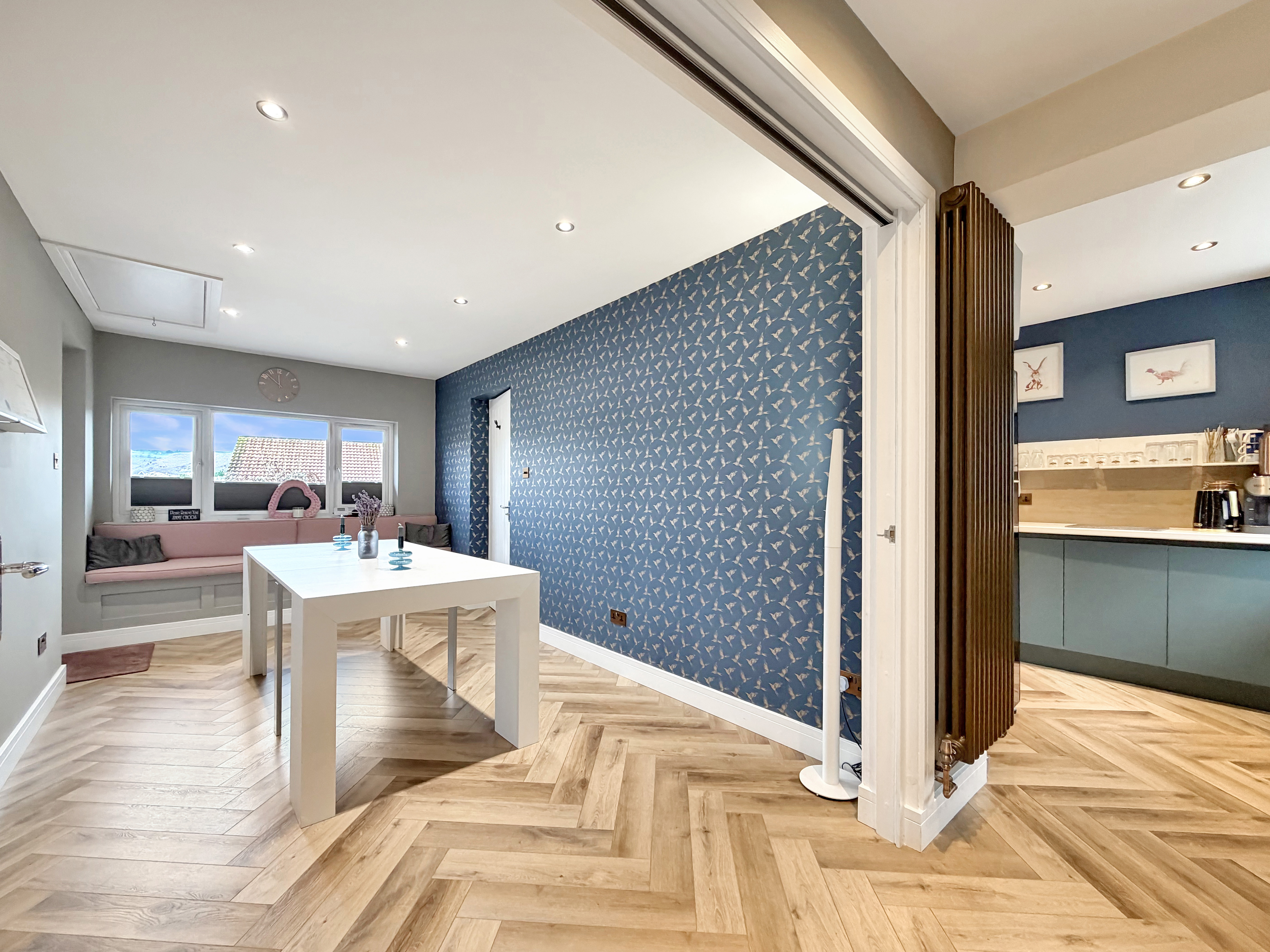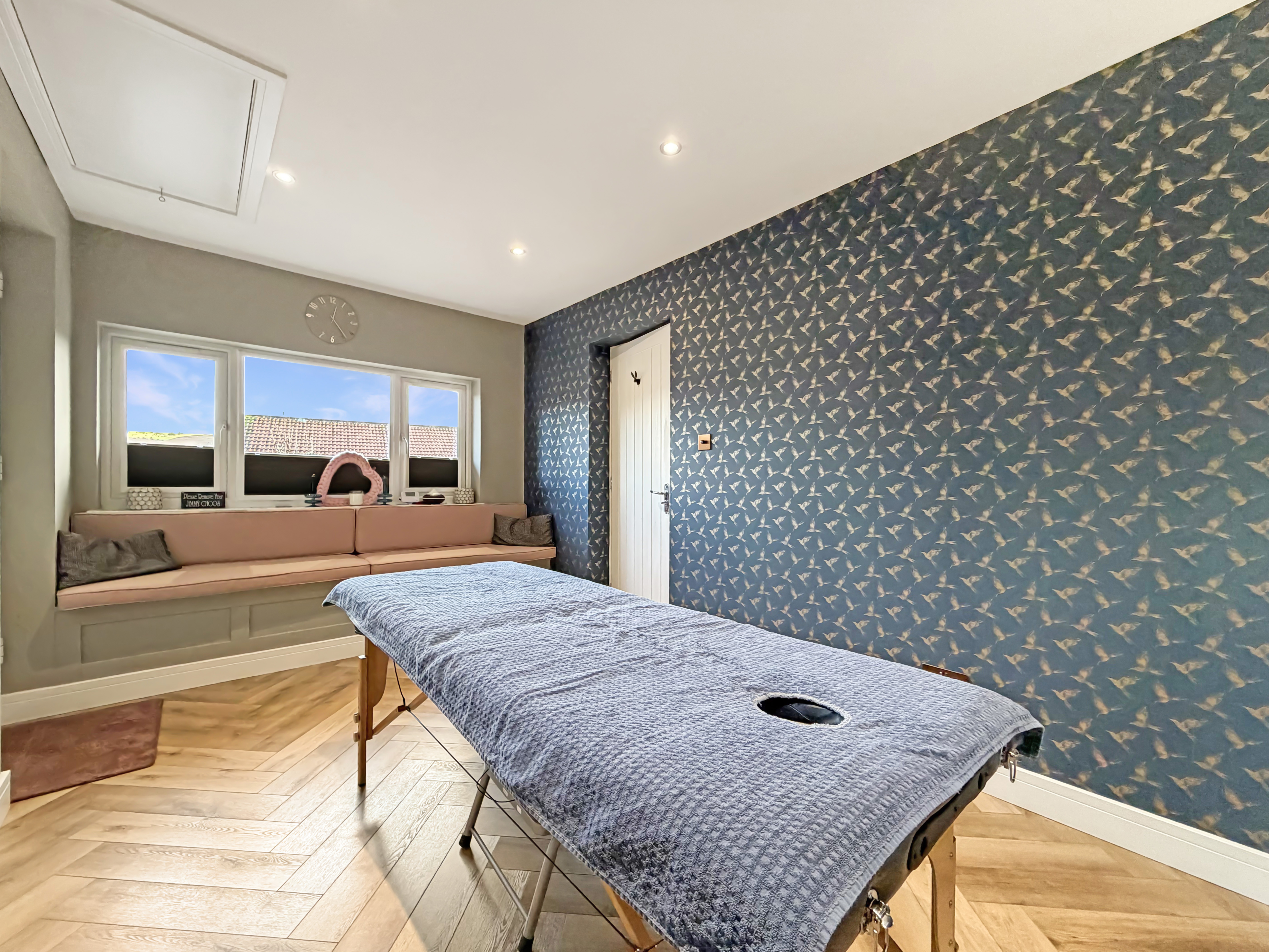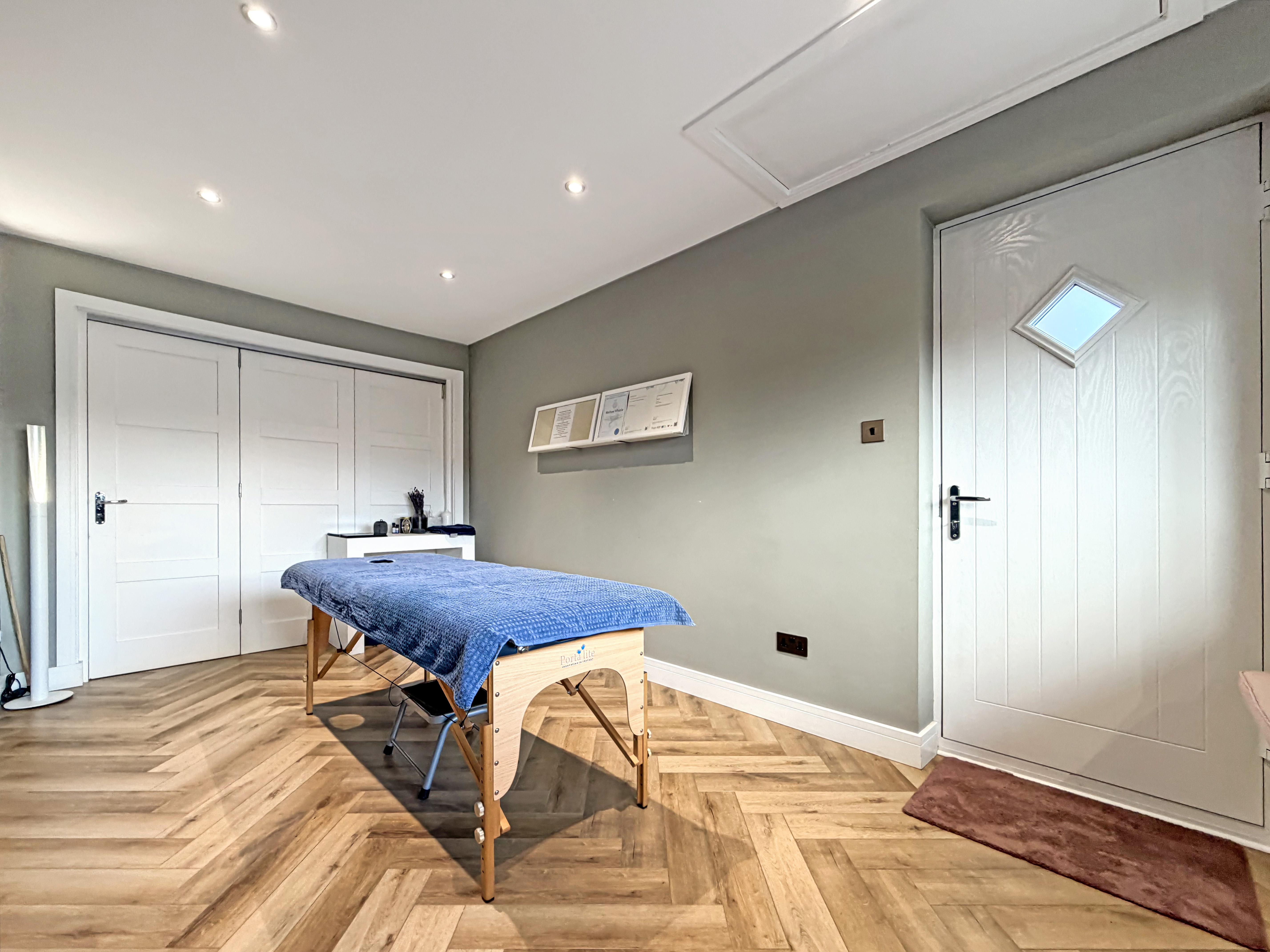 Adjacent to this, a separate sitting room with bi-fold doors through to the kitchen provides an additional living area with underfloor heating, which is enhanced by its independent access door - making it particularly suitable for home businesses or private consultations.