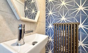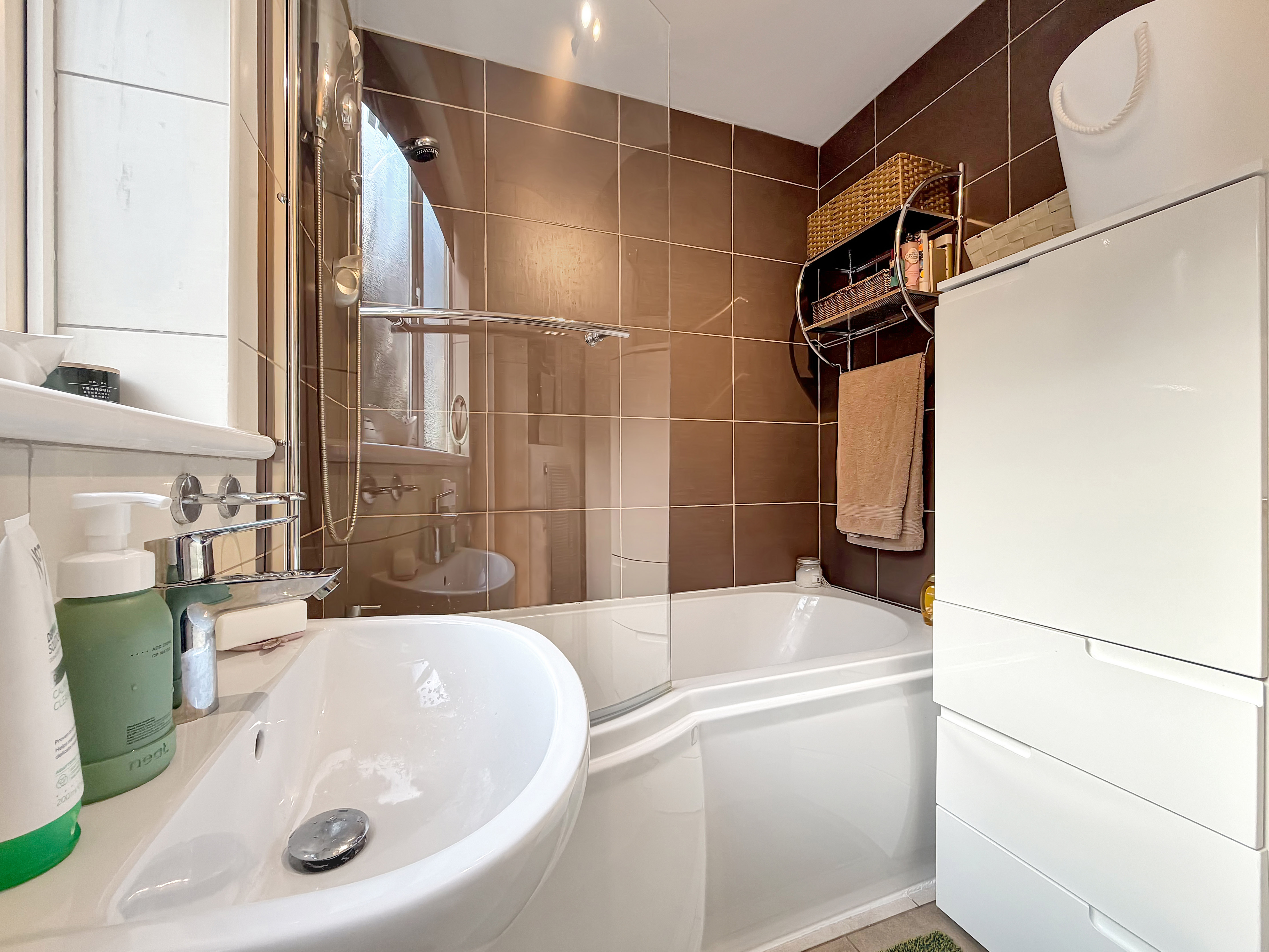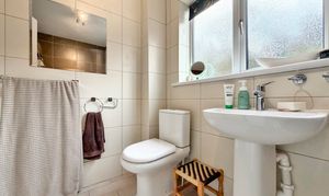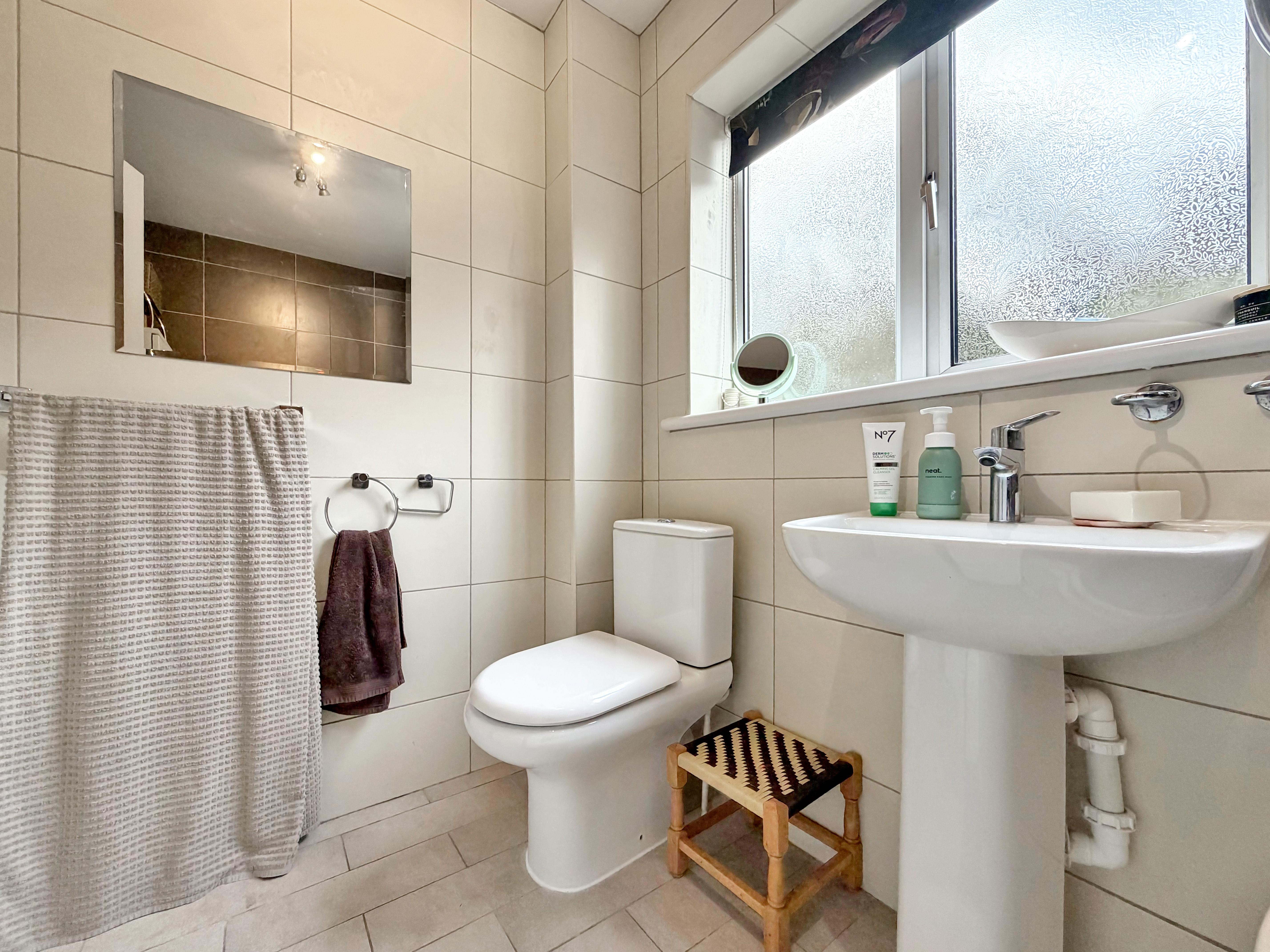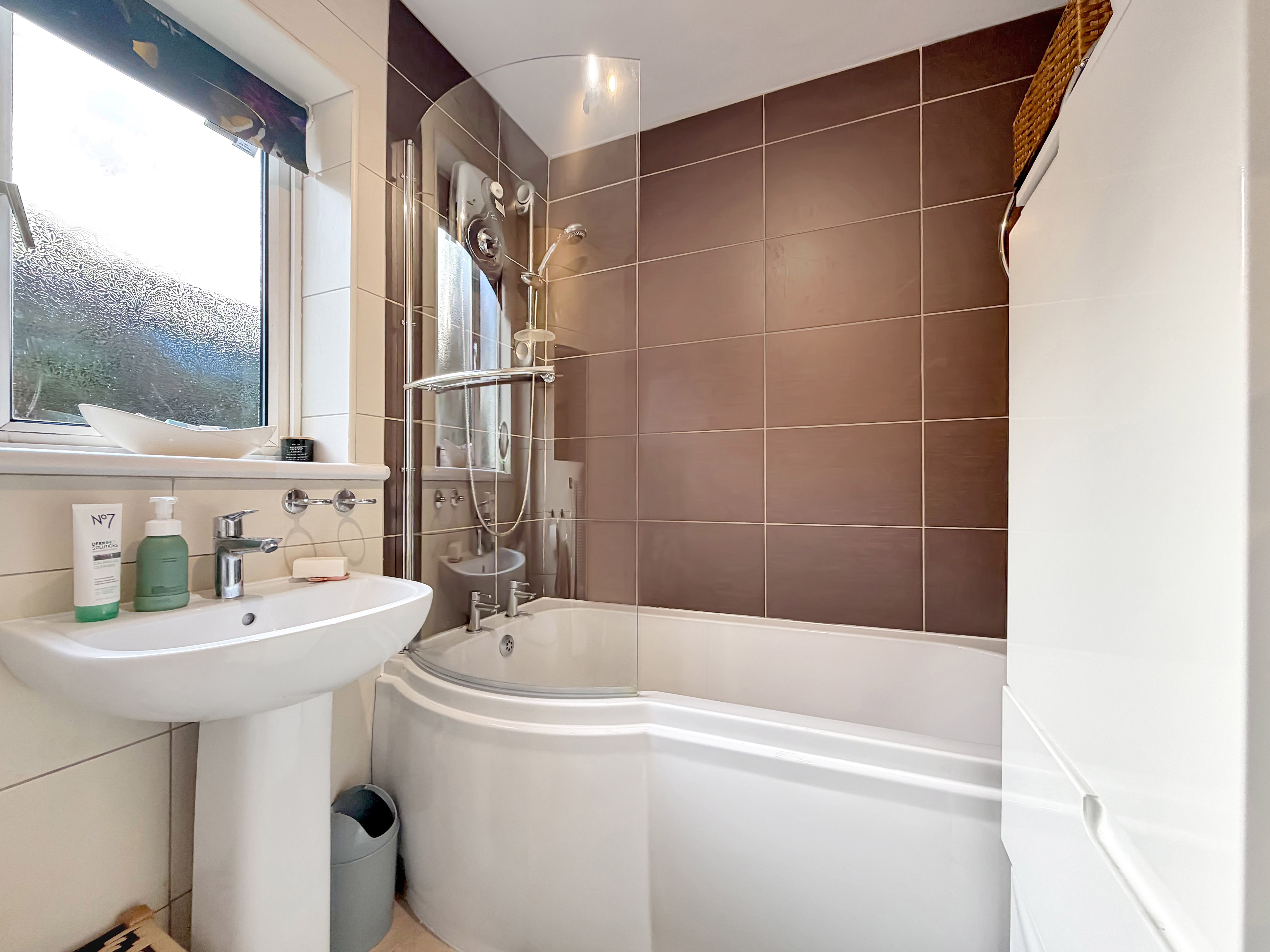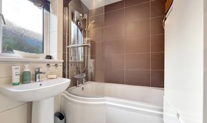 The family bathroom is finished to a high standard, featuring contemporary fixtures and a clean, modern design.