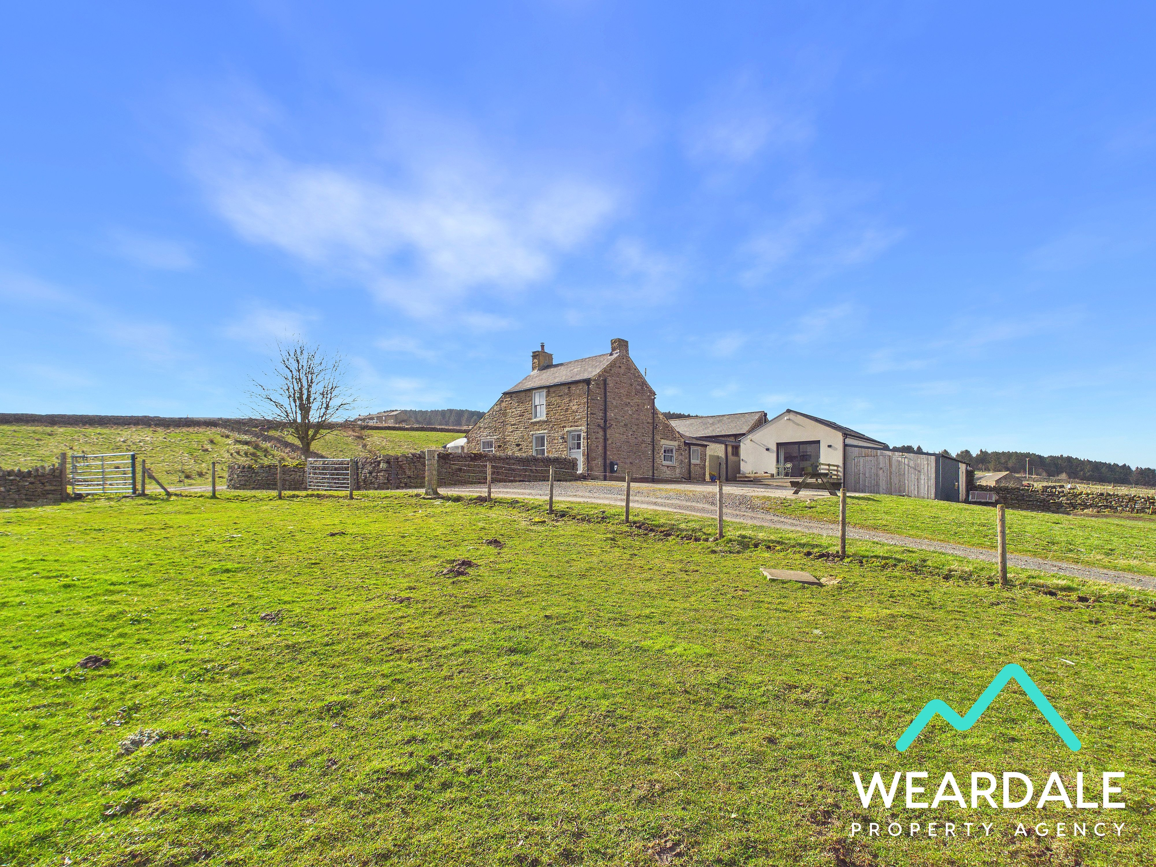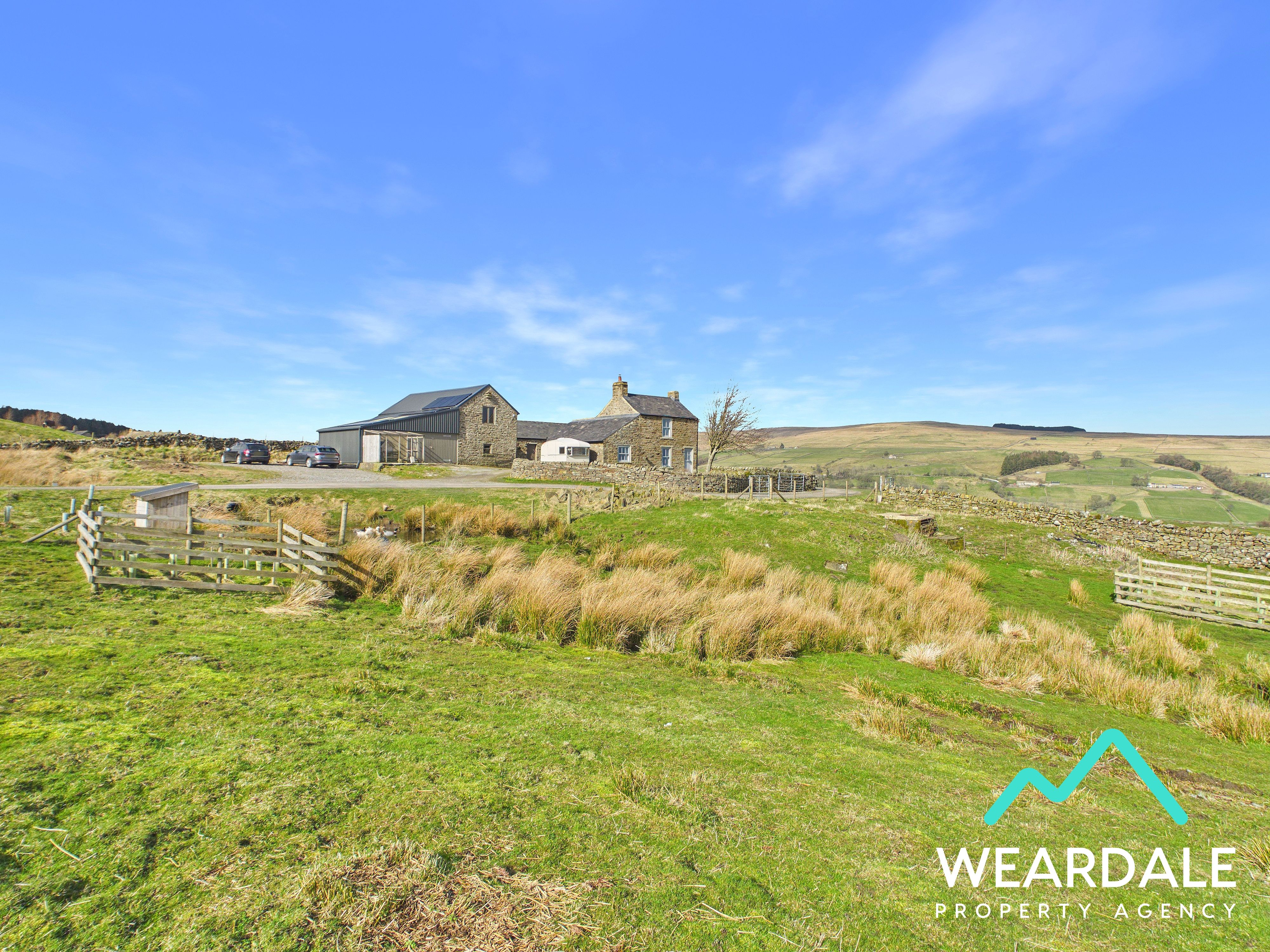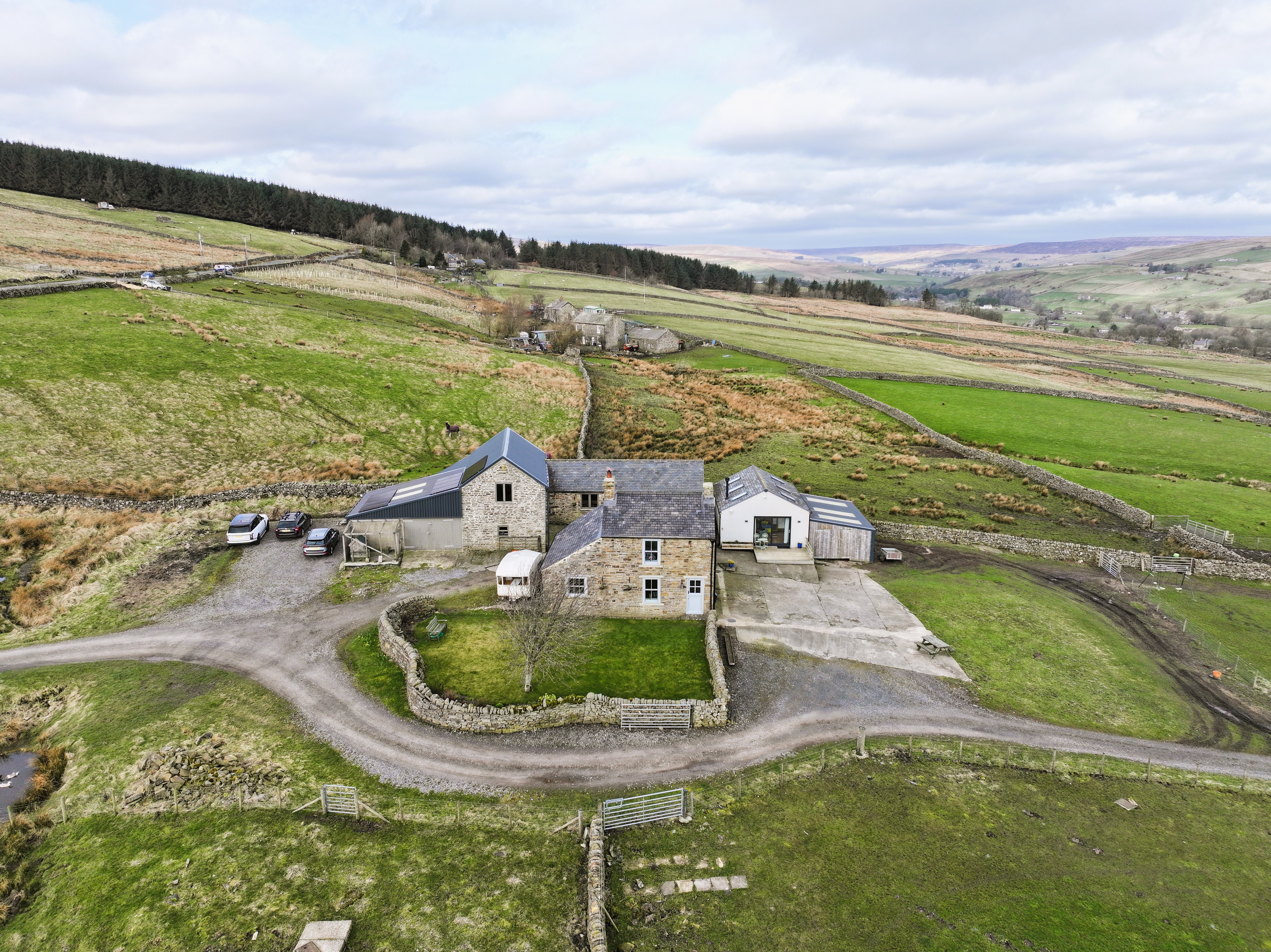 Set on approximately 17.5 acres of picturesque Weardale countryside, this exceptional property presents a rare opportunity to acquire a fully renovated two-bedroom detached farmhouse, a newly converted one-bedroom cottage, and a collection of refurbished agricultural buildings. The two-bedroom farmhouse has been thoughtfully restored to an impressive standard, with works including stripping back to stone, tanking, insulation, re-plastering, a complete re-wire, full new plumbing, a new slate roof, and stylish new kitchen and bathrooms. Engineered oak flooring flows through the living areas, while large windows frame sweeping views of the rolling landscape. The adjacent cottage, converted from a former farm building, offers a charming retreat for guests or family, with contemporary finishes and its own private entrance. Planning permission is already in place to extend the farmhouse’s first floor, allowing the addition of two further bedrooms, and the extensive outbuildings (all with new roofing) provide huge potential for further development, subject to the necessary planning consents. The property is enhanced by a 6 kW solar panel system with 18 kW battery storage, an underground LPG tank, and a newly installed 12-person sewage treatment plant. Additional features include a large garage, a workshop, converted cow Byre currently used as office space, an external storeroom, tractor shed, and an animal field shelter. The layout offers fantastic flexibility with the farmhouse and cottage sited for privacy, and the ancillary buildings being ideally positioned to offer significant future potential.