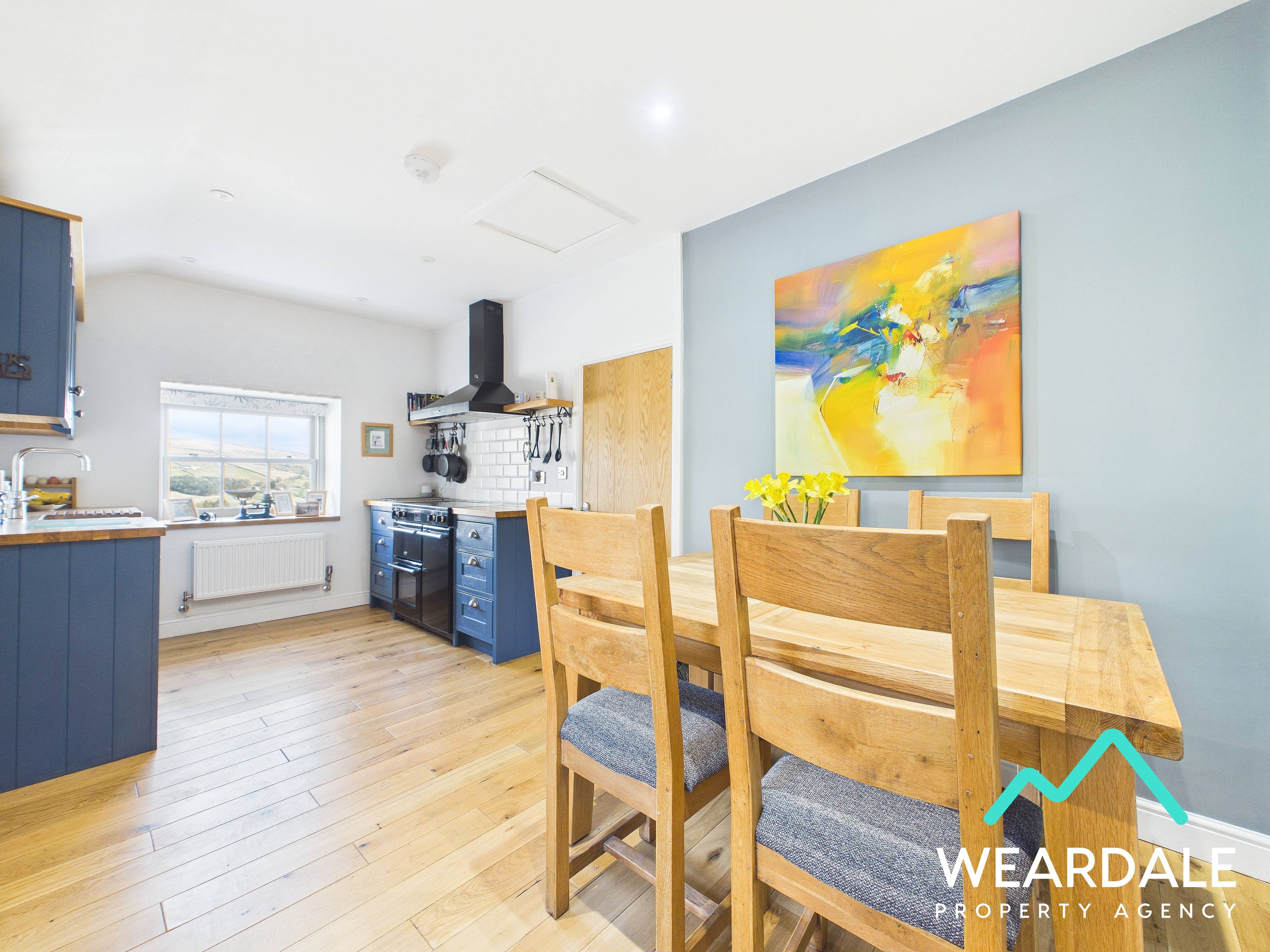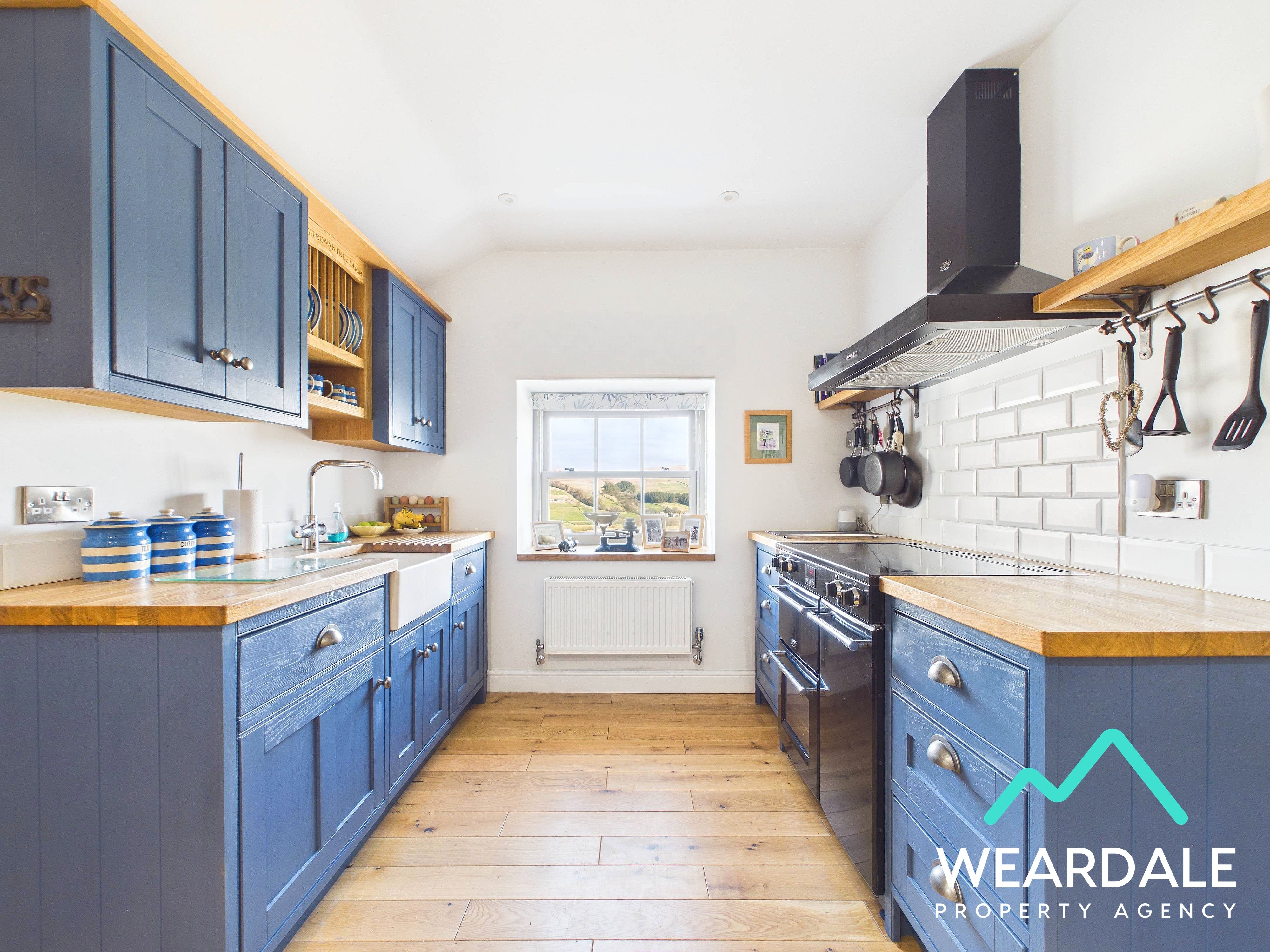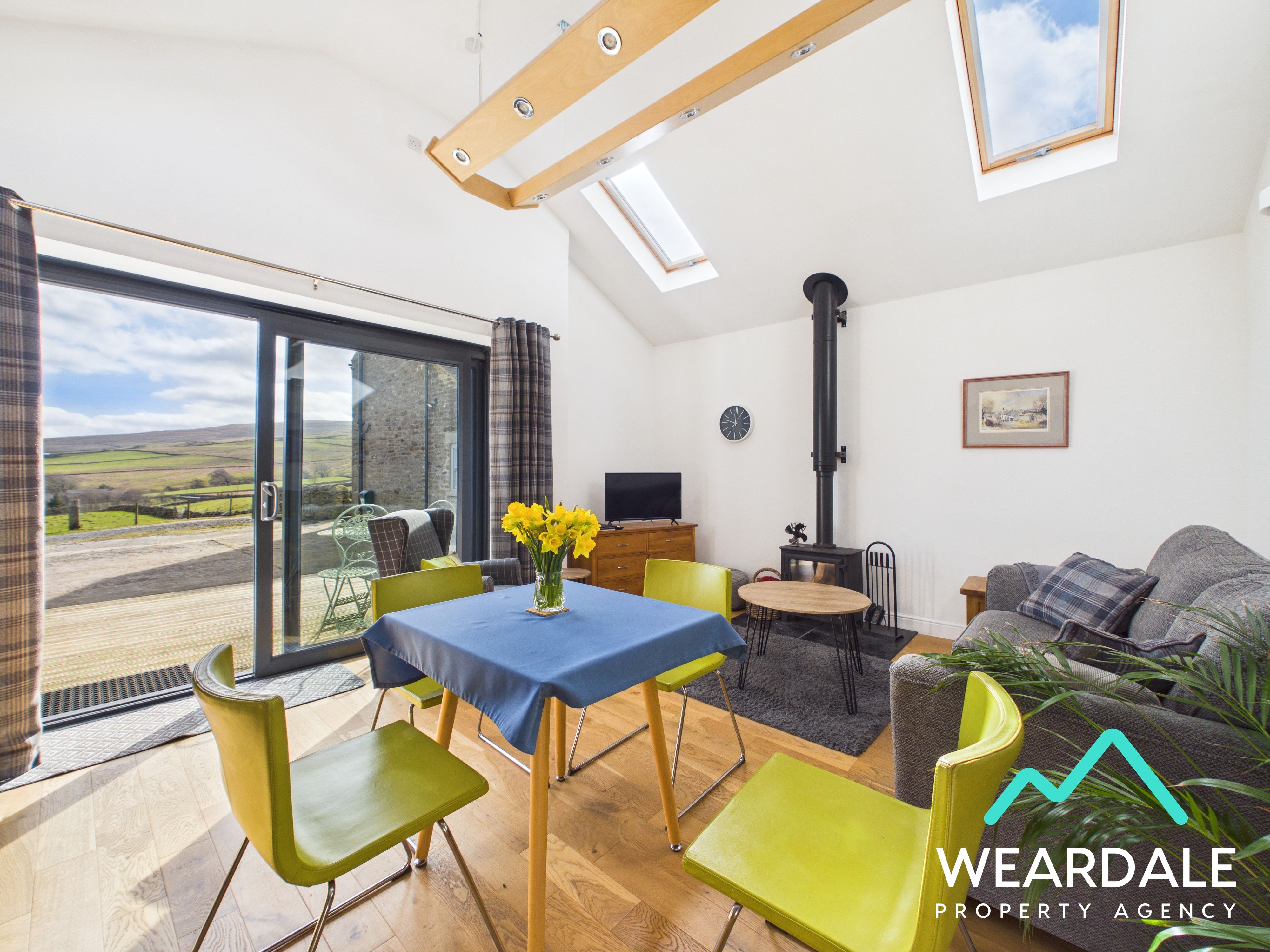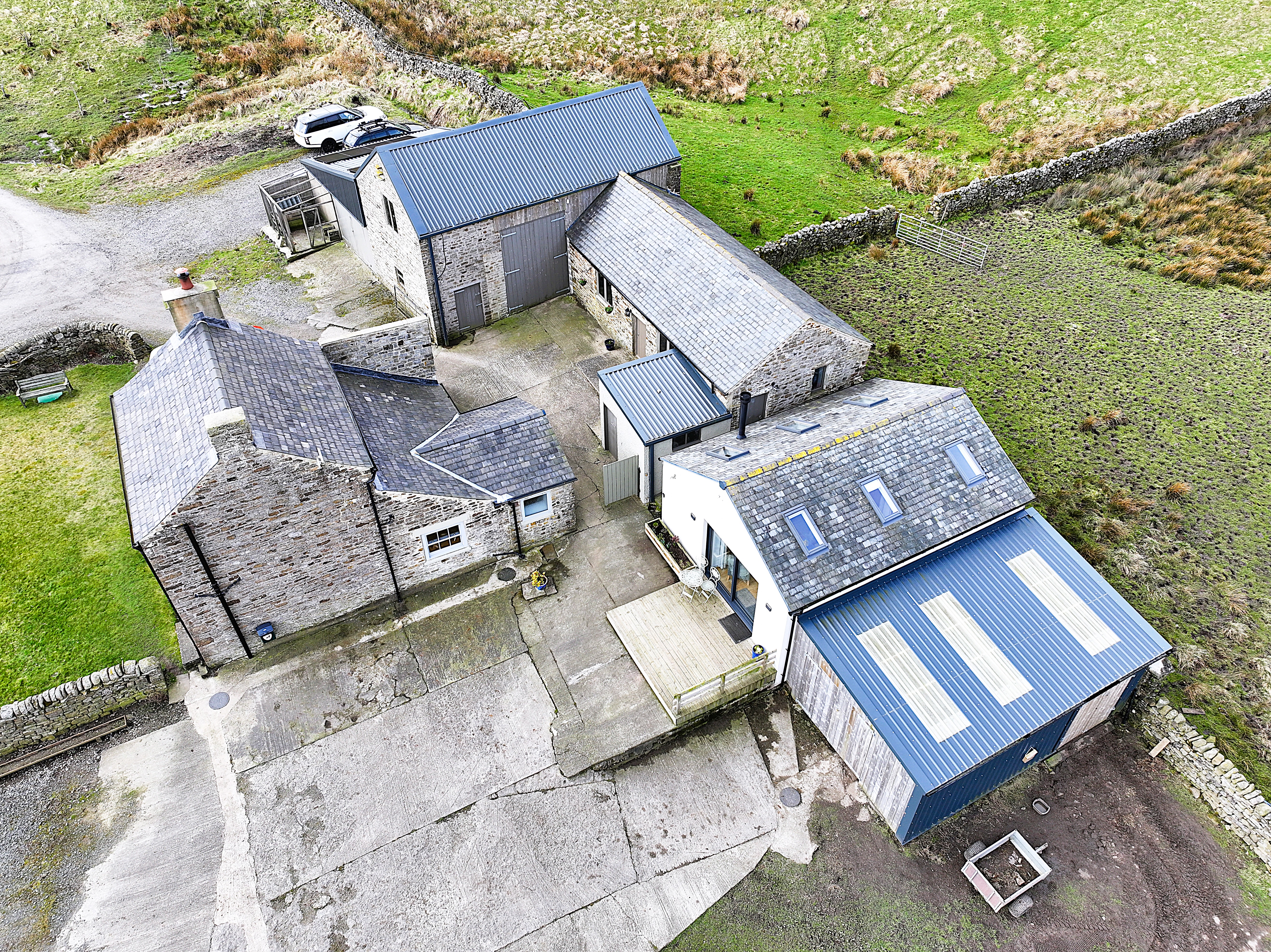 Set on approximately 17.5 acres of picturesque Weardale countryside, this exceptional property presents a rare opportunity to acquire a fully renovated two-bedroom detached farmhouse, a newly converted one-bedroom cottage, and a collection of refurbished agricultural buildings. The two-bedroom farmhouse has been thoughtfully restored to an impressive standard, with works including stripping back to stone, tanking, insulation, re-plastering, a complete re-wire, full new plumbing, a new slate roof, and stylish new kitchen and bathrooms. Engineered oak flooring flows through the living areas, while large windows frame sweeping views of the rolling landscape. The adjacent cottage, converted from a former farm building, offers a charming retreat for guests or family, with contemporary finishes and its own private entrance. Planning permission is already in place to extend the farmhouse’s first floor, allowing the addition of two further bedrooms, and the extensive outbuildings (all with new roofing) provide huge potential for further development, subject to the necessary planning consents. The property is enhanced by a 6 kW solar panel system with 18 kW battery storage, an underground LPG tank, and a newly installed 12-person sewage treatment plant. Additional features include a large garage, a workshop, converted cow Byre currently used as office space, an external storeroom, tractor shed, and an animal field shelter. The layout offers fantastic flexibility with the farmhouse and cottage sited for privacy, and the ancillary buildings being ideally positioned to offer significant future potential.