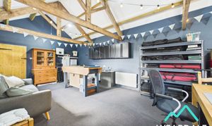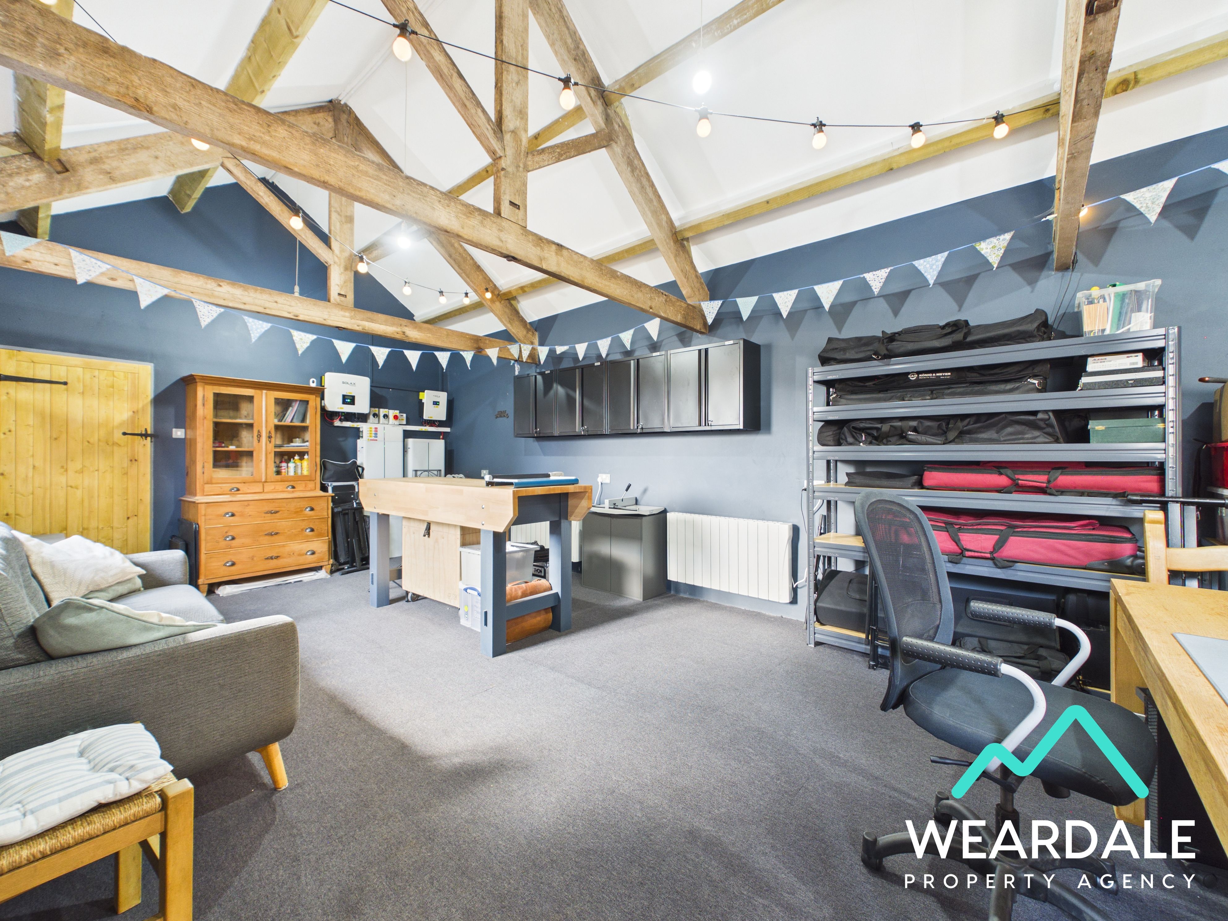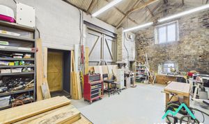 - Adjoining the cow Byre at the Southern end is a large workshop which benefits from newly fitted wooden double barn doors and additional pedestrian door - Wooden framed double-glazed windows to the Eastern aspect with further high-level wooden framed windows to the Western aspect - Concrete floor - Huge workshop space benefiting from multiple power outlets and high-level lighting - Vaulted ceiling - This building has been recently re-roofed - In addition to being accessed via a doorway from the byer, there is further onward access to the adjoining storage building which in turn leads to the garage