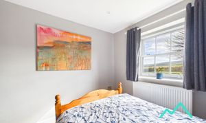- Positioned to the front of the property and accessed from the utility room - Well-proportioned double room with en-suite bathroom - Wooden framed double-glazed sliding sash window to the Eastern aspect, with beautiful views over the garden and surrounding hillsides beyond - Engineered oak flooring - Radiator - Ceiling spotlights - Attic hatch to roof space above