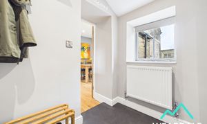 - Rear external access is gained via a wooden door into the rear porch, which provides onward internal access to the ground floor WC and kitchen - Wooden framed double-glazed window to the Southern aspect - LVT flooring - Radiator - Ceiling spotlights