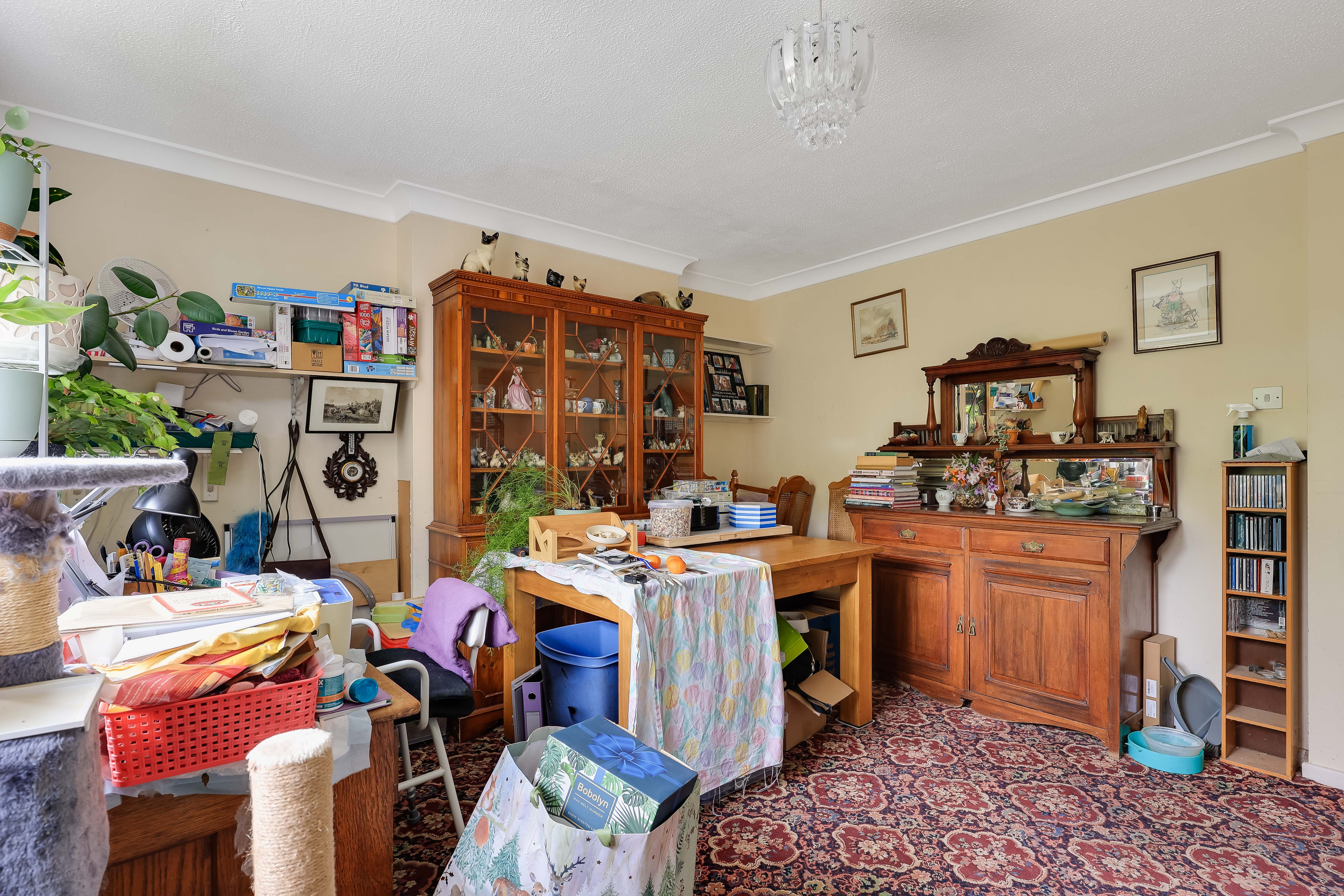 While the property would benefit from updating throughout, it already offers a surprisingly spacious layout. The ground floor has been extended to include an additional reception room, providing versatility as a family room, home office or snug. The rest of the accommodation includes a separate dining room, kitchen, and a useful ground floor cloakroom. Upstairs, there are two double bedrooms and a shower room.