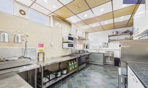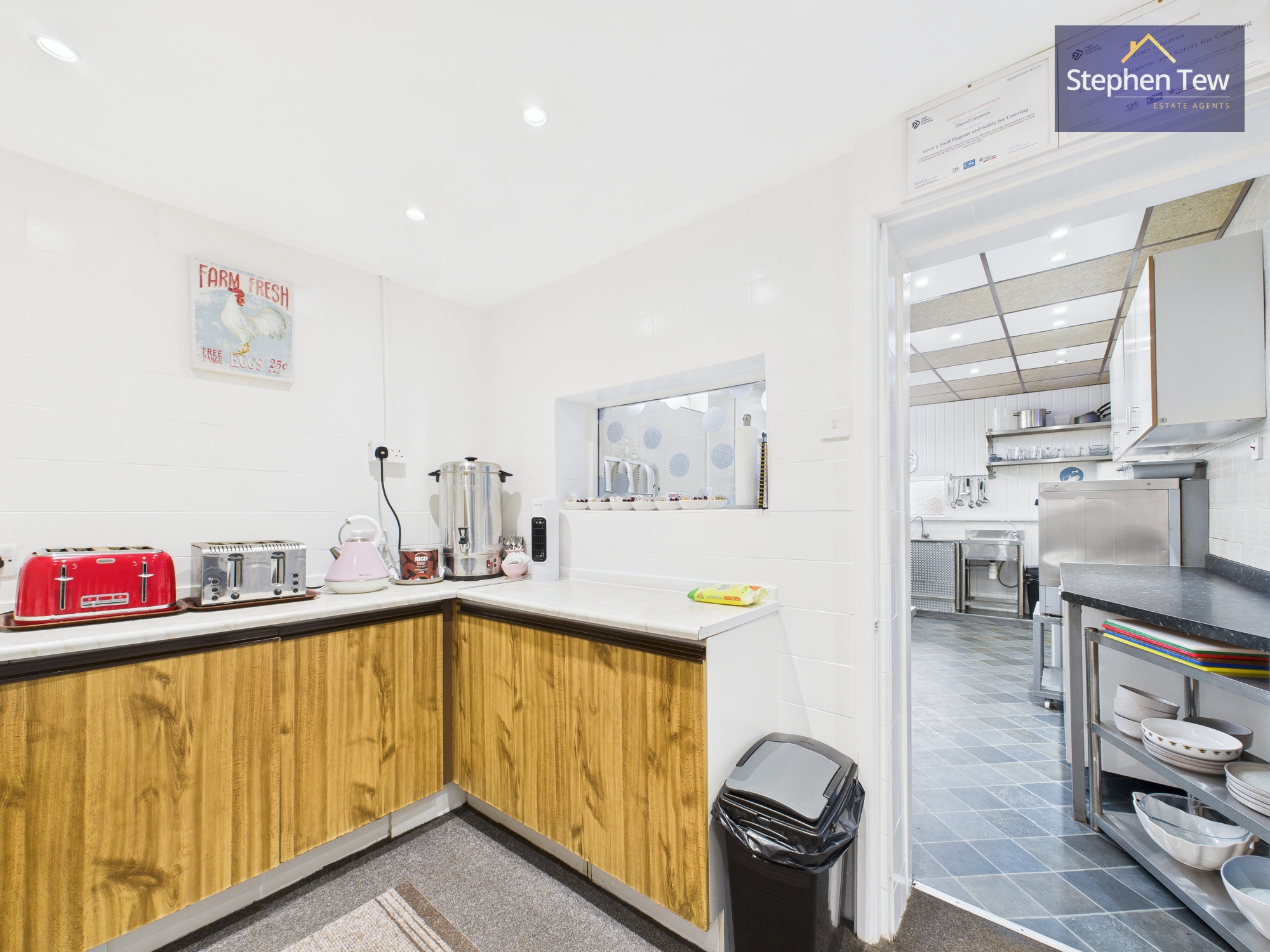 The communal dining room effortlessly flows into the well-equipped hotel kitchen for guest dining, complemented by a separate kitchen for staff and a utility room housing a convenient WC.