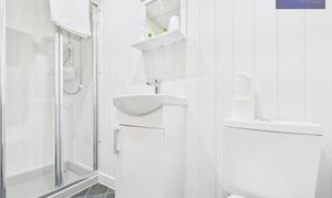 Nestled discreetly behind the reception, the private living quarters include a cosy lounge, a spacious bedroom, and a luxurious bathroom, providing a peaceful retreat for the proprietors.