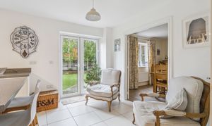 The elegant sitting room invites natural light to flood in, creating a warm and inviting atmosphere. A study/family room provides flexibility for work or leisure activities. This home also features an attractive private garden with an entertaining terrace, ideal for hosting gatherings. Complete with both garage and driveway parking, practicality meets style seamlessly in this charming home.