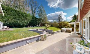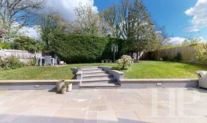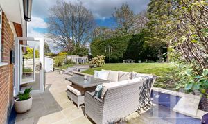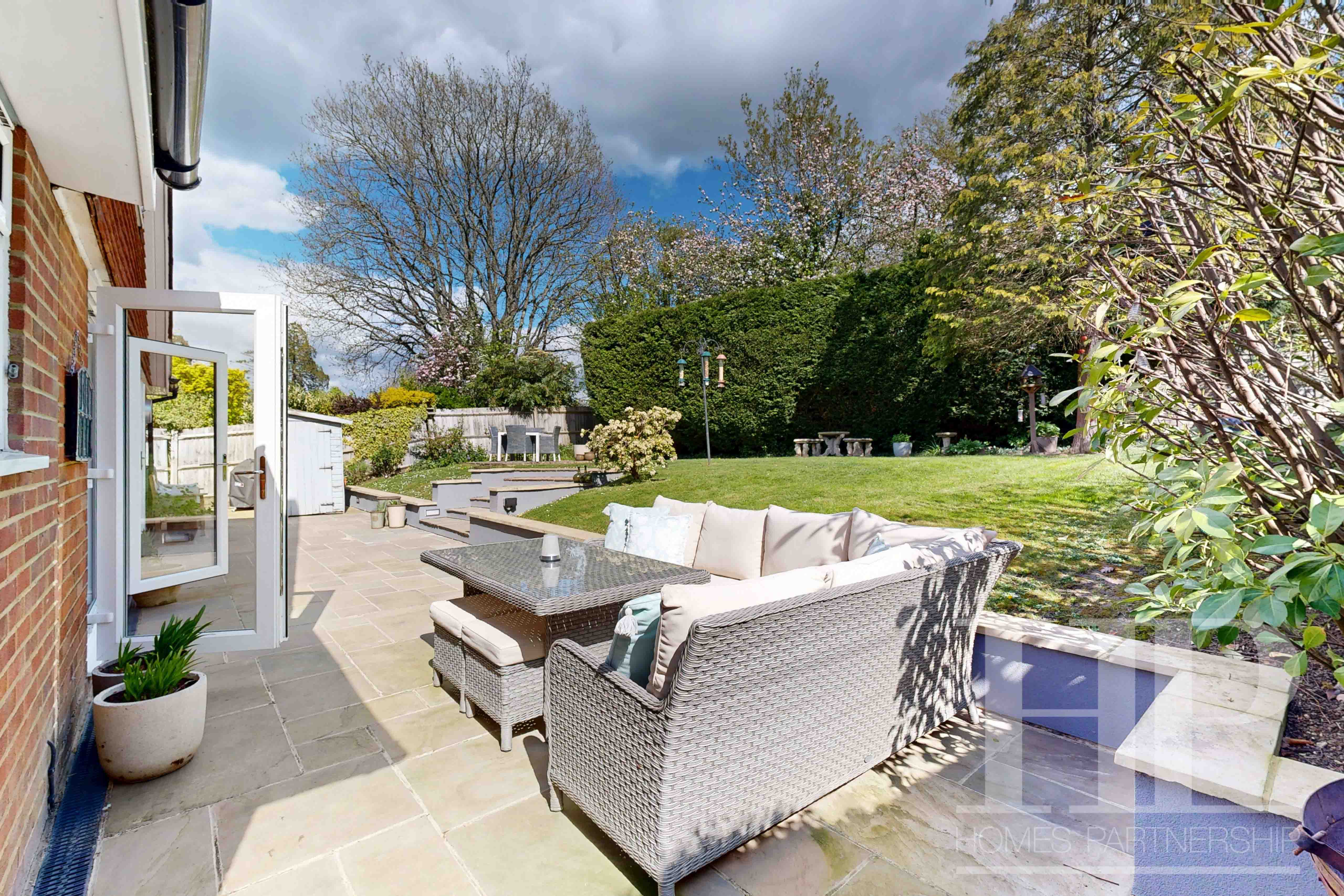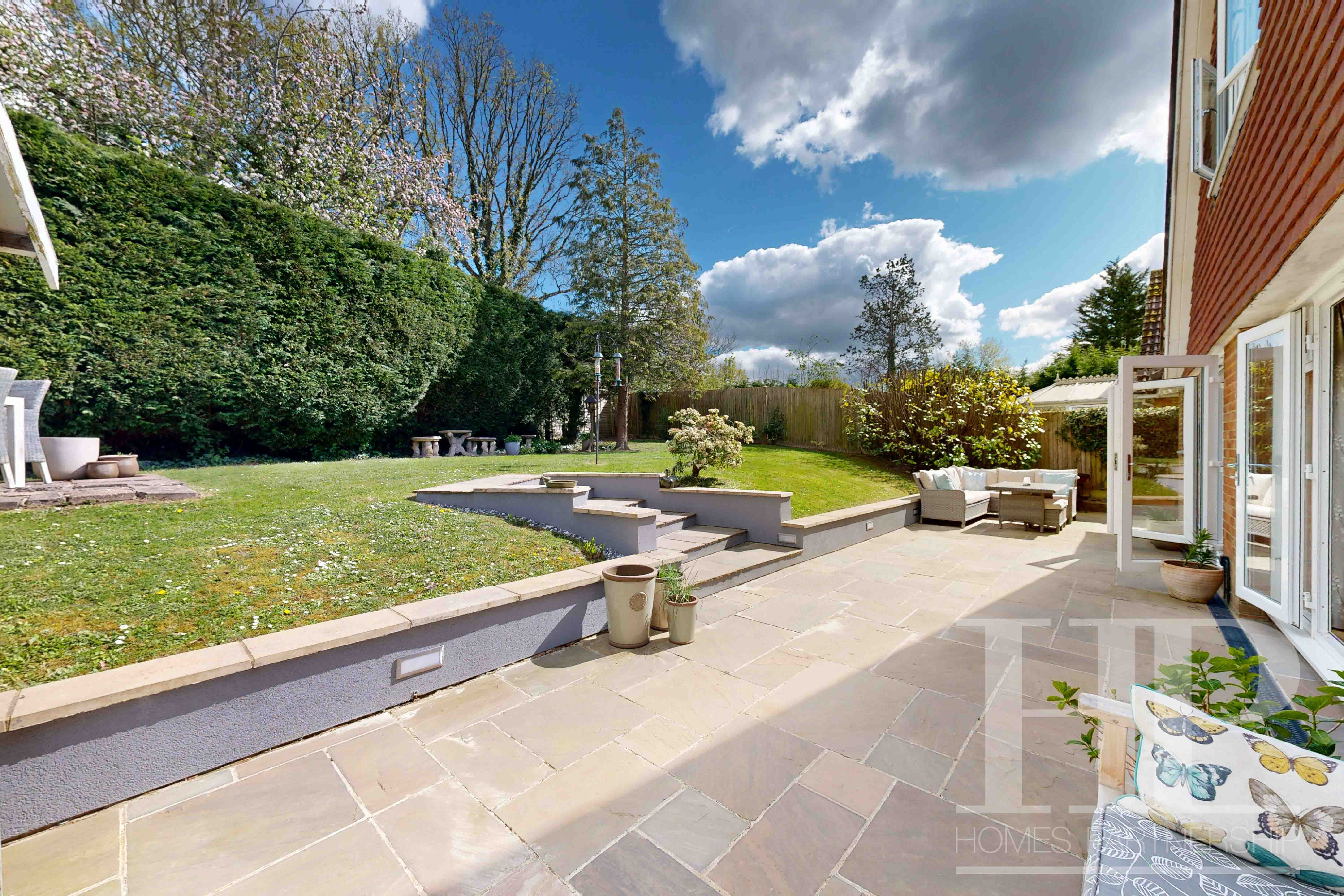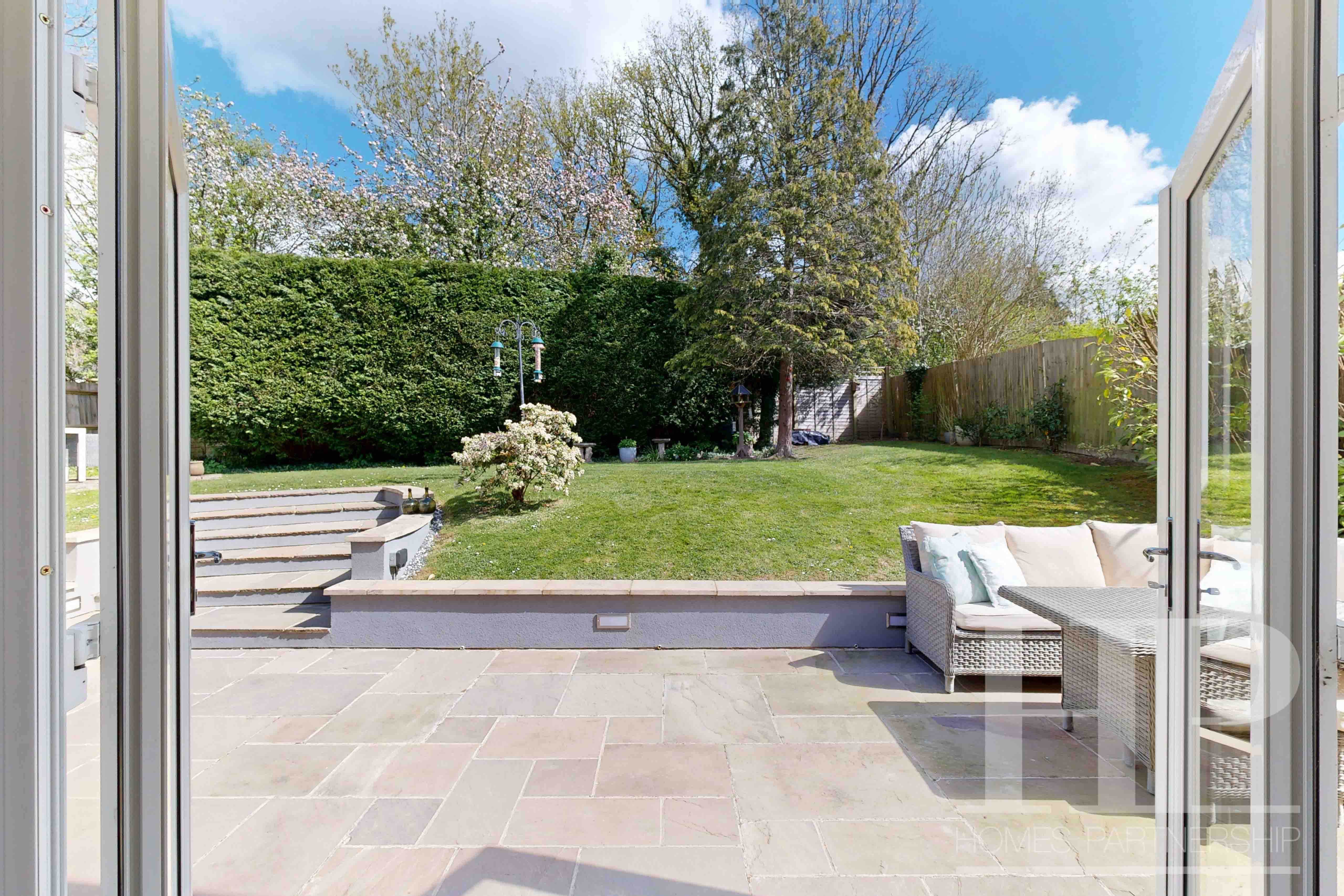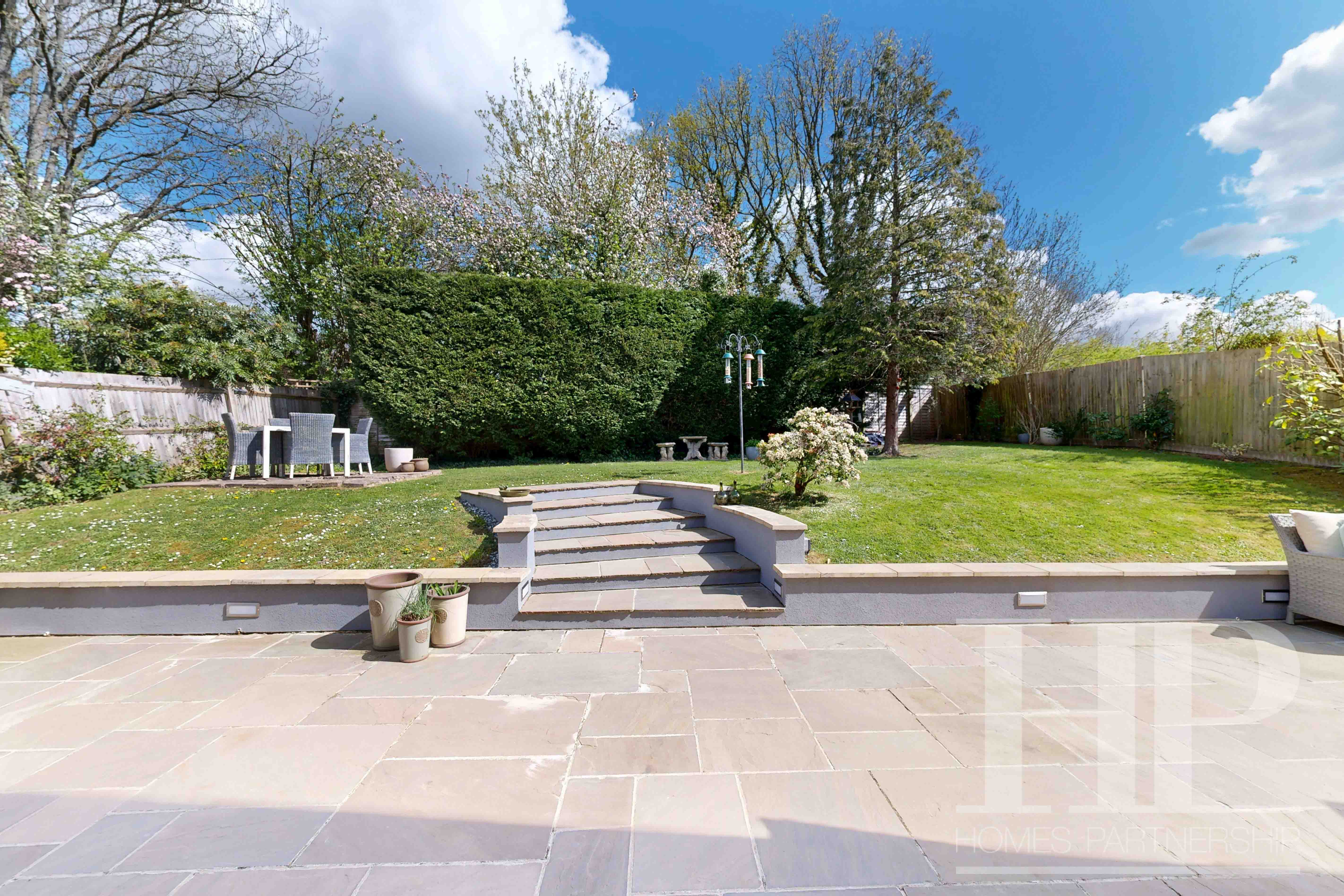 - Tiered rear garden with a substantial patio, lawn, plants and shrubs