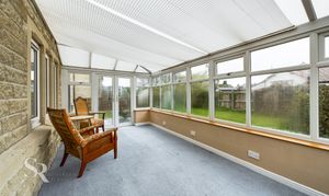 The conservatory features carpet flooring, UPVC windows, and side aspect doors leading to the garden, all set on a dwarf wall with beautiful views of the garden.