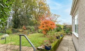 Externally, the property enjoys well-maintained gardens and excellent outdoor space. To the front, there is a driveway and garage, providing convenient off-road parking. To the rear, the large garden is beautifully presented, featuring established plants, trees, and shrubs that add colour and privacy. There is also ample room for outdoor seating and dining, making it a perfect space for relaxation or entertaining during the warmer months.