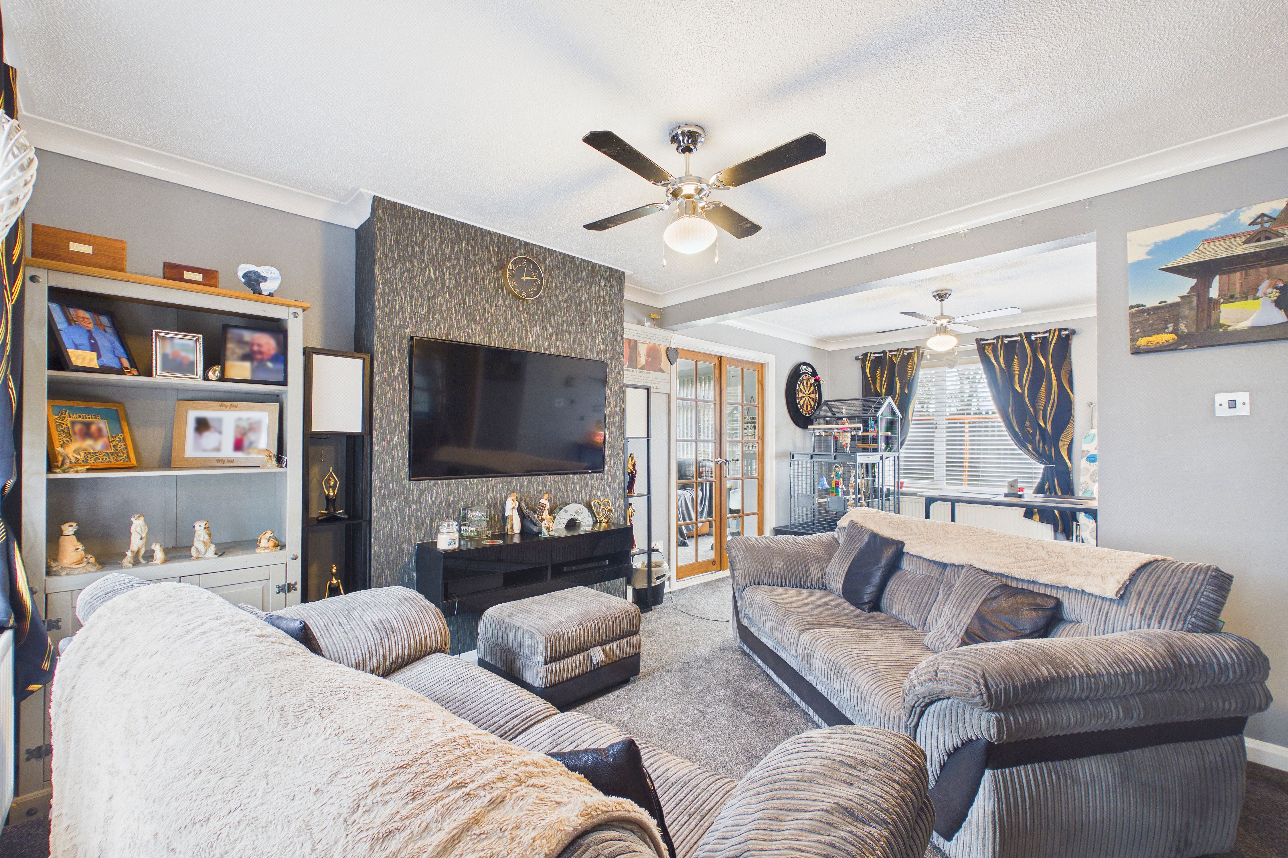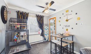 Step through the welcoming porch and you’ll find yourself in the heart of the home, where a spacious dual aspect lounge diner awaits, filled with natural light and offering wonderful flexibility for family gatherings or entertaining. The converted garage now serves as a versatile second sitting room. The well-appointed kitchen features a large walk-in storage cupboard, and double doors from the lounge lead seamlessly into a bright conservatory with an insulated ceiling, ensuring year-round comfort. Upstairs, three generous and beautifully presented bedrooms provide restful retreats, all served by a stylish family bathroom complete with a contemporary four-piece suite.