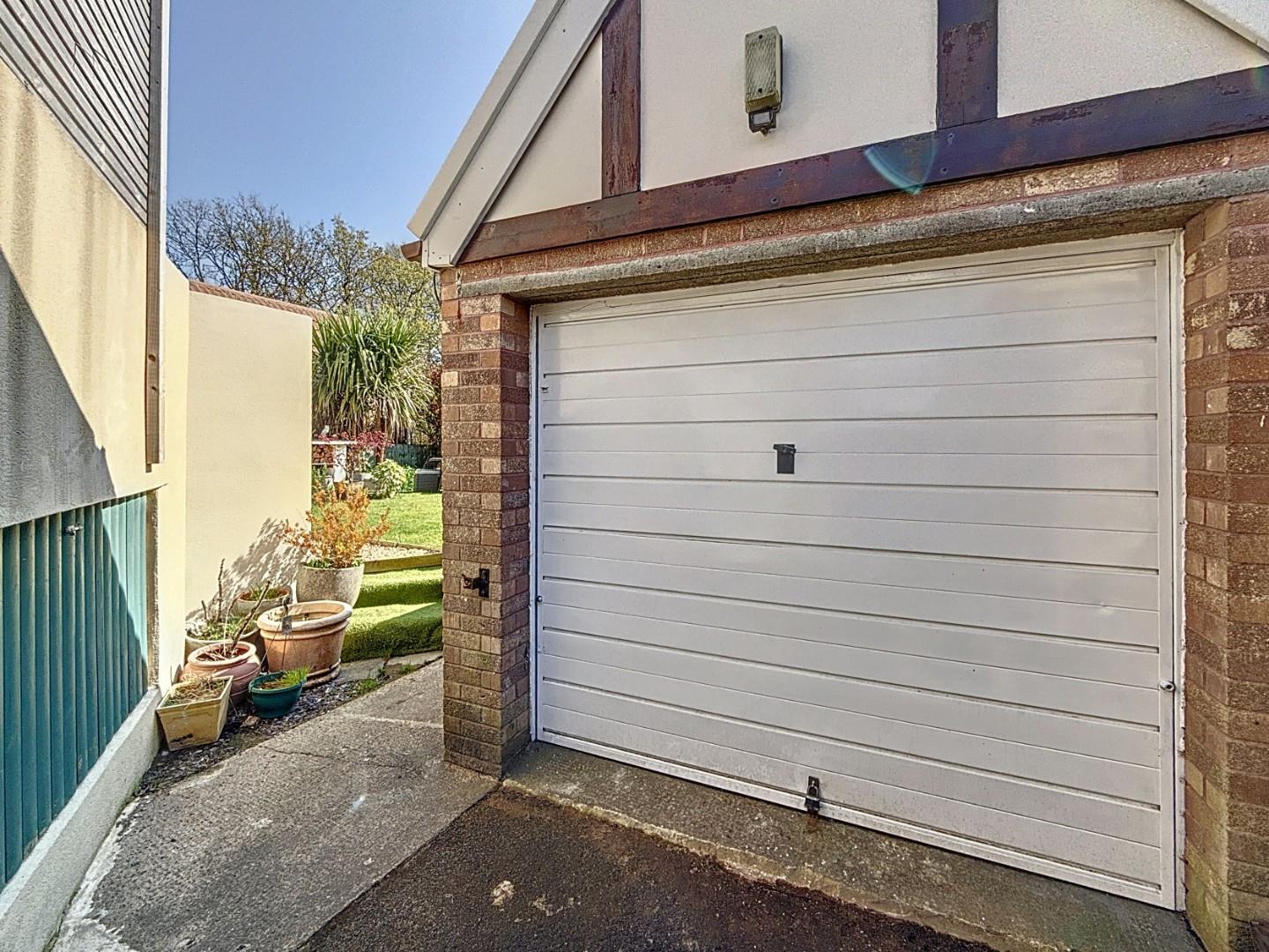The garage features an up-and-over door and is fitted with lighting and electricity, making it suitable for storage or potential workshop use.