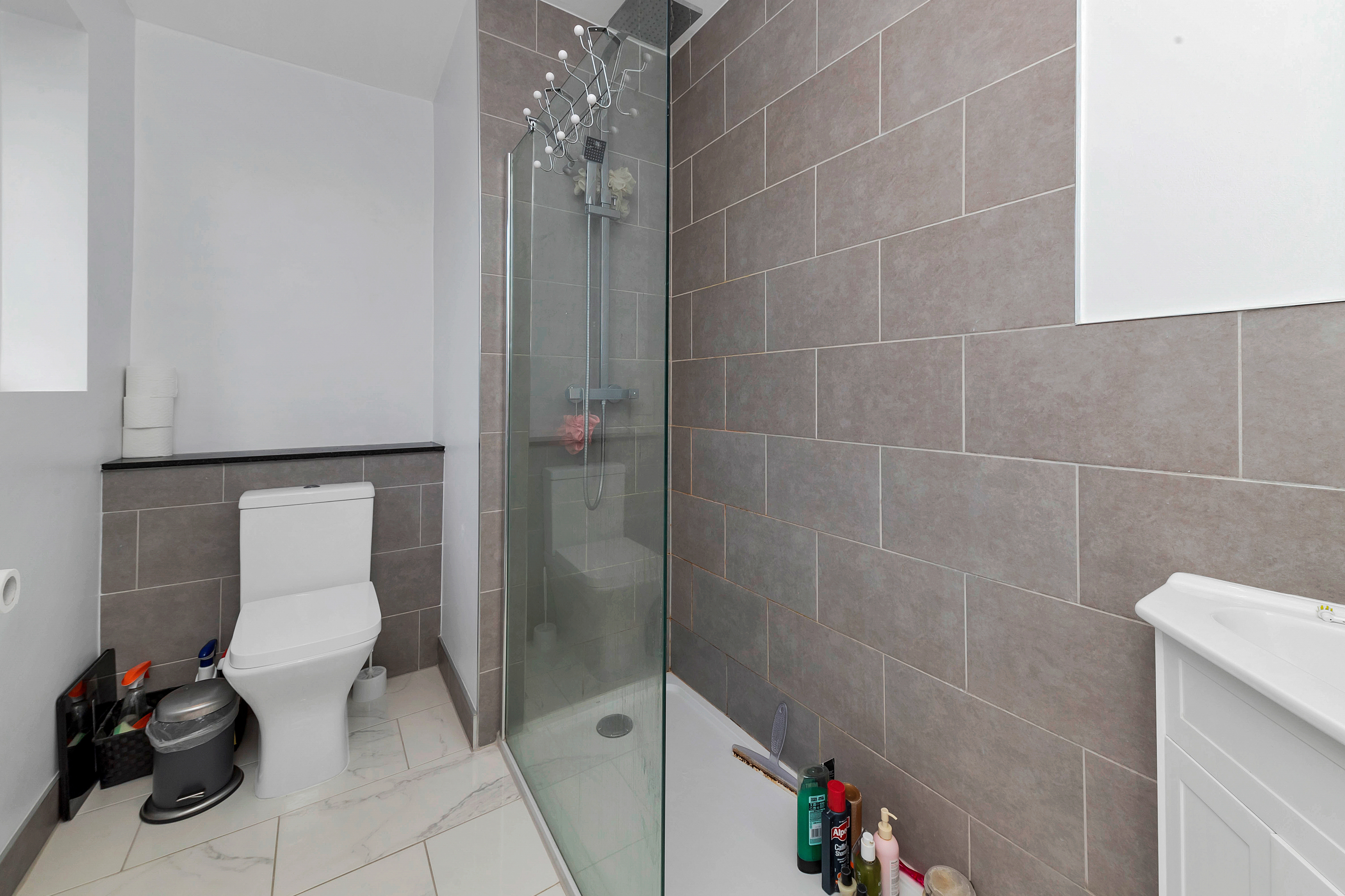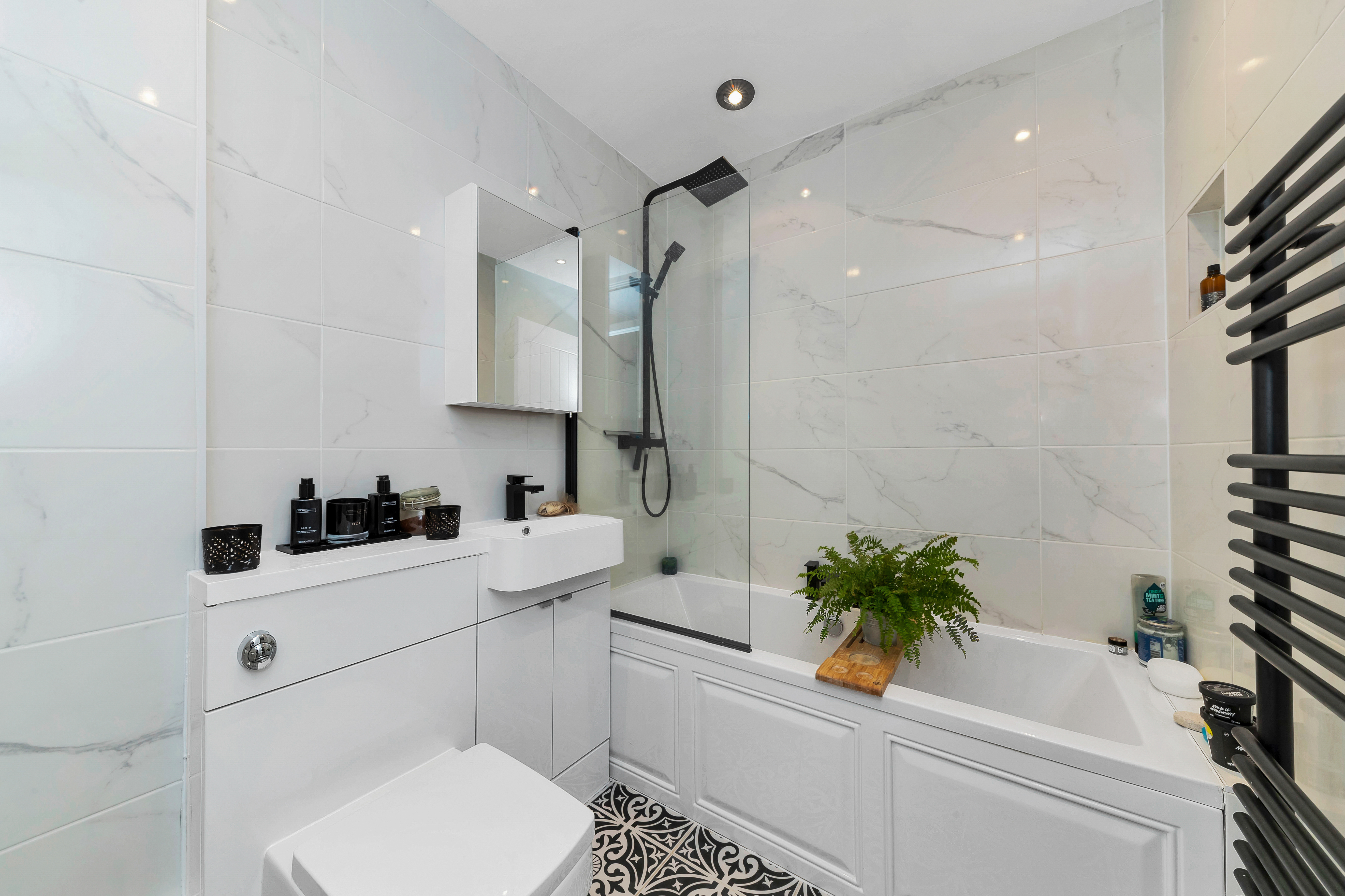 Upstairs to the first floor, this lovely property continues to offer generous and beautifully presented accommodation, with 4 well-proportioned bedrooms, integrated storage, and a modern family bathroom comprising a bath with an overhead shower, WC, heated towel rail and a hand wash basin. The master bedroom also enjoys its own large en-suite, benefiting from a window to a side aspect, a double shower, WC, heated towel rail, and hand wash basin.