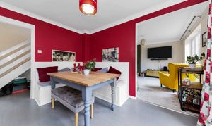 This well-presented detached property enjoys a modern and attractive frontage of exposed brick and cream render, an enclosed front lawn garden with well-maintained borders and beds, and side access to the rear of the property. Upon stepping inside, the entrance hallway is bright and welcoming, with attractive wood flooring, pendant lighting, room for furniture, stairs to the first floor, and doors through to the downstairs accommodation, including a cloakroom WC.
