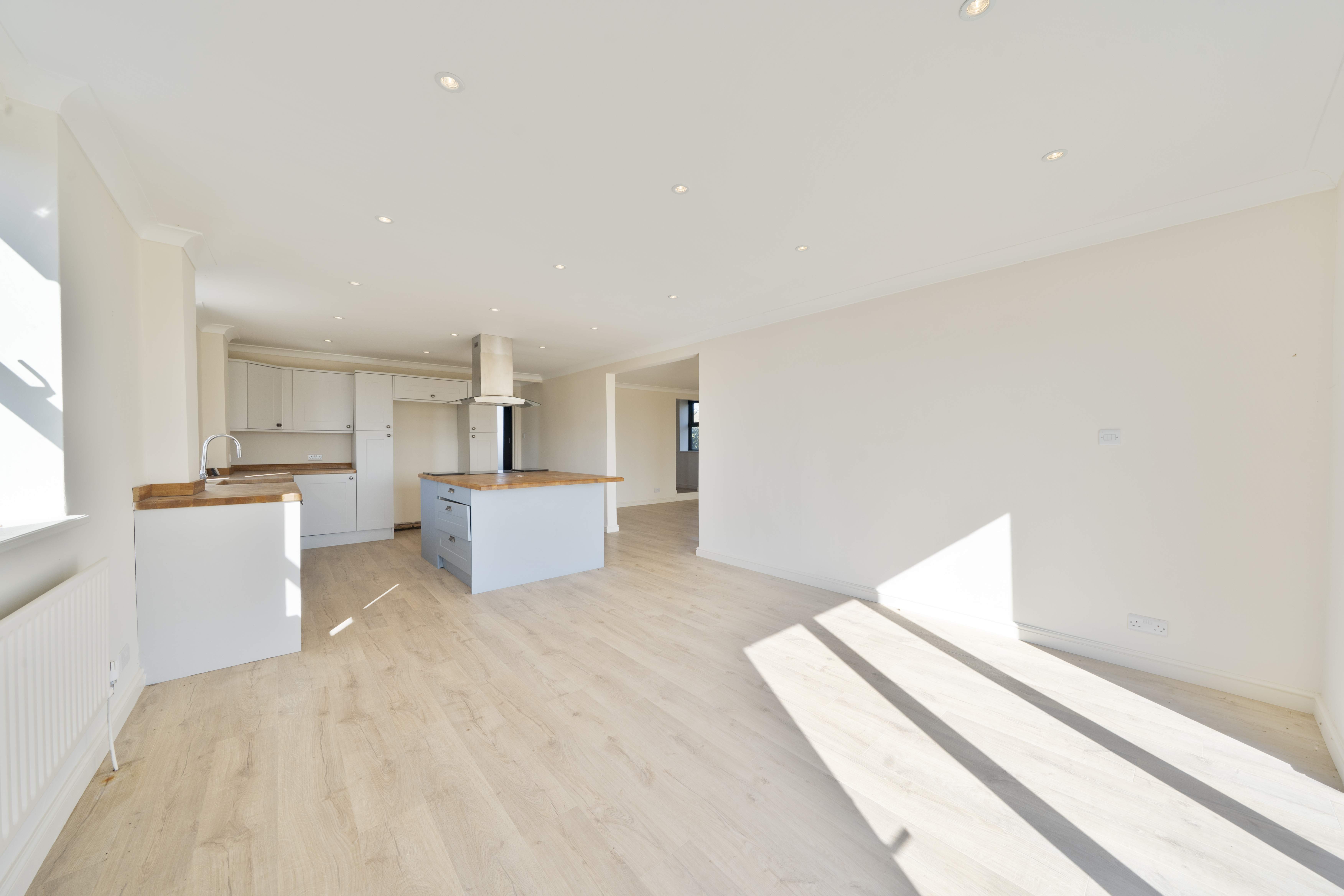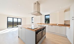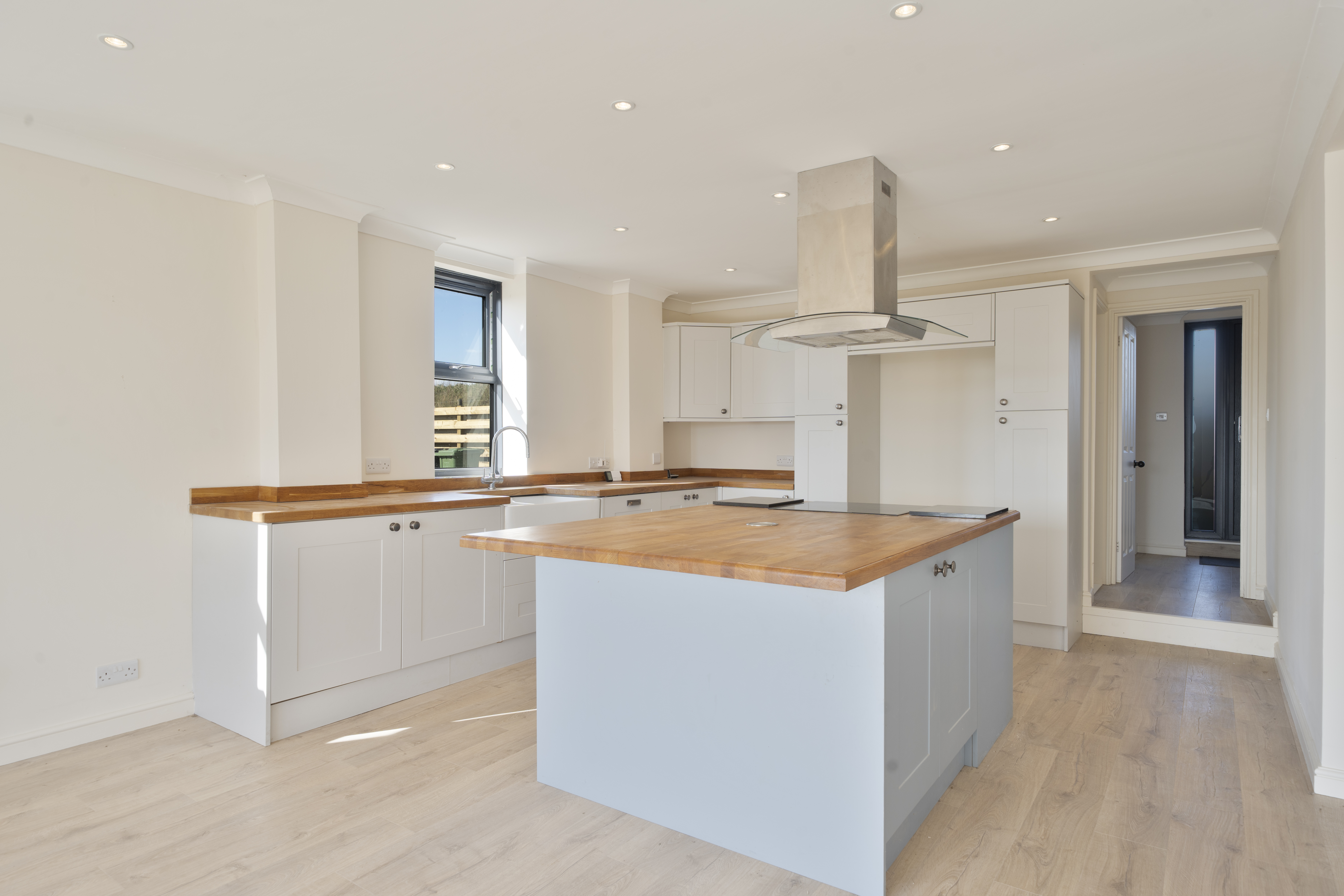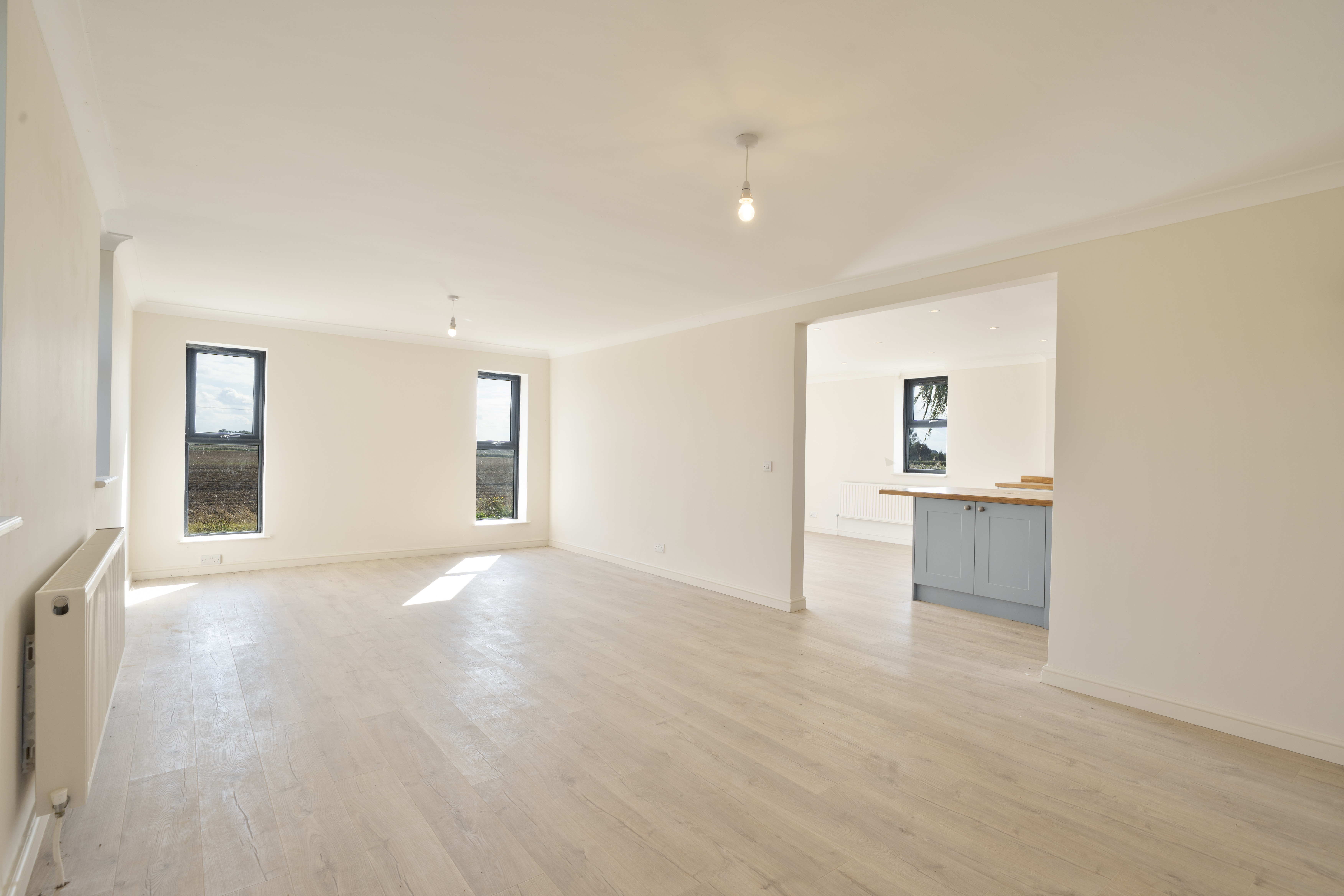 Upon entering the property, you are welcomed into a spacious entrance hall leading to a thoughtfully designed living space. The elegant sitting room is bathed in natural light, providing a bright and inviting space to relax while enjoying stunning views of the surrounding landscape. The expansive kitchen and dining area is a true highlight, featuring modern fittings and trifold doors that open onto a newly laid patio, making it perfect for alfresco dining and entertaining.