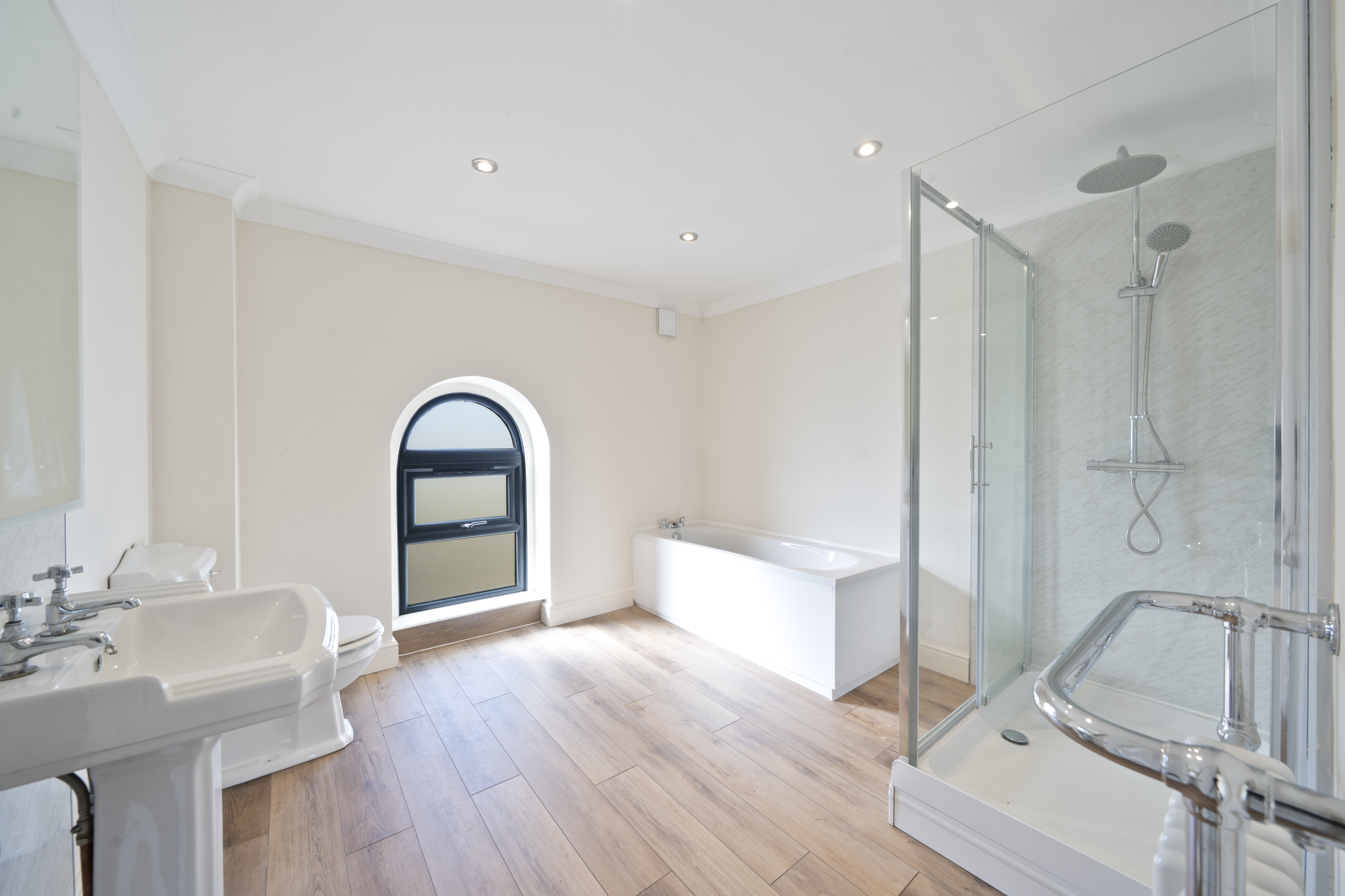 Upstairs, five well-appointed bedrooms offer flexible accommodation, ideal for family living, guest rooms, or home office space. The master bedroom boasts large windows that frame breathtaking countryside views, enhancing the sense of tranquillity. A newly refurbished bathroom features both a bath and shower, ensuring practicality and comfort.